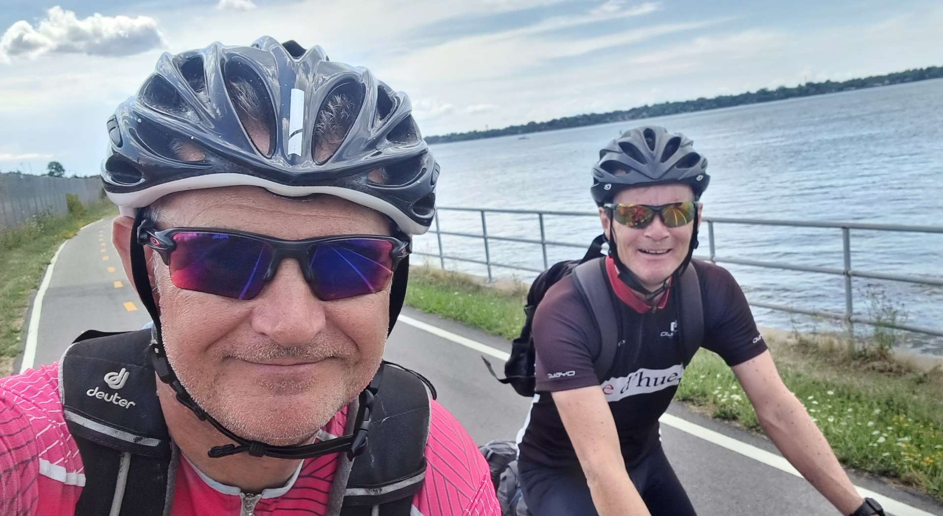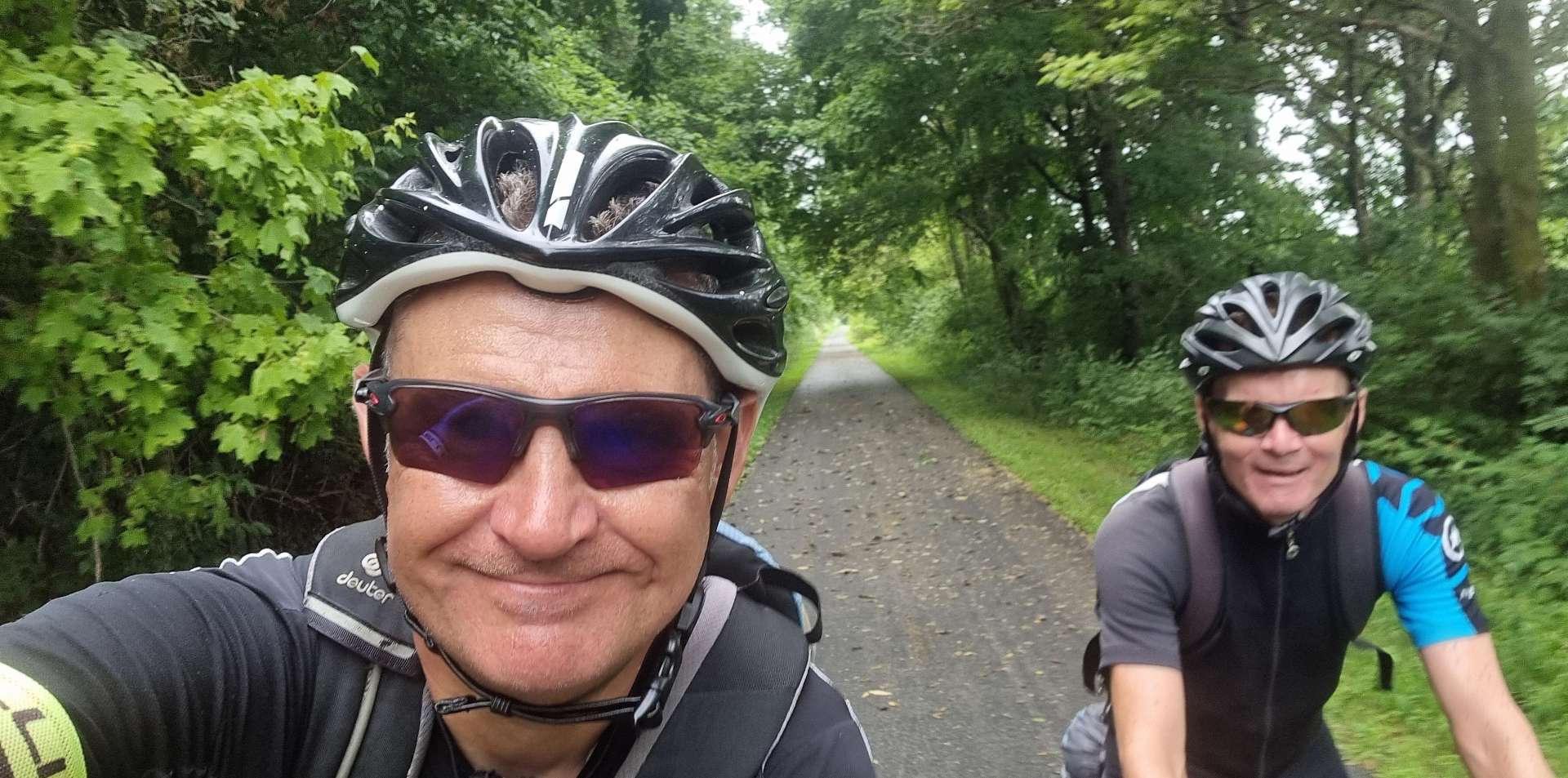 The two long, steep ramps were at the start & end of the climb. At the start, the road was being prepared for new tarmac, so we had to ride on a rough surface too. We both gave it all we had & finished together at the top in just under an hour, so I now know my climbing really has improved!