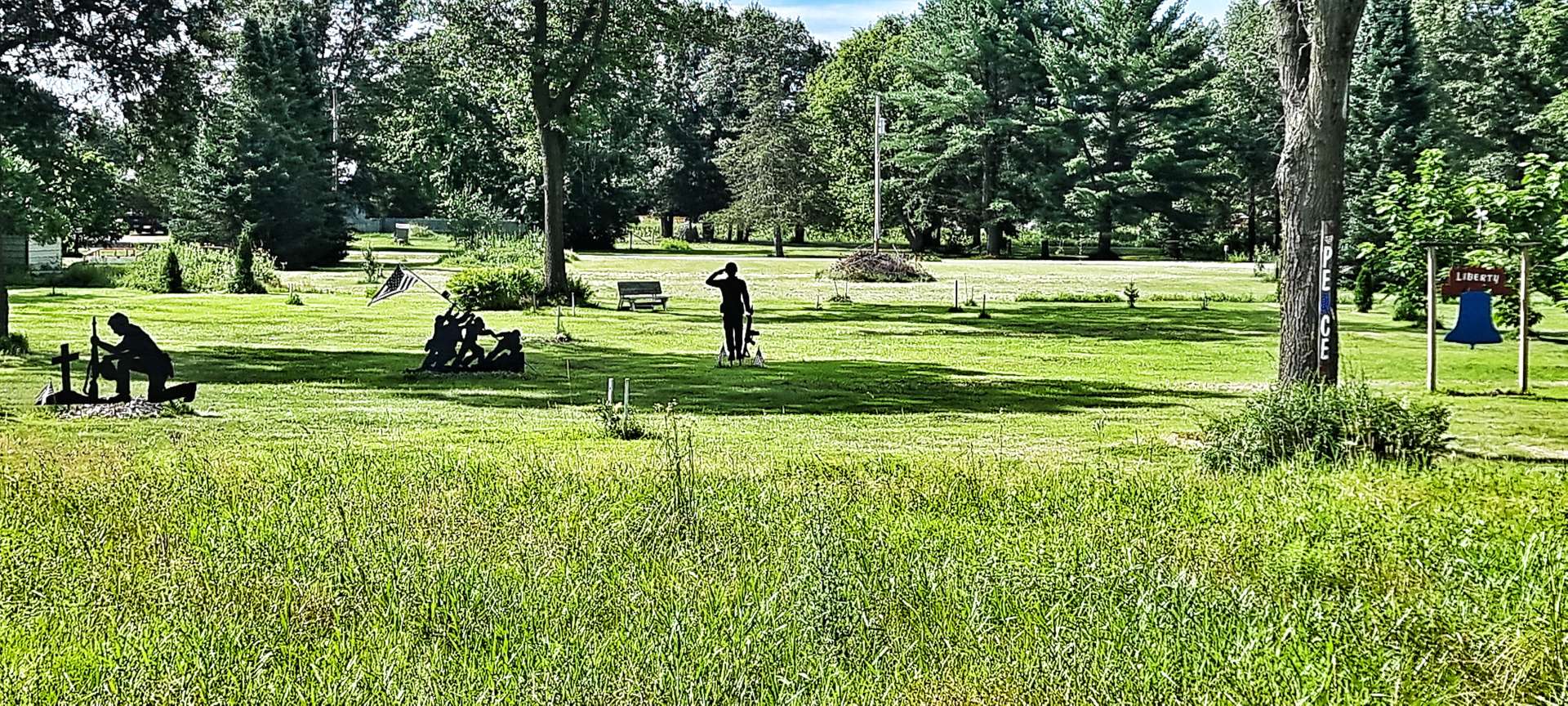 I’d mapped Tomah to Plainfield as a very flat 61 mile ride, so we had a slightly later than usual start & we were on the road for 9.45am. Highway 21 was busier than the roads we’d been riding the last few days, but still much quieter than most roads we ride in the UK. Leaving Tomah took us past a lake on our right hand side & the town’s Memorial Park soon afterwards. Almost every town has a memorial of some sort to remember those who gave their lives to protect the USA – it’s also very common to hear people thanking soldiers in uniform for their service.