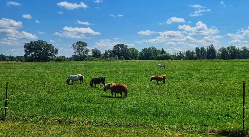 We remained on deserted roads for the remainder of today’s short stage to Fremont. Our 2nd (& final) animal surprise came when we passed a field a pygmy ponies!