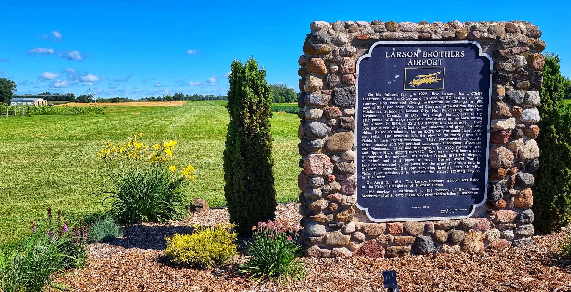 Oshlosh was off to our right & we occasionally saw some historic bombers heading to the EAA air show. It was fitting that as one plane flew overhead we passed a historical marker for Larson Brothers Airport (the grass runway & the hanger are visible in the 3rd photo), the oldest existing airport in Wisconsin.