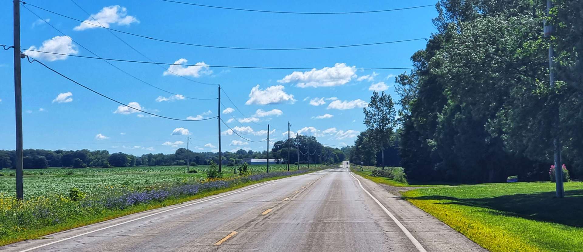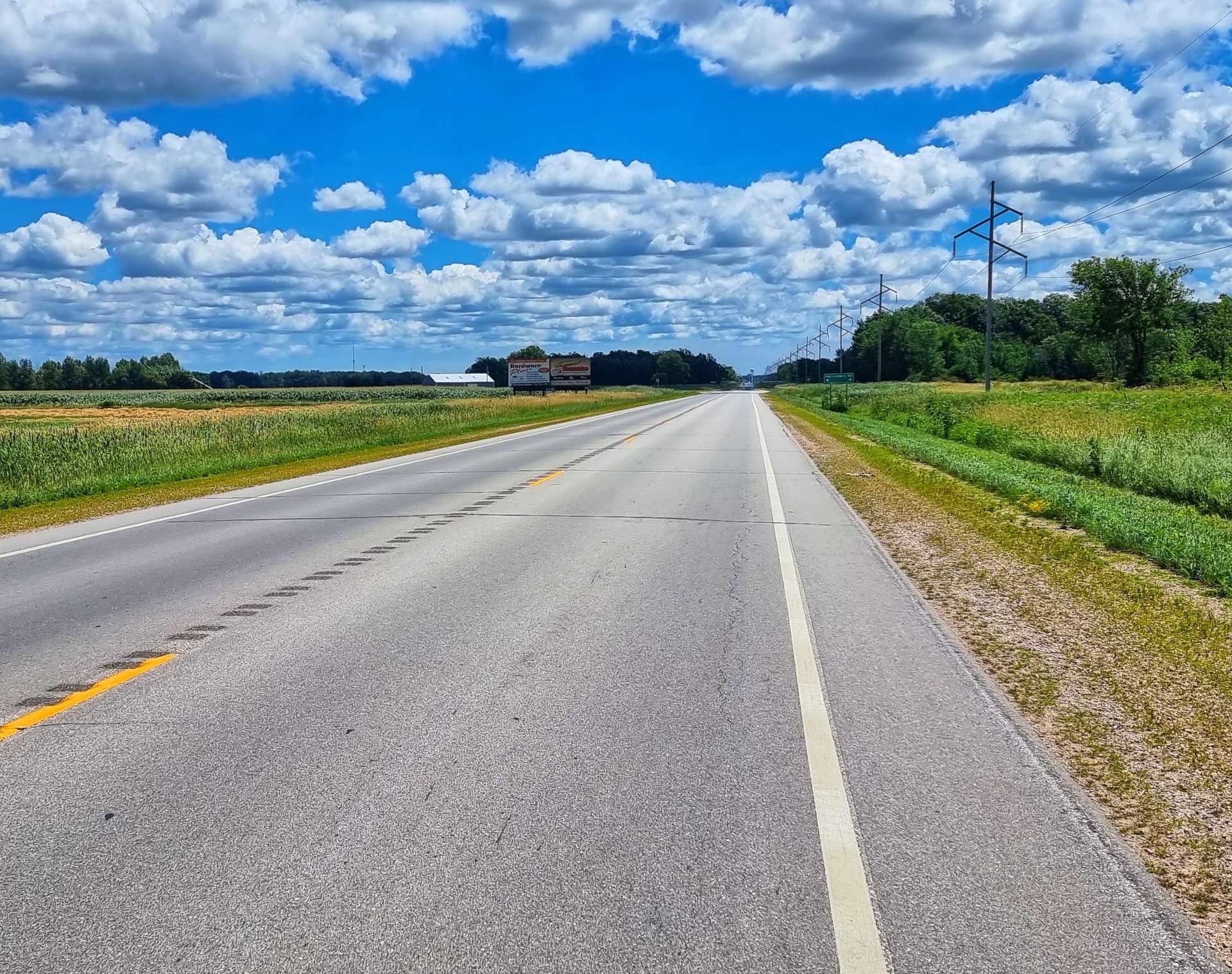 Picking up County Road II (think of a small B road if you’re from the UK), it was over 10 minutes before we saw our first vehicle. The scenery switched between fields of maize & potatoes (wheat has disappeared for now) & small Unincorporated towns.