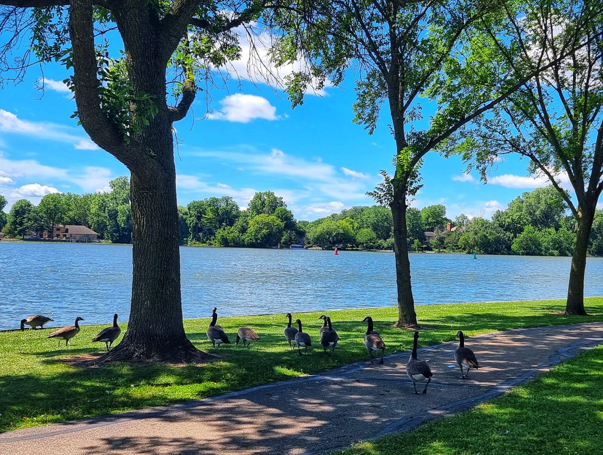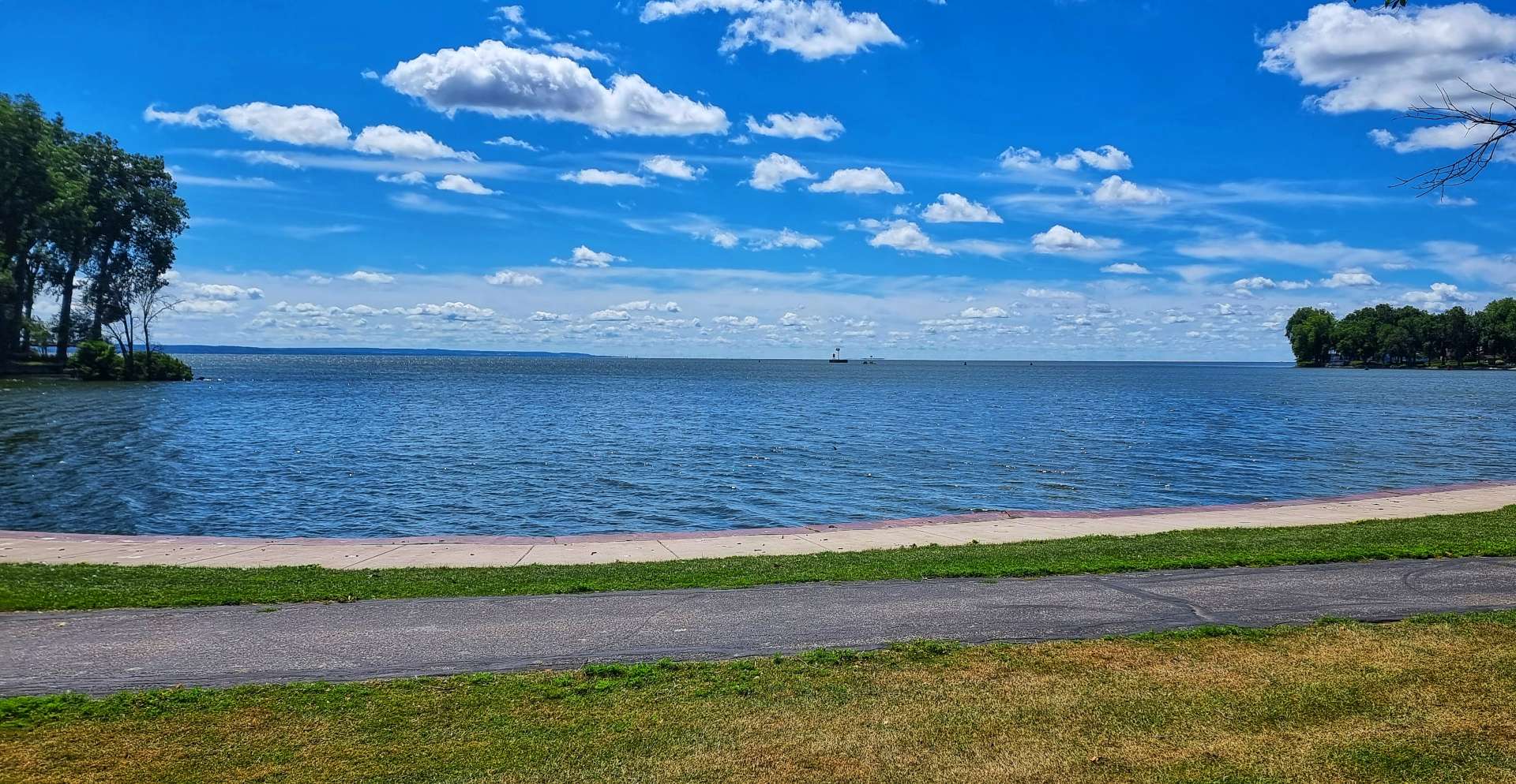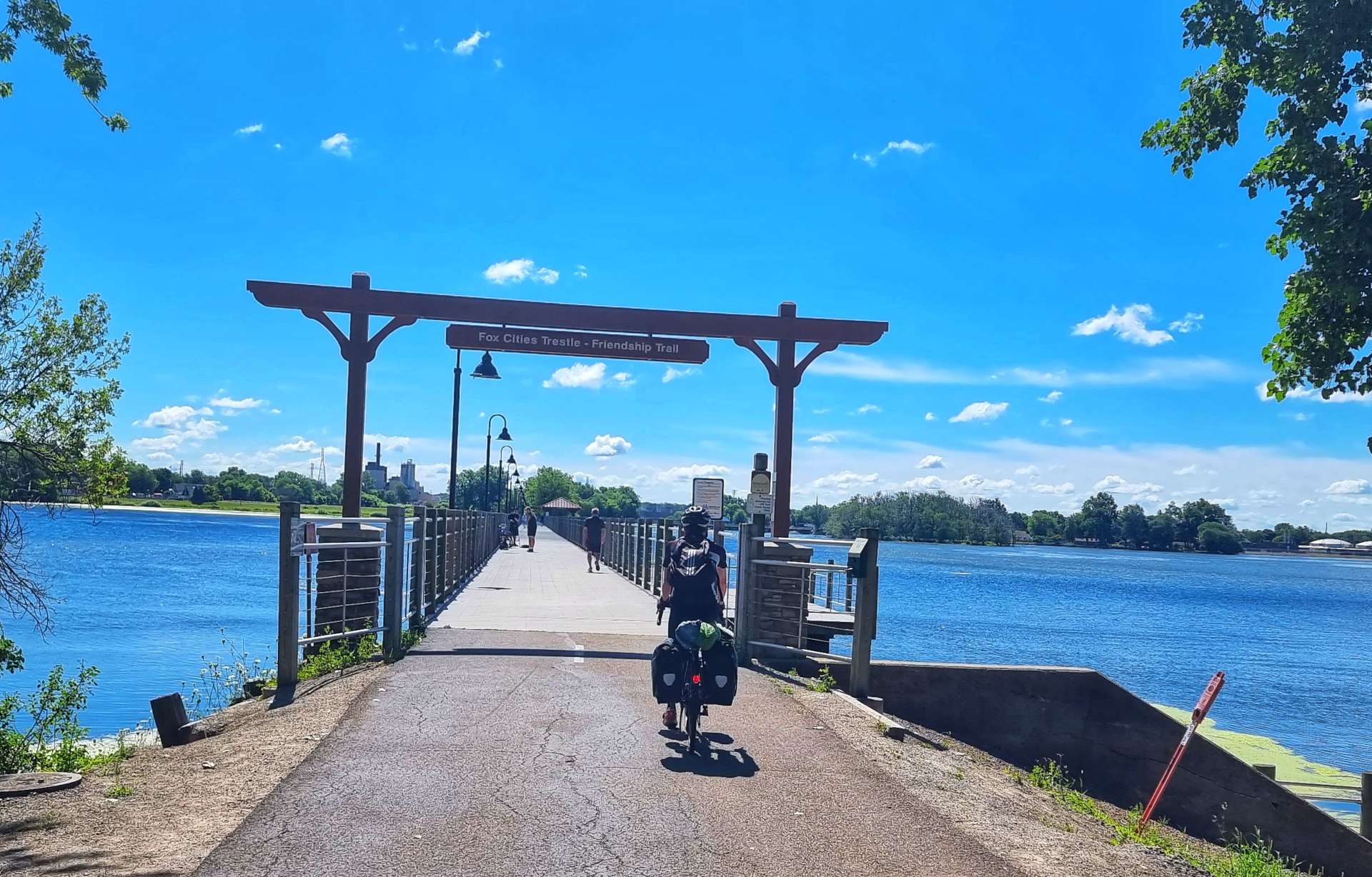 Leaving town, our route took us around a small part of Lake Winnebago on a bike trail. Along the way we saw the local duck population out for its lunchtime stroll, as well as stunning views across the bay to the lake itself.