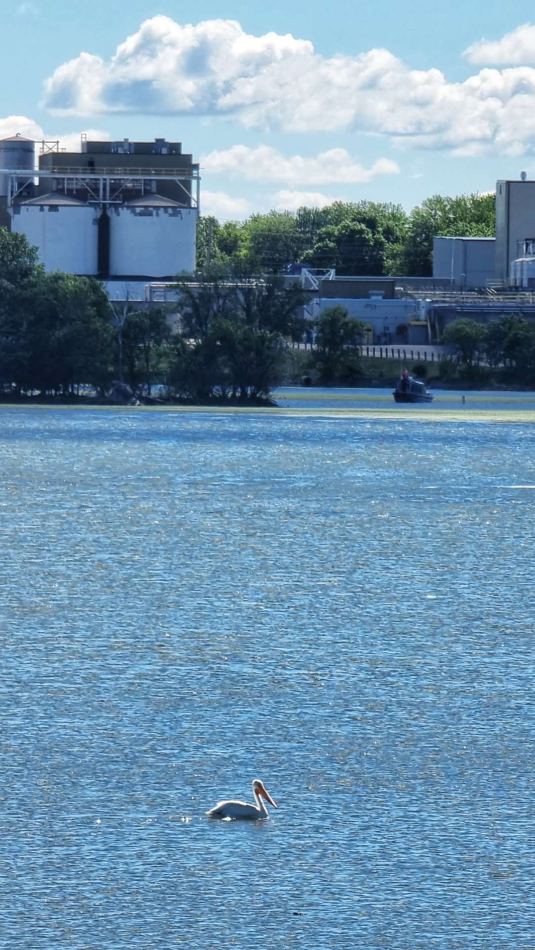 County Road II stretched out ahead of us, as we headed towards Menasha, where we briefly picked up the Friendship Trail that took us over a couple of lakes with pelicans on the lookout for a snack. We were on the lookout for a coffee & cake stop ourselves!