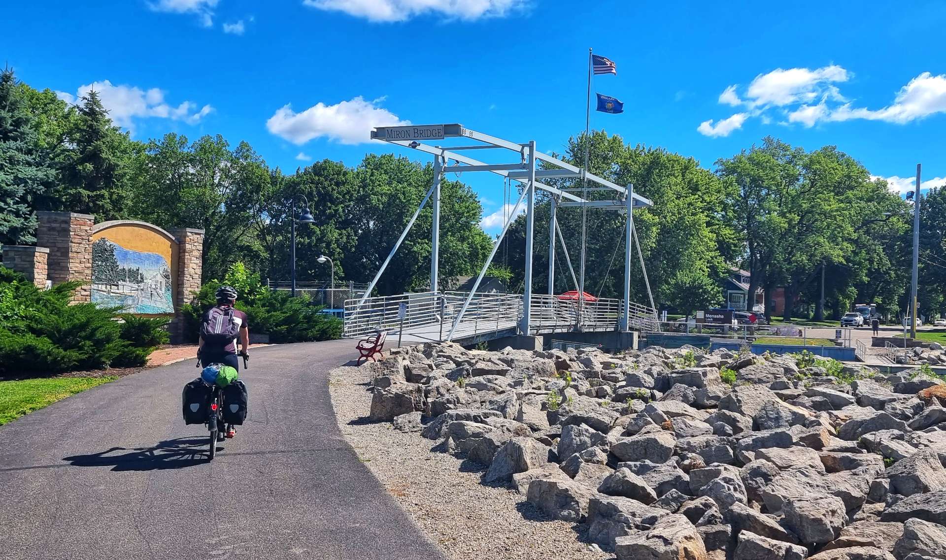 Approaching Brillion we found a couple of small cycle trails to take us off the roads into town. We also found a gas station where we could have a sugar hit of coke & top off our bottles with iced water from the soda machine. We still had another 20 miles to go & were aware that last night’s hydration training at the bar may, in fact, have dehydrated us!!!