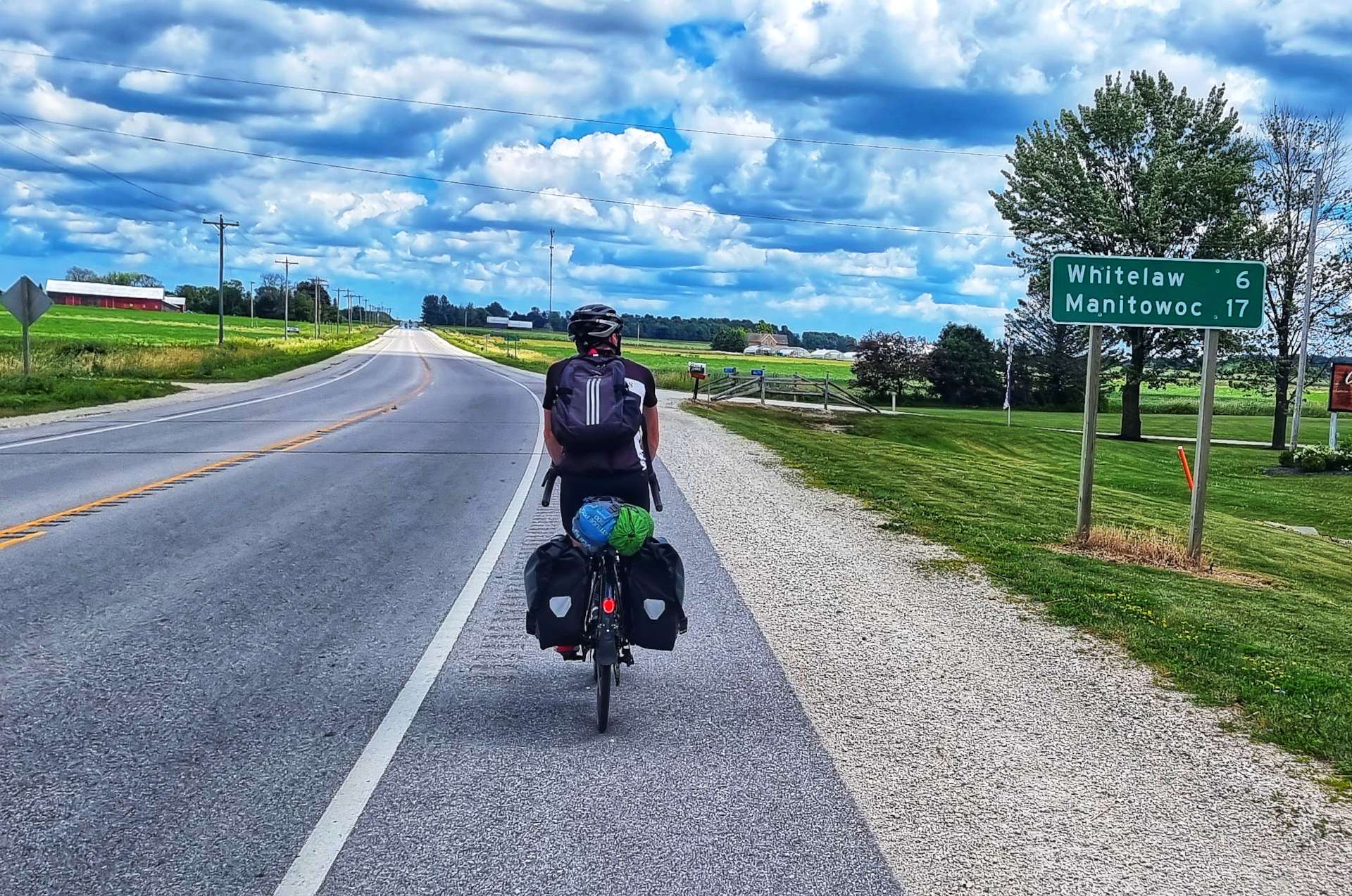 After Brillion, we were back in farmland & our friends the pepper pots returned for one last time in Wisconsin. With just over 17 miles to go to Manitiwoc, I jumped on the front & less than an hour later we’d passed the city limits & water tower on quiet roads. Our trek across Wisconsin was almost over.