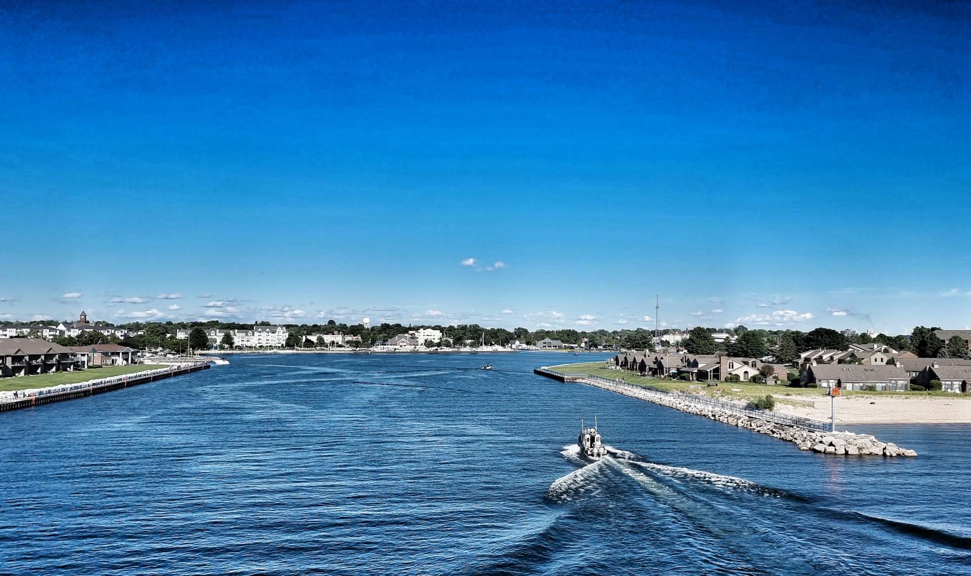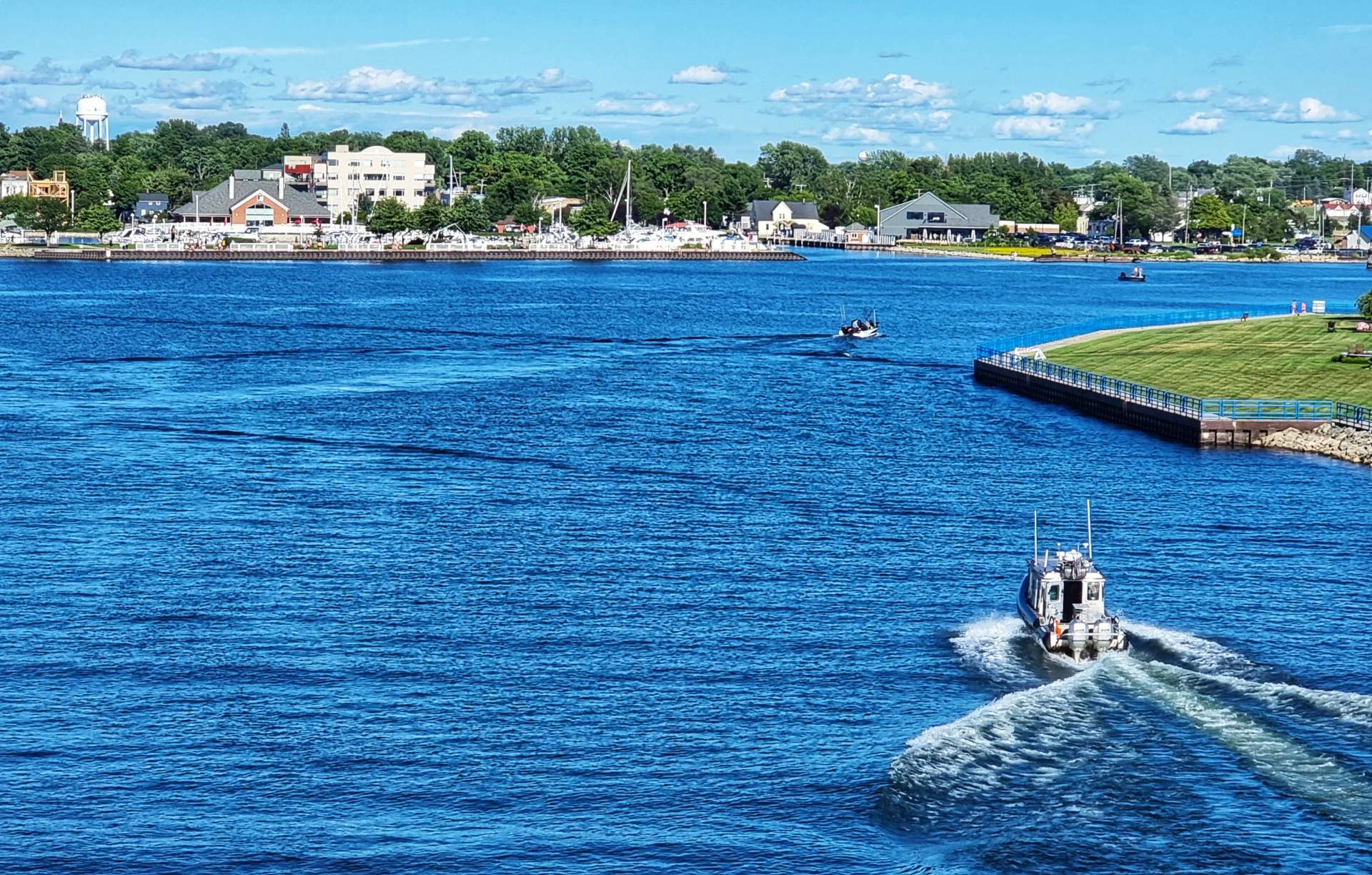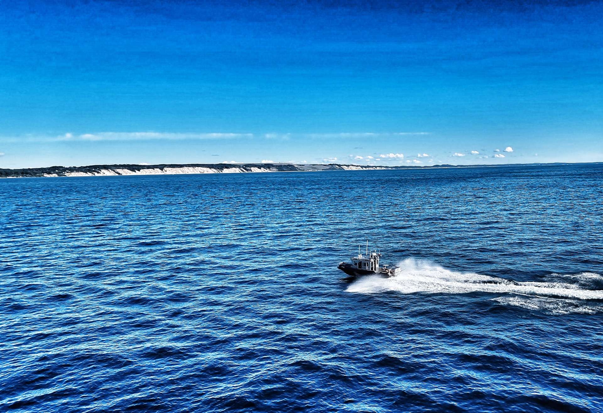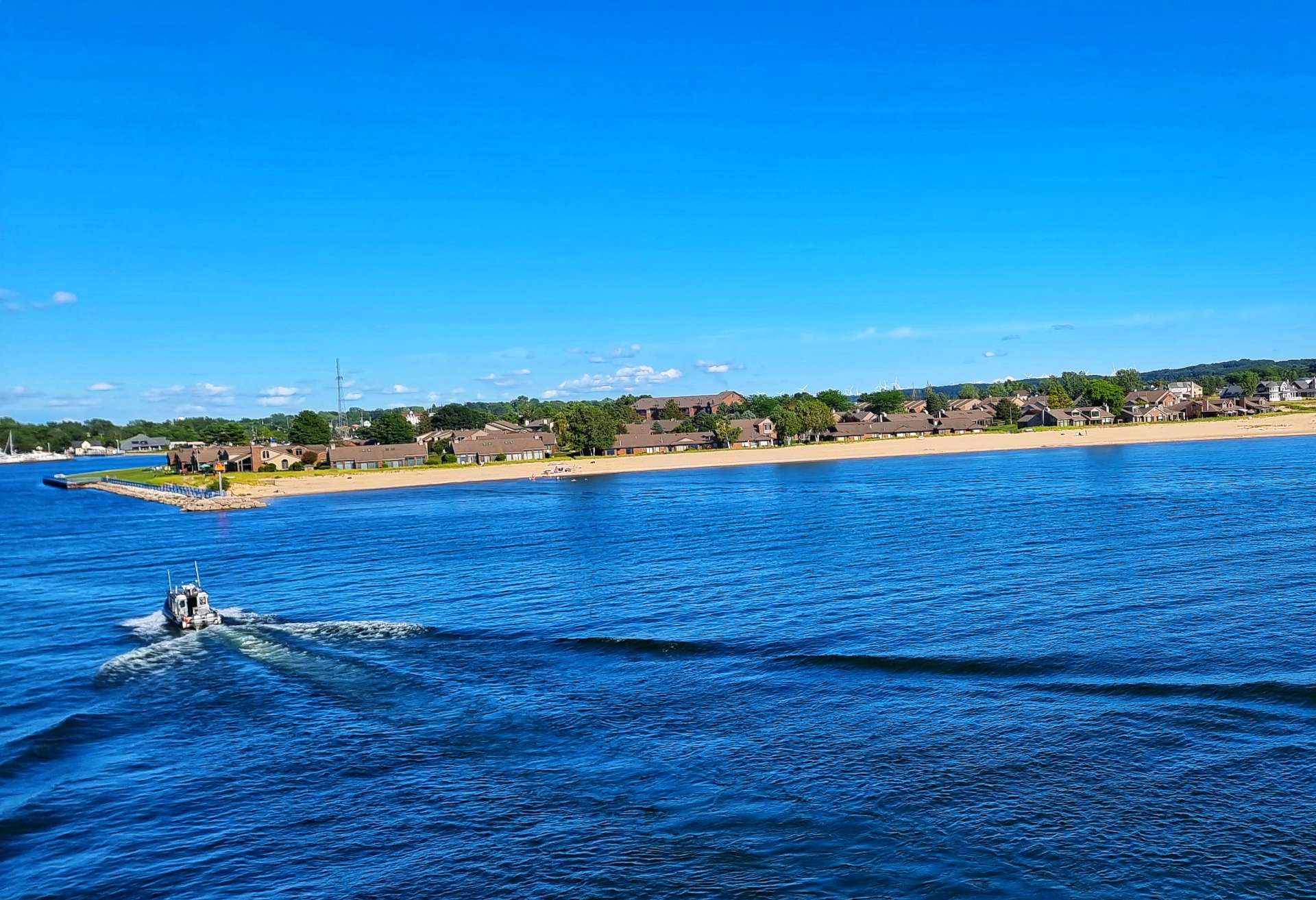 Sean & myself were both expecting the crossing to drag when we first boarded, yet before we knew it we could see the sandy shores of Michigan in the distance & not long after that a Coastguard Cutter was escorting us towards Ludington Harbour.