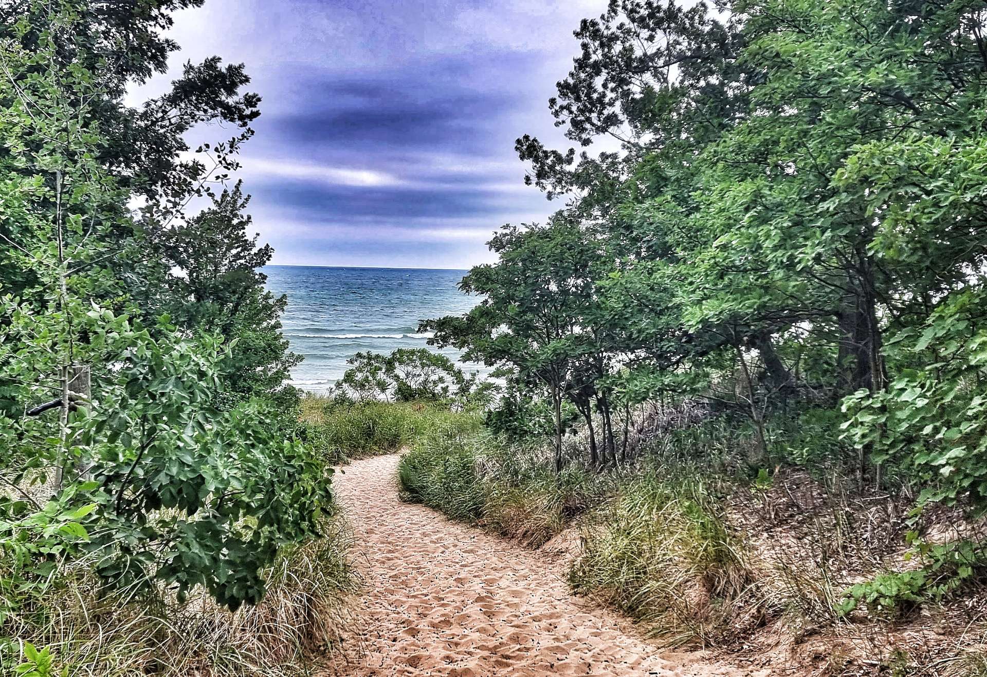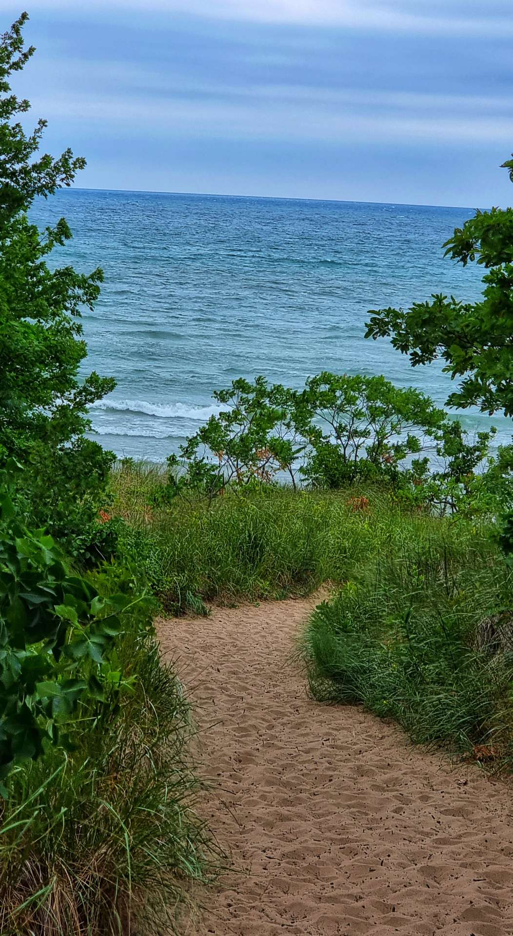 As you can see from the photos it was an overcast day, but that just meant that when we saw Lake Michigan for the first time today the green-blue water stood our even more than the last couple of days. I had a 2 minute walk from the deserted road to get to this beach, while Sean waited patiently for me to do my thing with my camera.