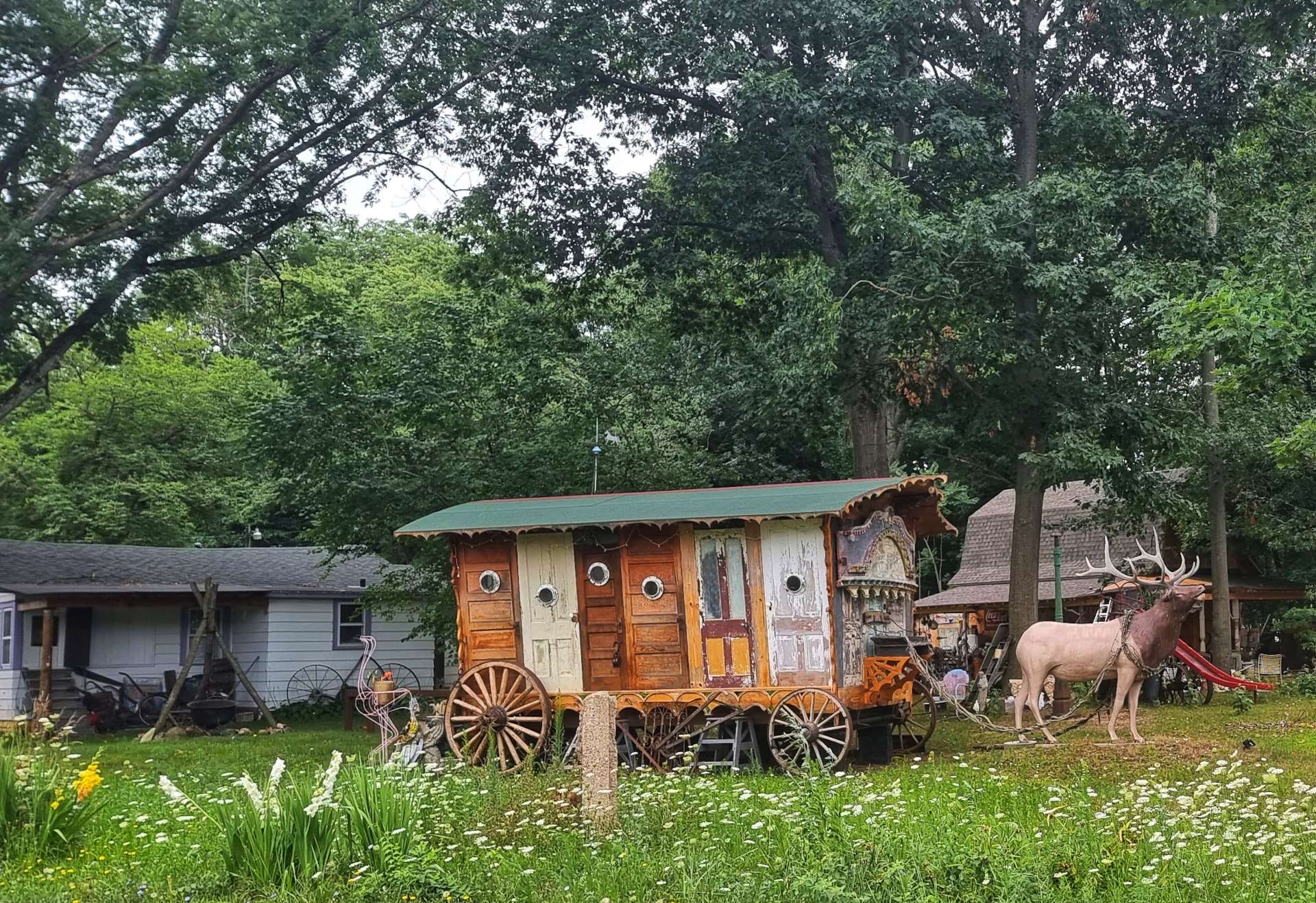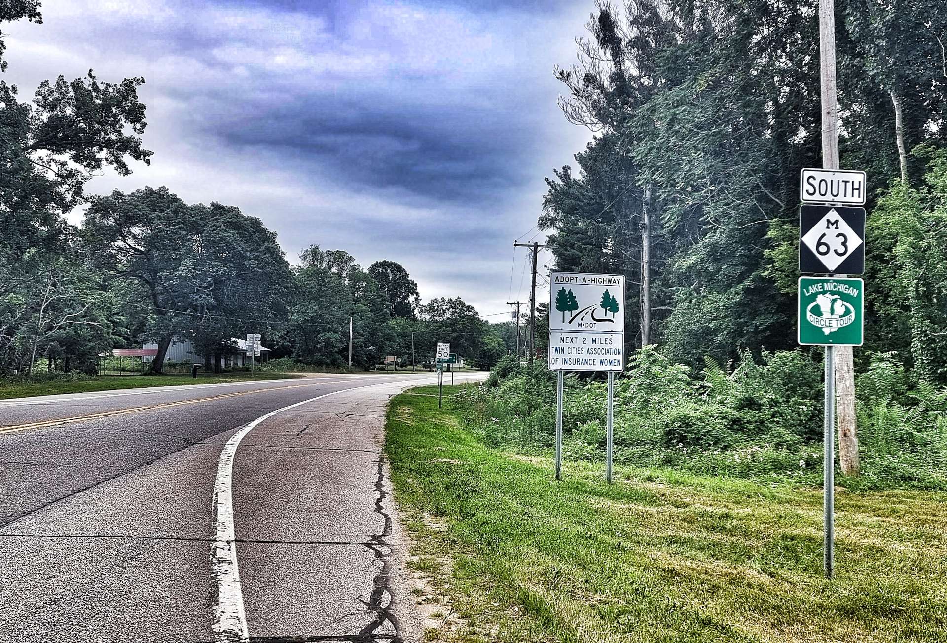 The Blue Star Highway (Highway M63) is part of the Lake Michigan Circle Tour – a route that takes in the complete coastline of the lake, as well as the designated Highway 10 crossing of Lake Michigan by the SS Badger. We hardly saw any traffic in the first 25 miles of our ride today, so had plenty of time to look out for unusual follies in gardens.