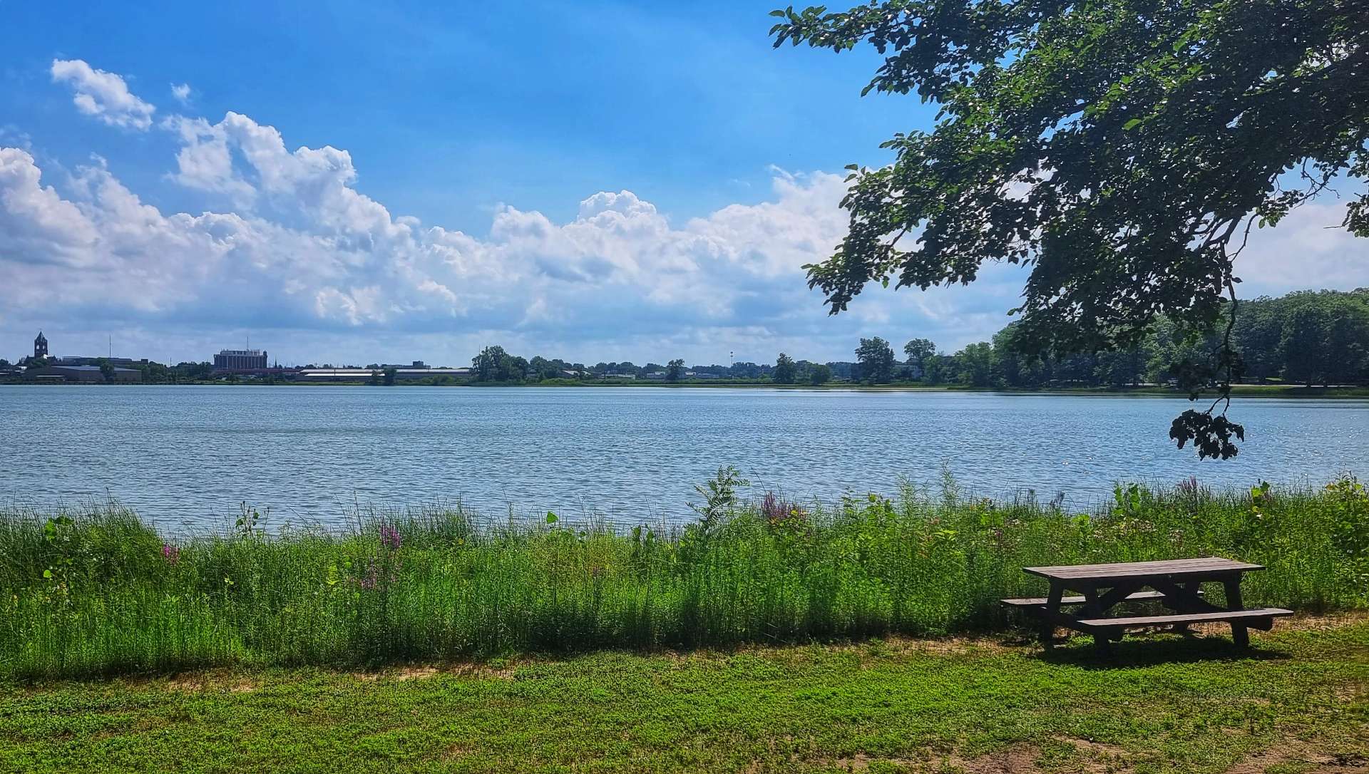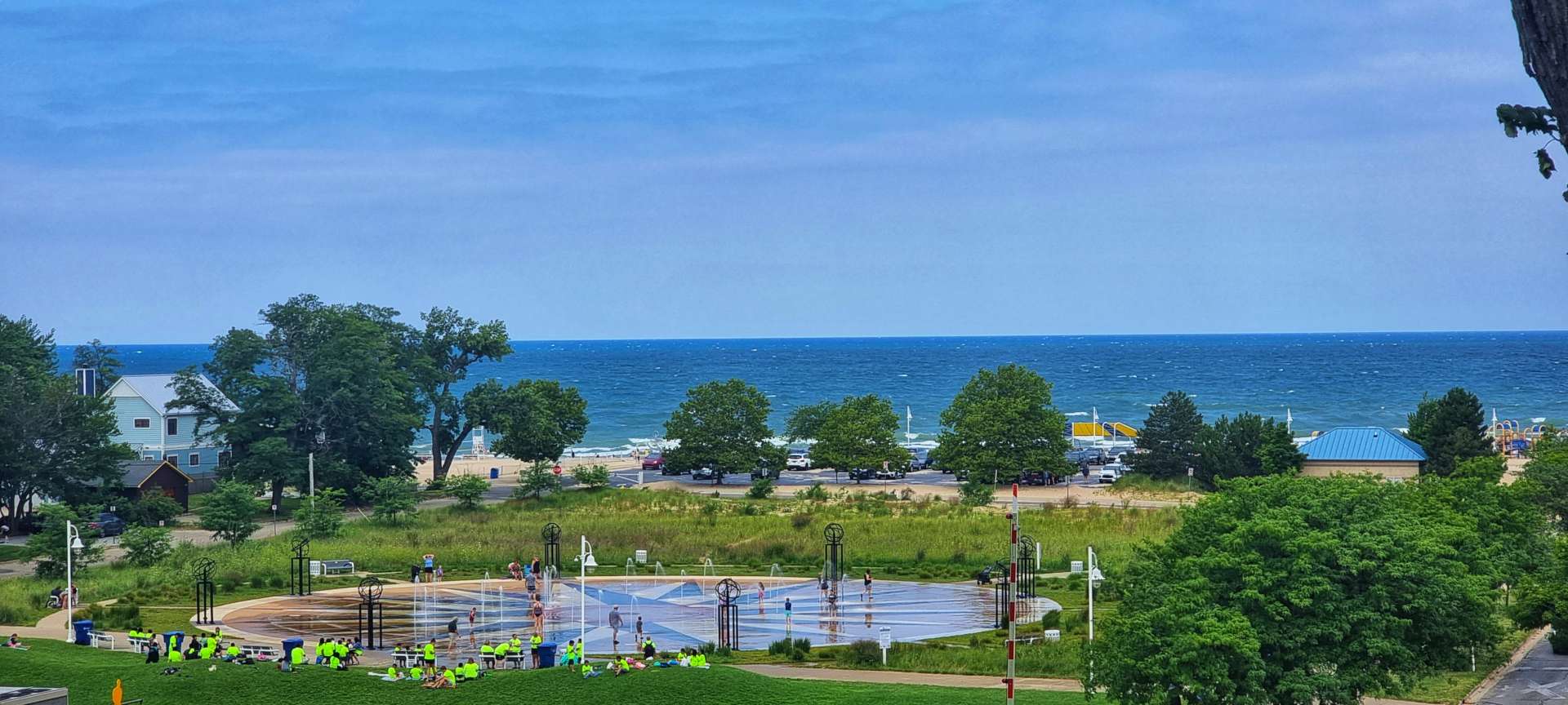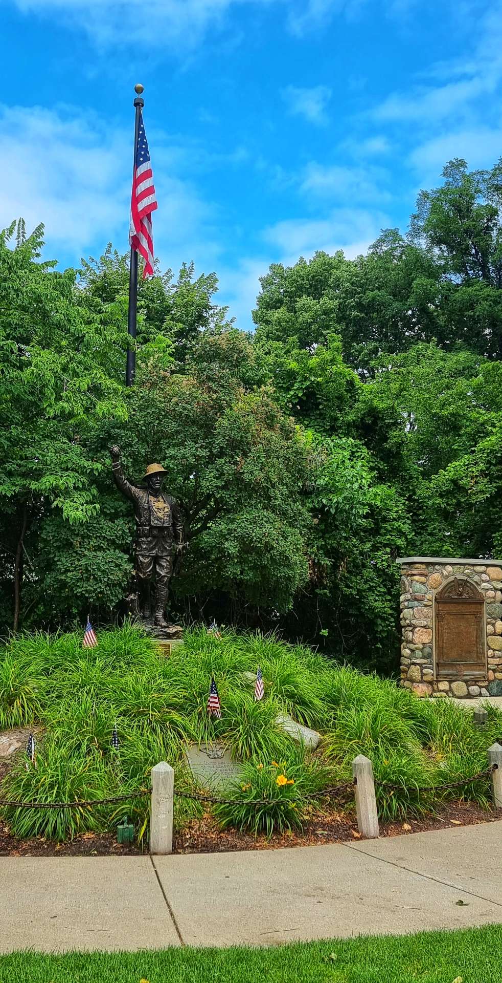 As we left town via Lakeshore Drive, we saw a huge fountain down by the lake with loads of children playing under what was now a blue sky. We also passed a poignant monument remembering all the people of St Joseph who served in the armed forces & never returned from active duty.