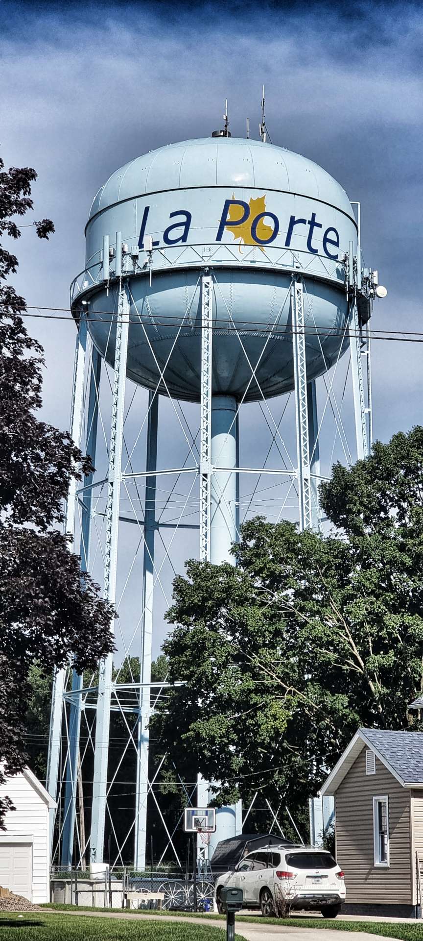 A recurring theme as we’ve headed East is the ubiquitous presence of water towers that indicate the name of each town before you reach it. The La Porte example here is one of the better ones that we’ve seen. We made our way across town & within 10 minutes we had found the first of the day’s long, straight, farm roads – we would be on this one for about 11 miles without ever deviating off due South!