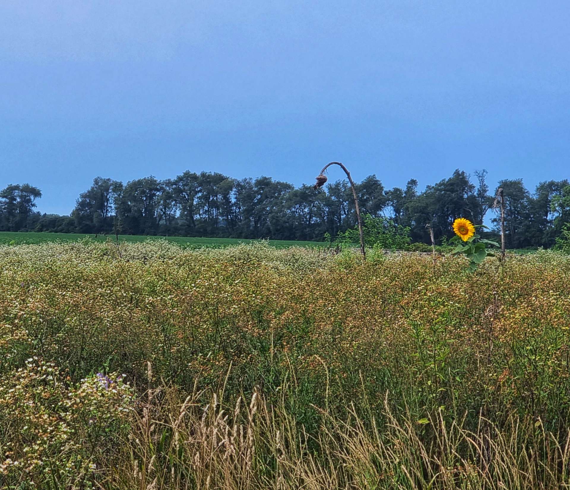 For most of the first couple of hours we were between fields of corn & soya beans, so when I saw a single, lonely sunflower I had to stop & capture the moment.