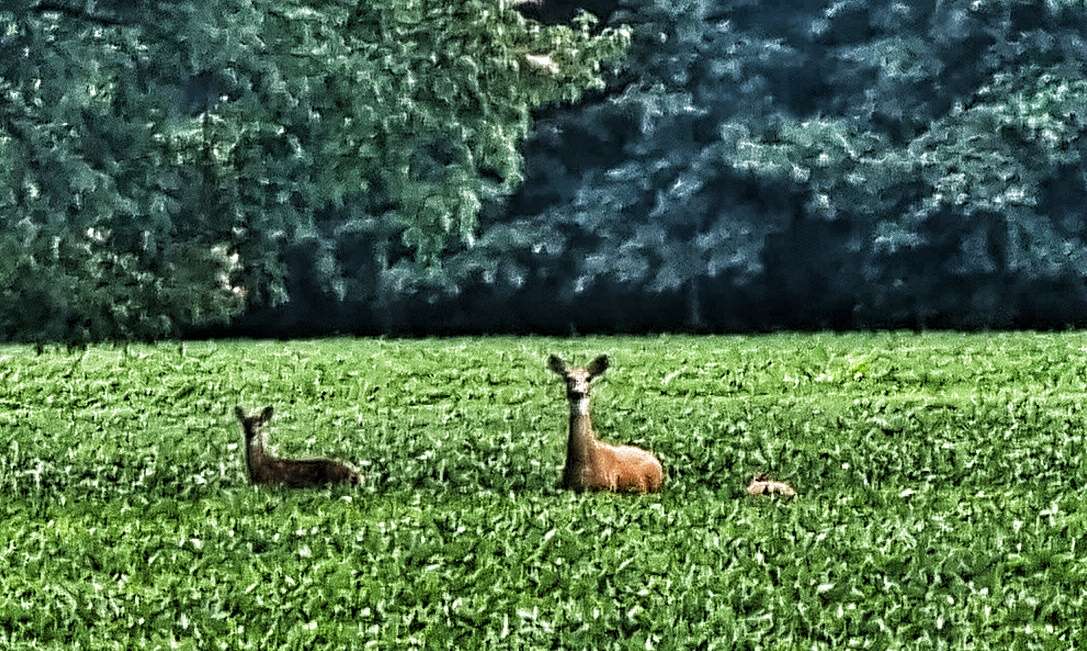 We struck a rich vein of wildlife as no sooner had we left the trail than we spotted 3 deer, as they spotted us. They kindly stayed in place long enough for me to get a photo, then they turned around & pranced off into the distance. This is a sight I’m going to miss as we continue east.
