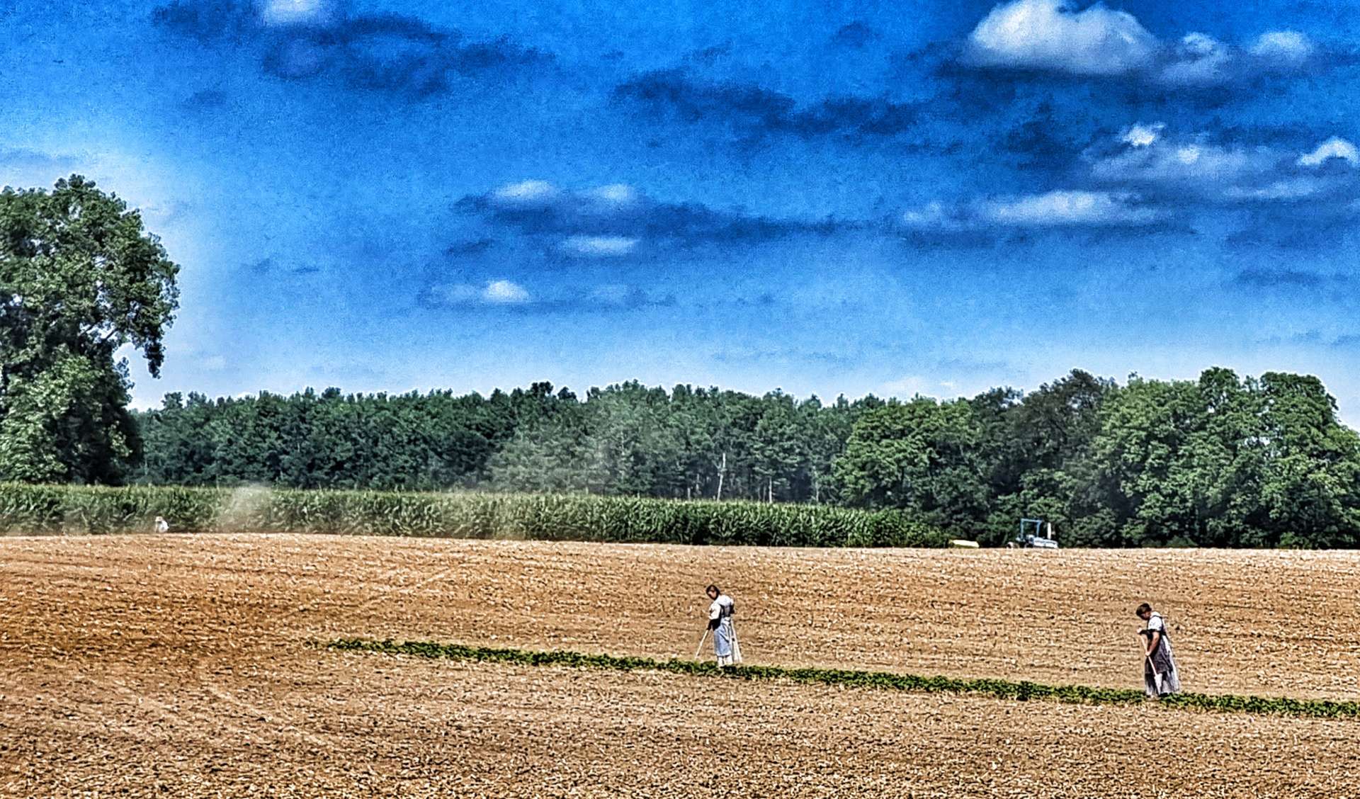 We stopped in Monterey to top up our water bottles & enjoy a cooling coke in the air conditioned bar. As we returned to farmland we gave way to an Amish horse-drawn carriage. We were hot on our bikes, but that was nothing compared to how hot it must have been for the people we saw working the fields dressed in traditional clothing.