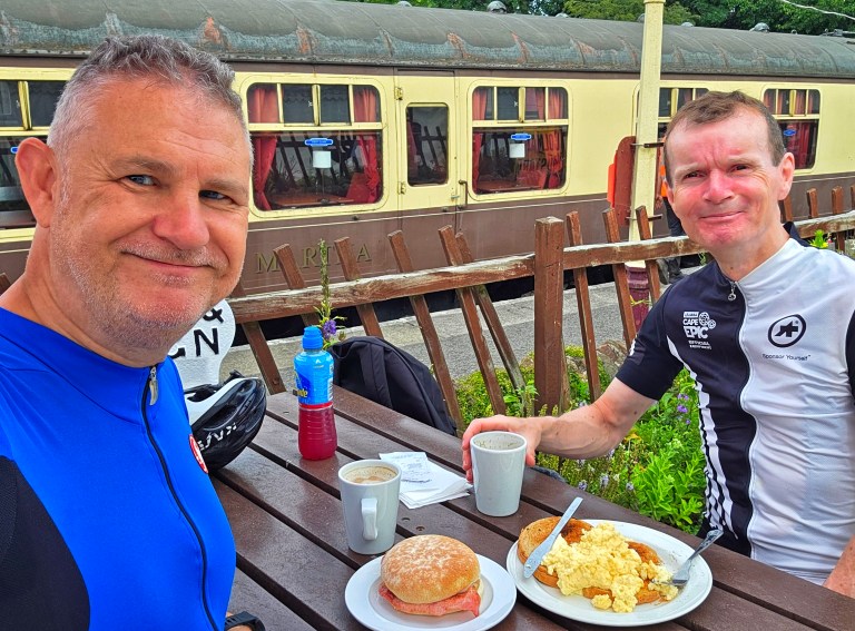 I met my cycling buddy Sean at Bitton Railway station, where we had bacon baps & coffee before setting off towards Bath on the cycling path. The sun had its hat on, so we were in for a hot & humid day in the saddle.