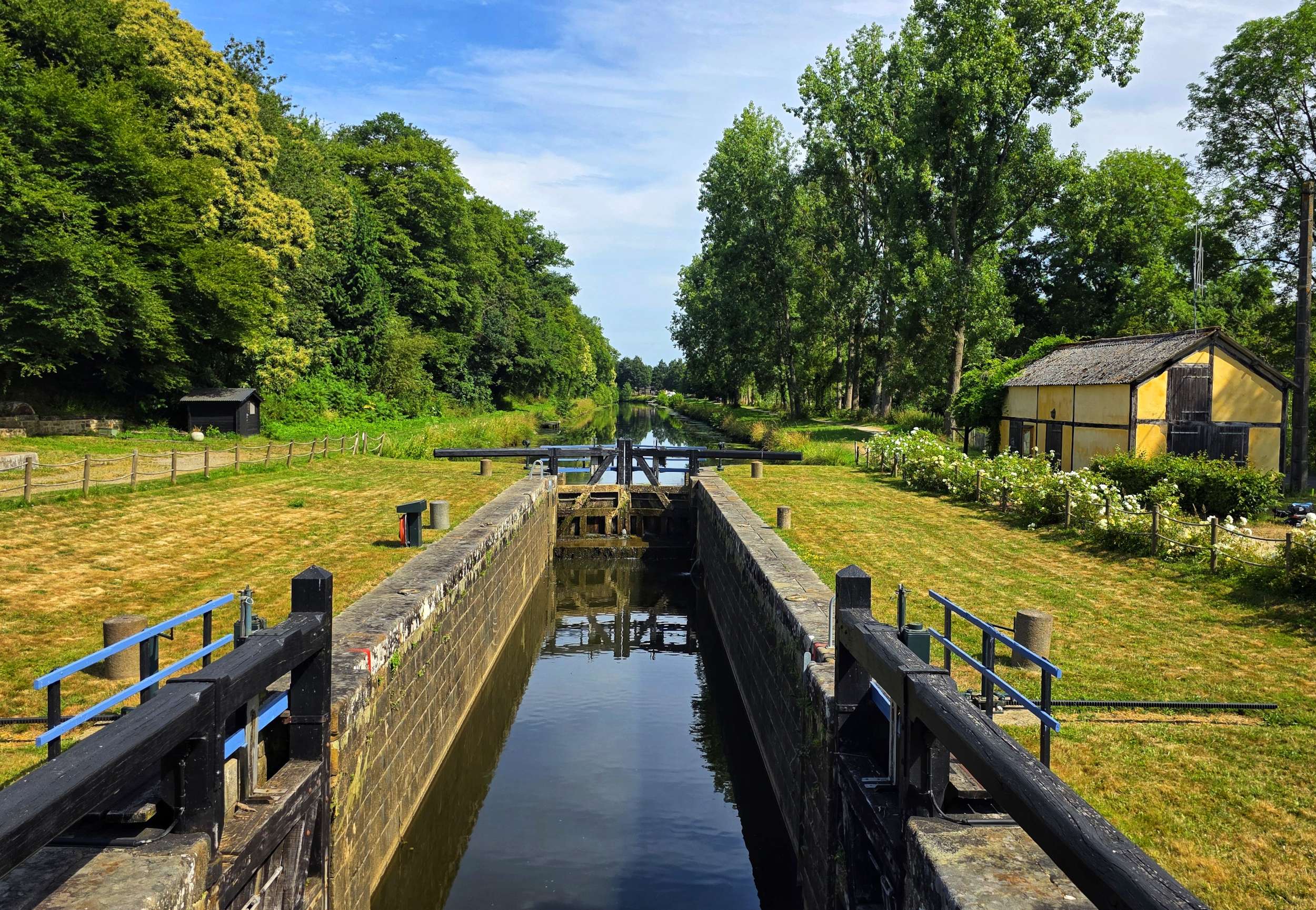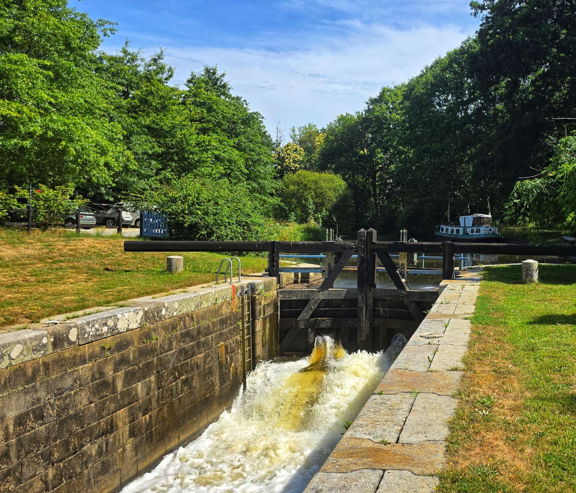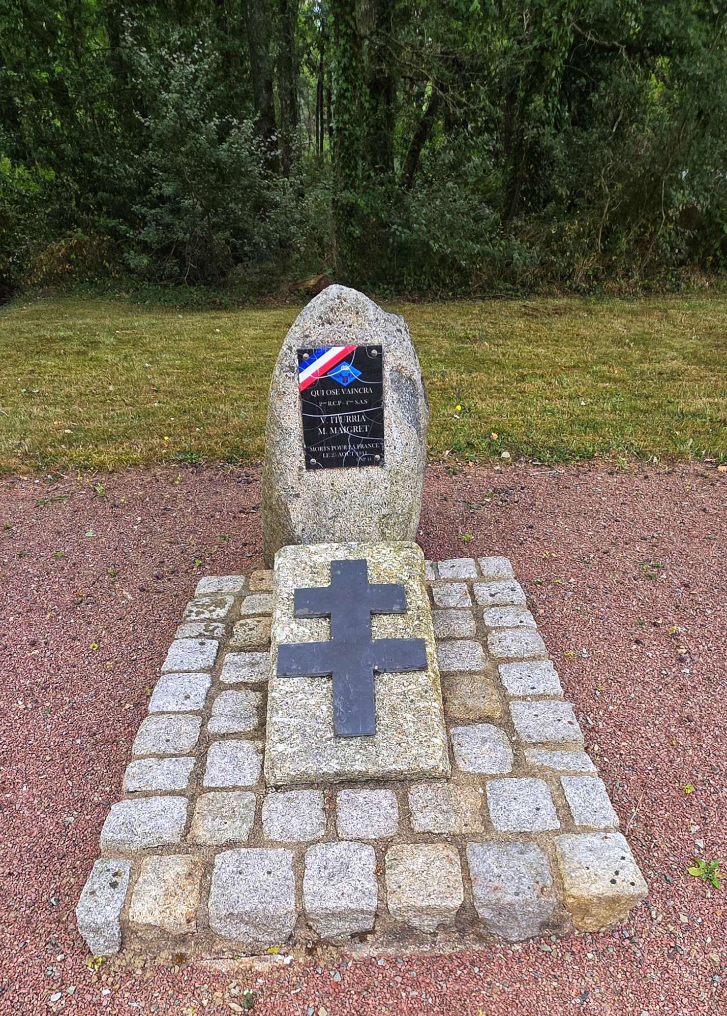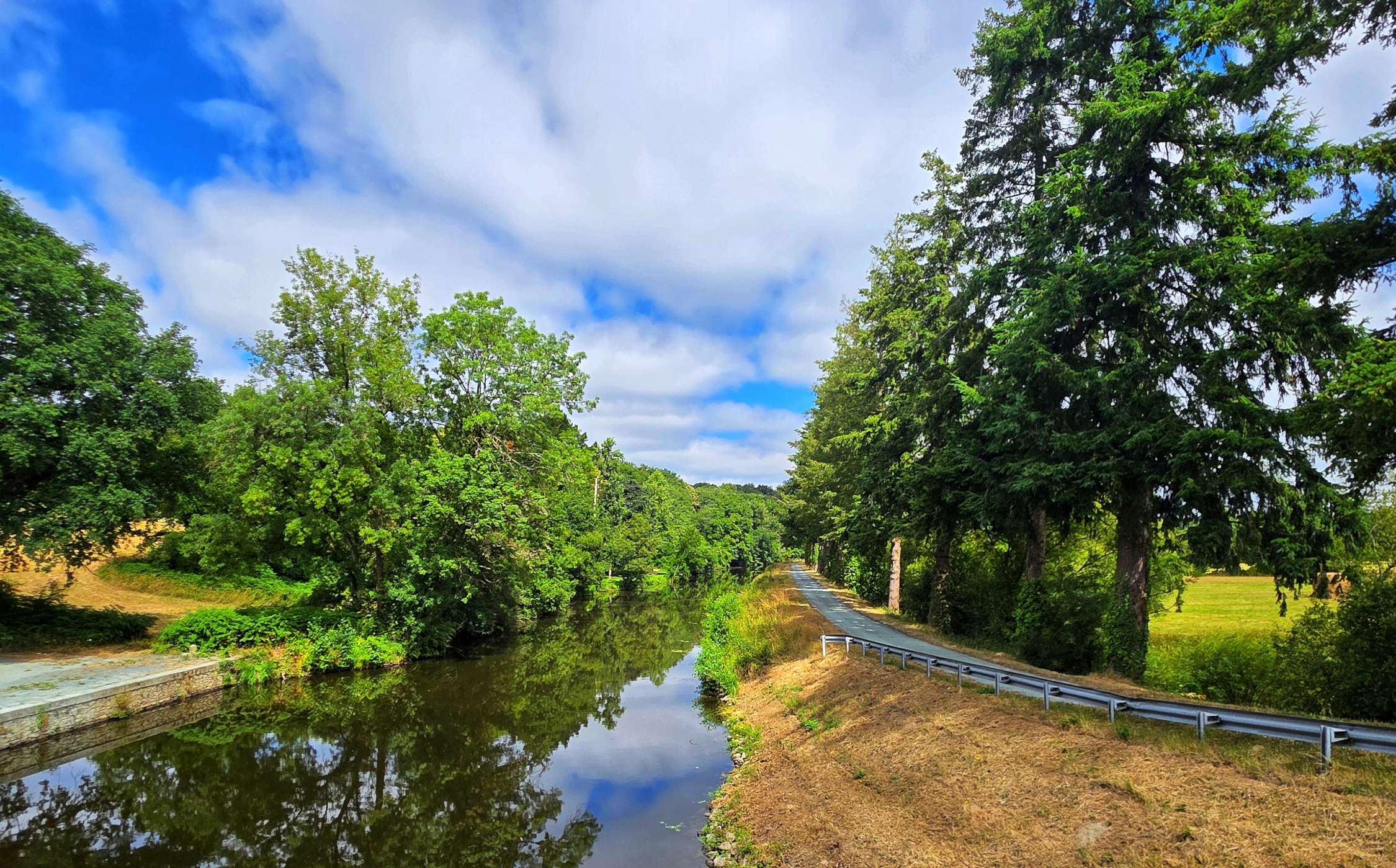 We remained on tarmac until we passed through Quilly, where we picked up some more hard-packed gravel for a couple of miles. When we re-joined tarmac, we crossed the Canal de Nantes a Brest, before finding the start of the Route Forestiere de Carheil, which was marked by a Memorial to 2 soldiers who were killed in action on 21st August 1941.