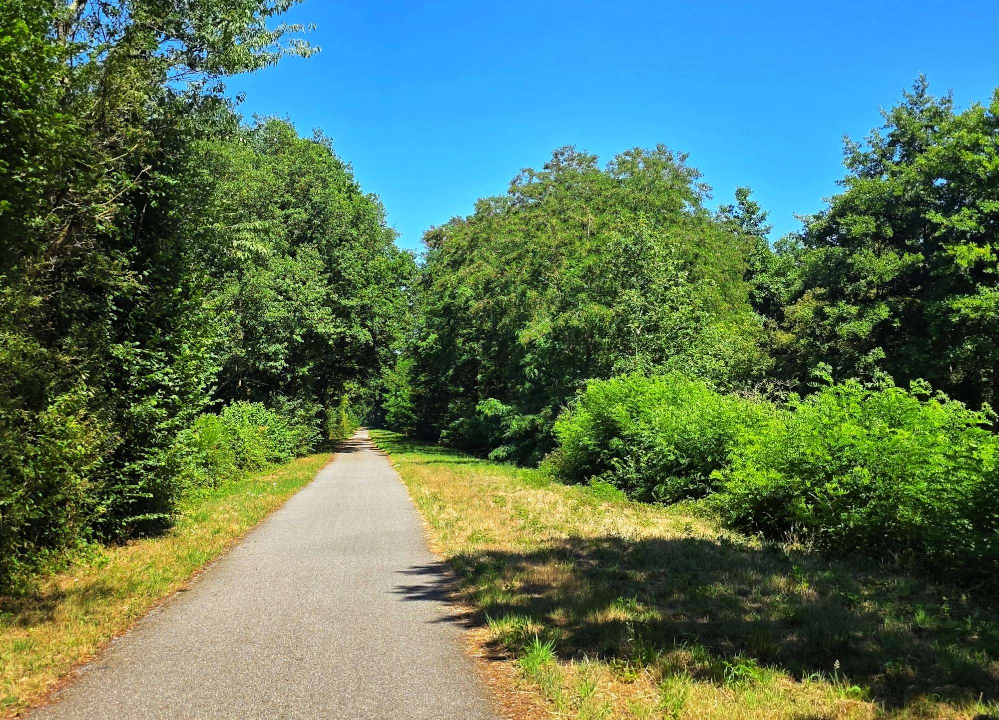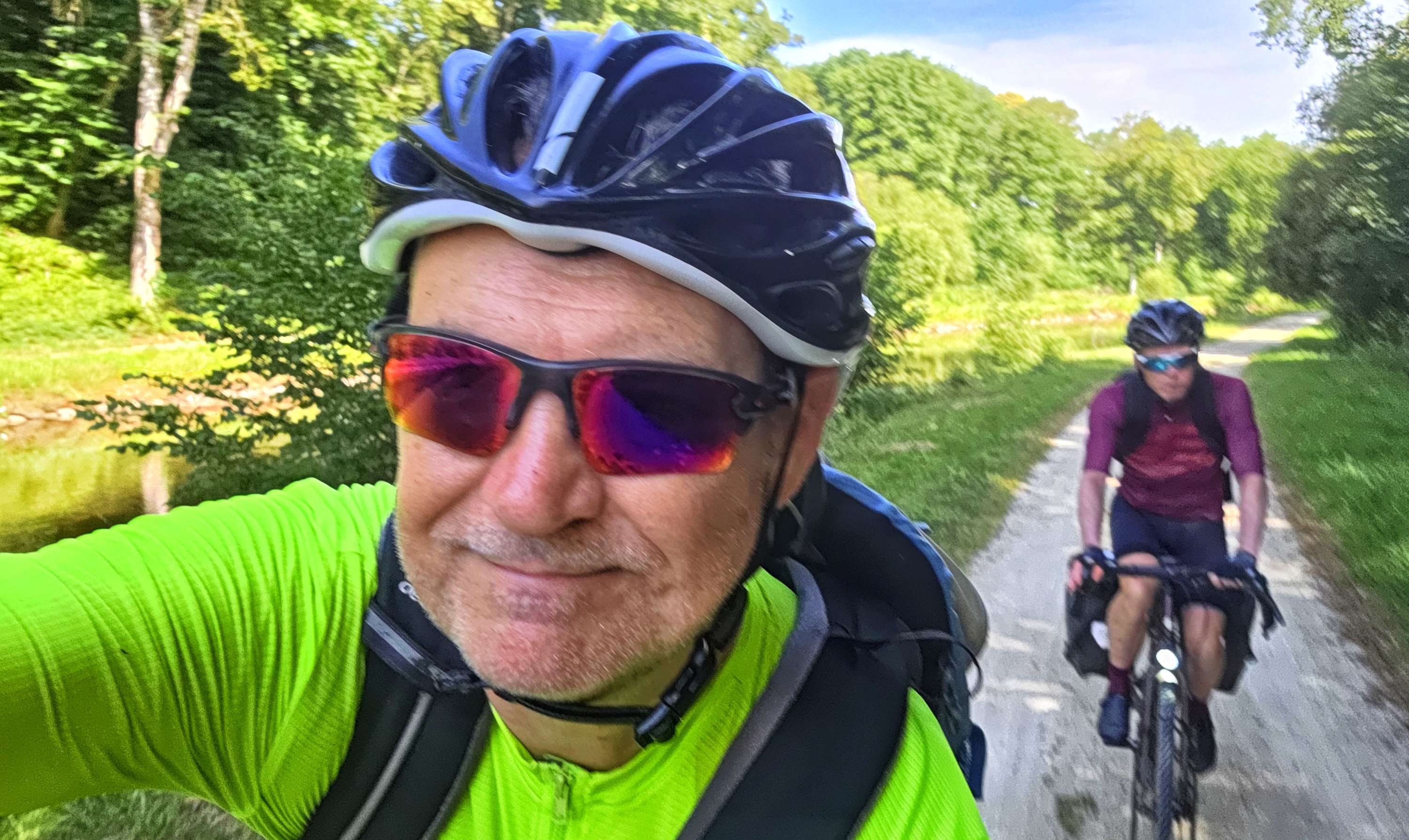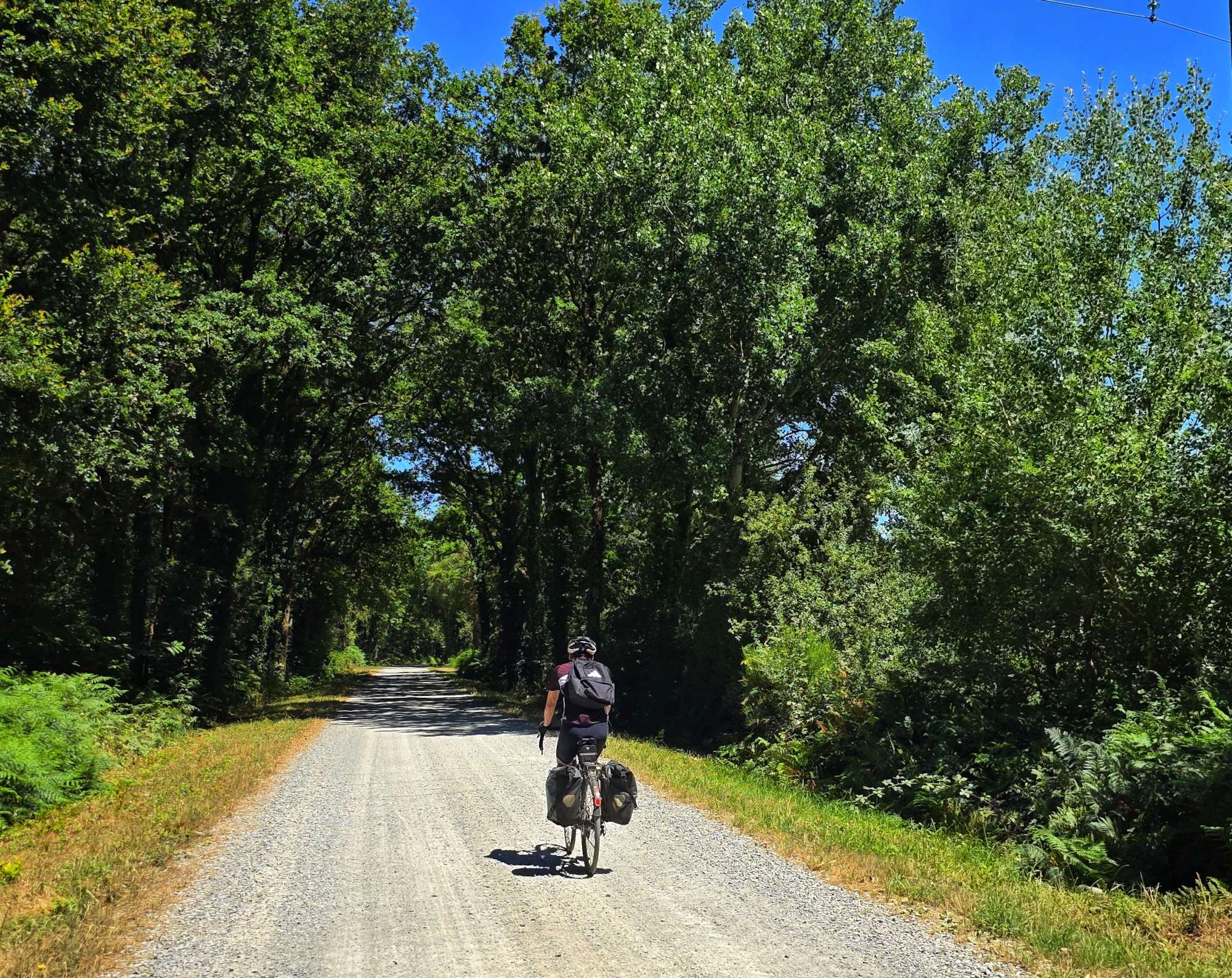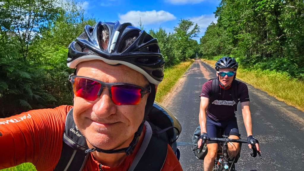 This was a beautiful stretch of tarmac which cut straight through the surrounding forest. We had some much-appreciated protection from the sun, which was now beating down on us whenever there were gaps in the trees.