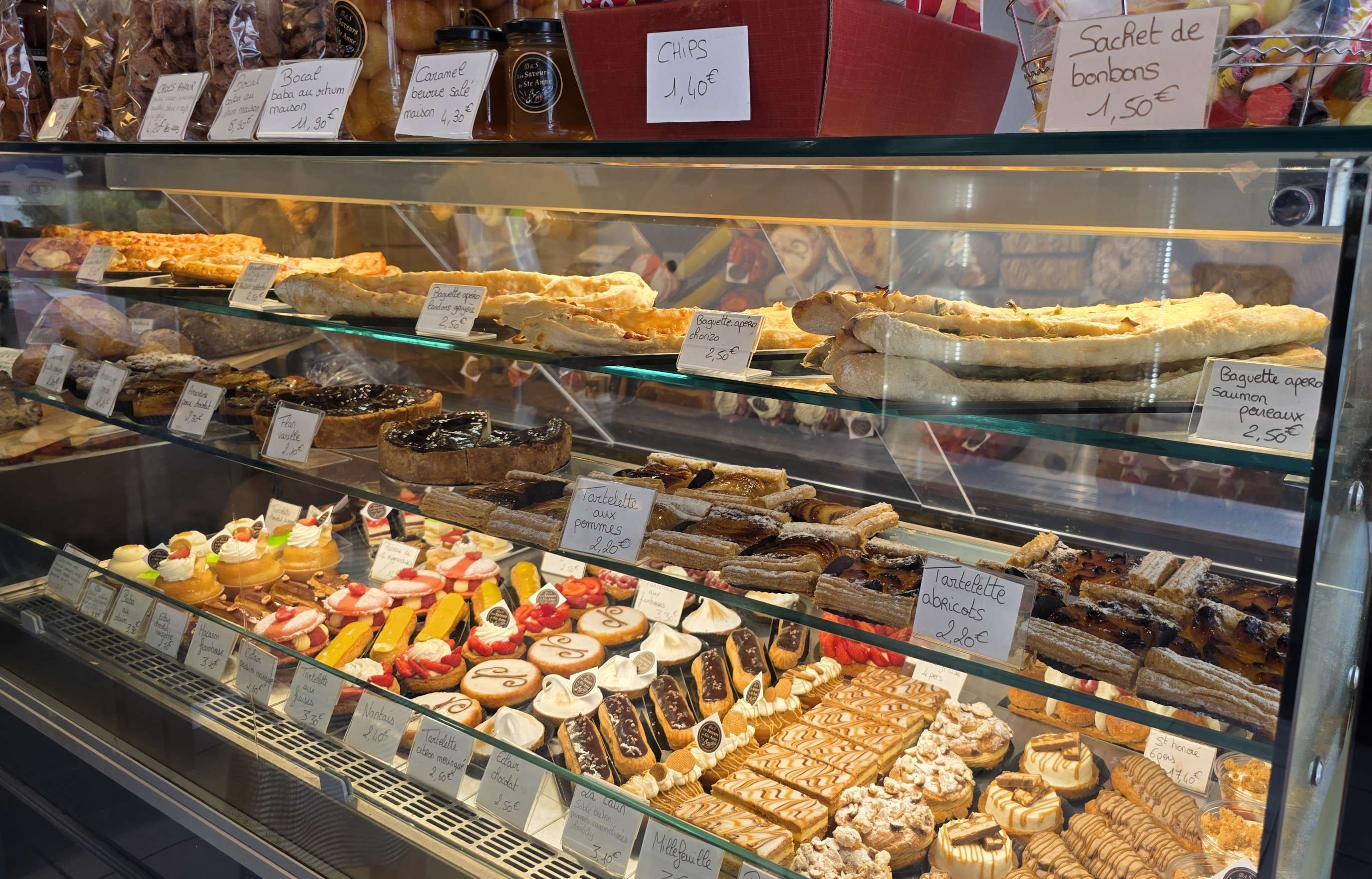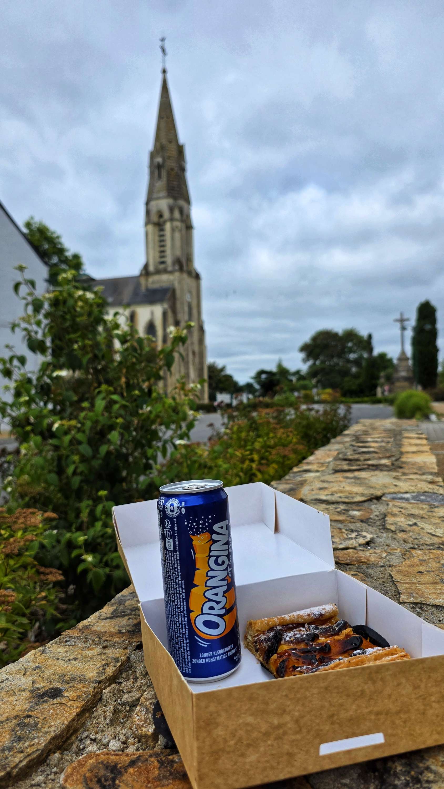 At the 22-mile point, we reached the small commune of St Anne-sur-Brivet & I spotted a patisserie, so of course we stopped to sample their wares! I chose an apricot tart which was delicious washed down with an orangina.