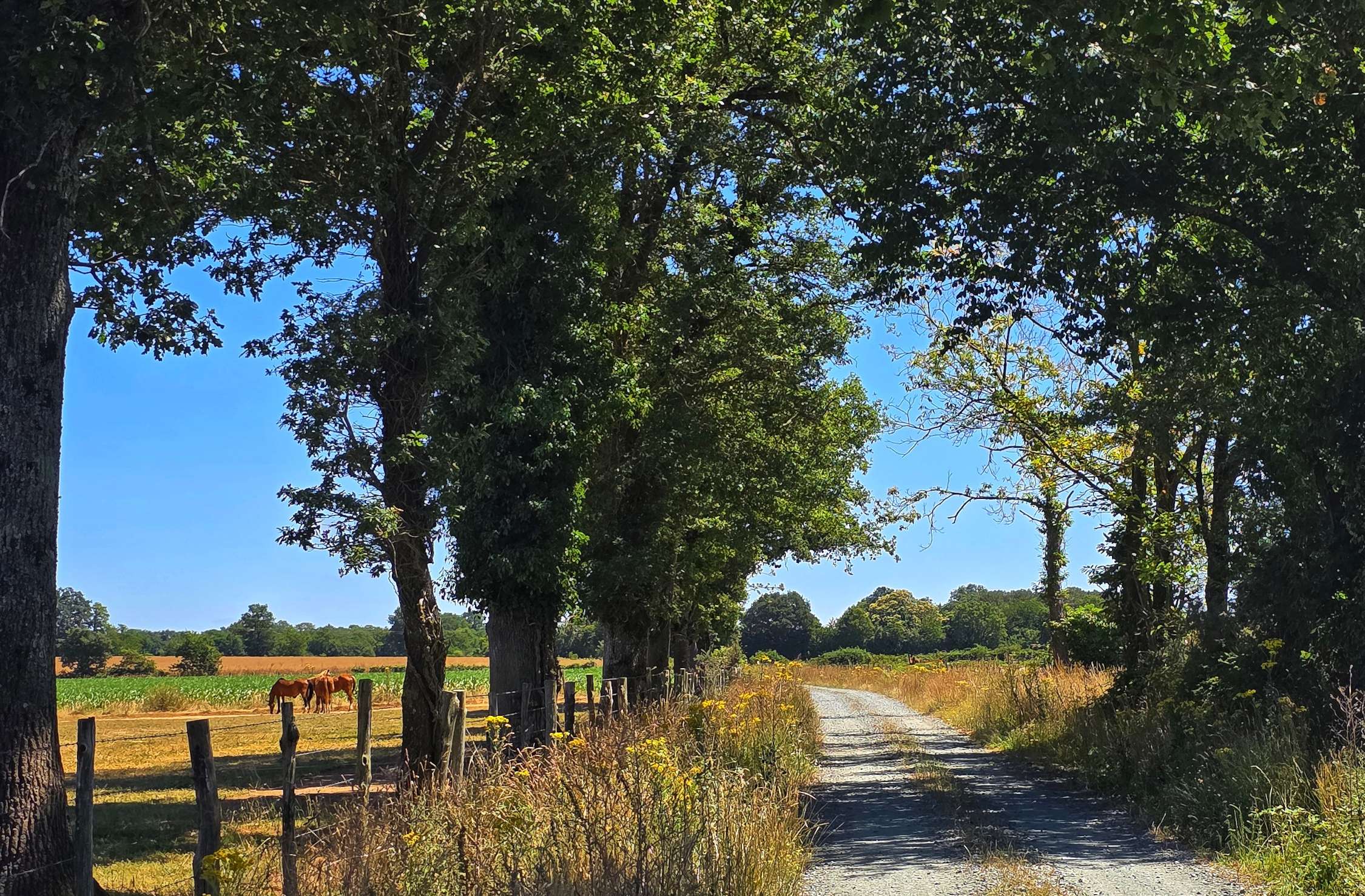The gravel track continued to narrow & deteriorate the further along it we travelled, until at Lieu-de-Er the gravel turned to cricket ball-sized stones – Sean & I don’t have the skills to ride this, so we joined the main road towards Pontchateau (we both recognised the name as being 1 of the stations we stopped at on Thursday’s train ride to Saint-Nazaire. The road was busier than we would have liked, but much better than the rough off-road trail we’d left behind!