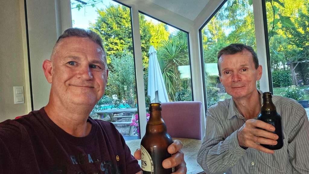 We’ve just finished a 3-course plat du jour of prawn & avocado salad, poulet with vegetables & rice, followed by tartlette d’abricot – it was delicious! We also made some new French friends – Eric was on a short cycling trip with his daughter Alice & luckily their English was significantly better than our French & we had a thoroughly enjoyable evening.