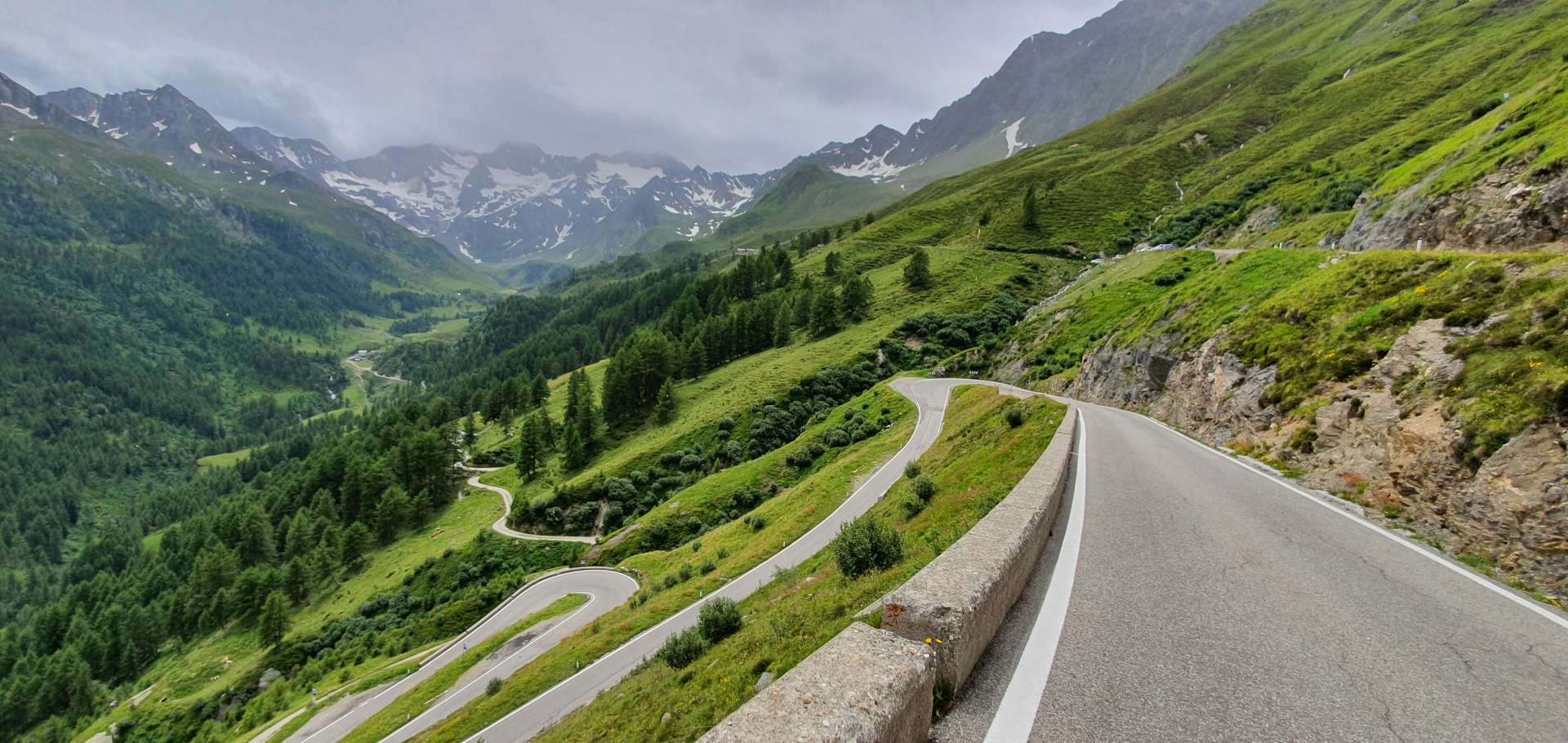 After a brief stop at the summit for a few photos & to don our rain jackets, we headed down the Italian side, where the Timmelsjoch becomes the Passo del Rombo.