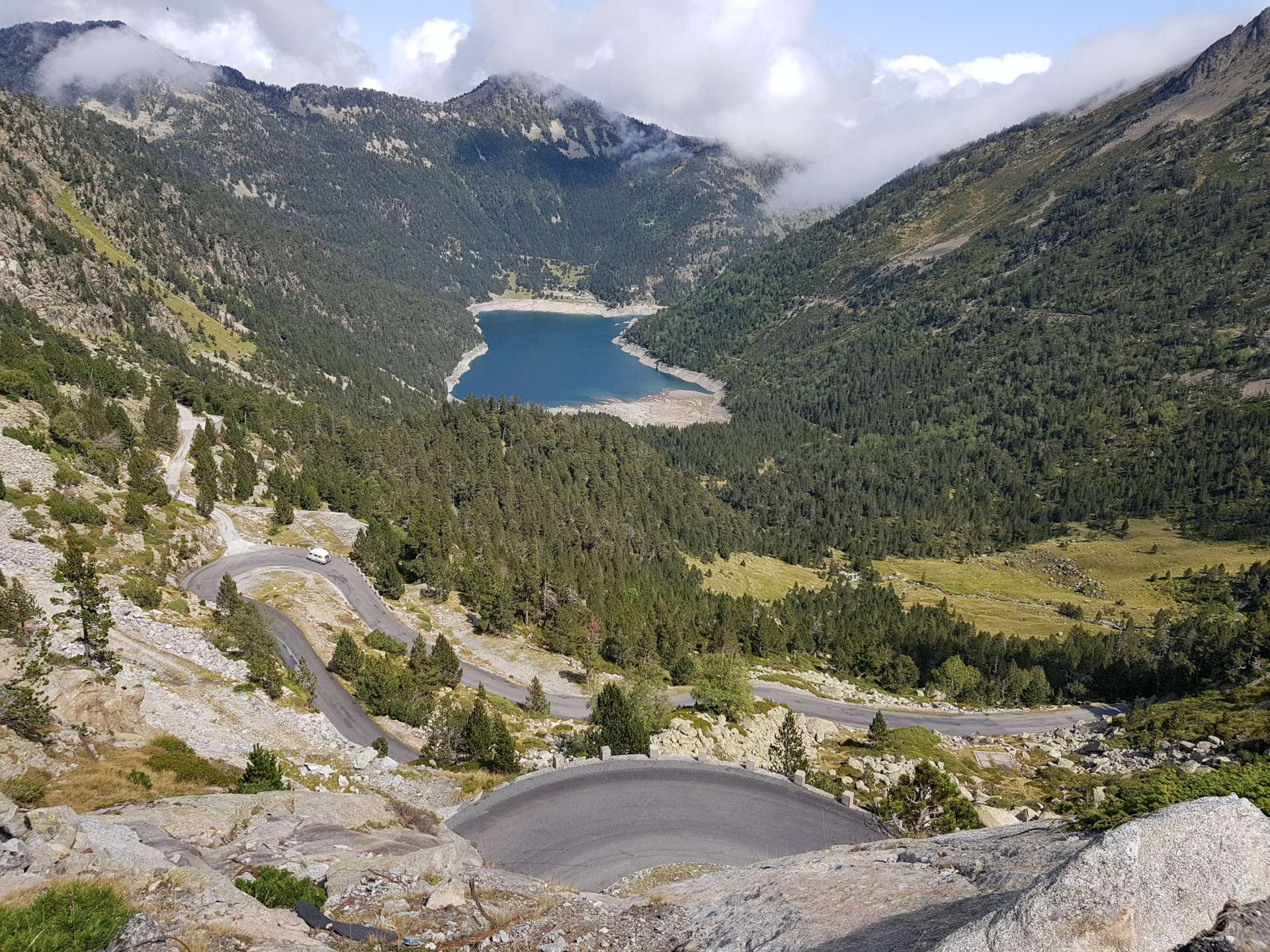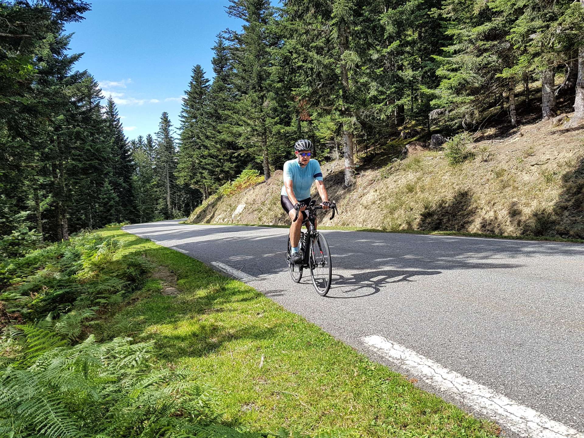 We quickly descended to the Col de la Bonette, then set off on an exhilarating 16.5 mile descent to Saint-Etienne de Tinee, stopping briefly for lunch at Restaurant Pratois (I was too hungry to take a photo!). There were some roadworks on the outskirts of town & as we had a green light, we carried on over the newly laid tarmac – big mistake!! As we rolled over the new tar, it stuck to the tyres & then the grit stuck to the tar…….we spent about 30 minutes cleaning the worst of the grit & tar from the tyres so we could continue our adventure.