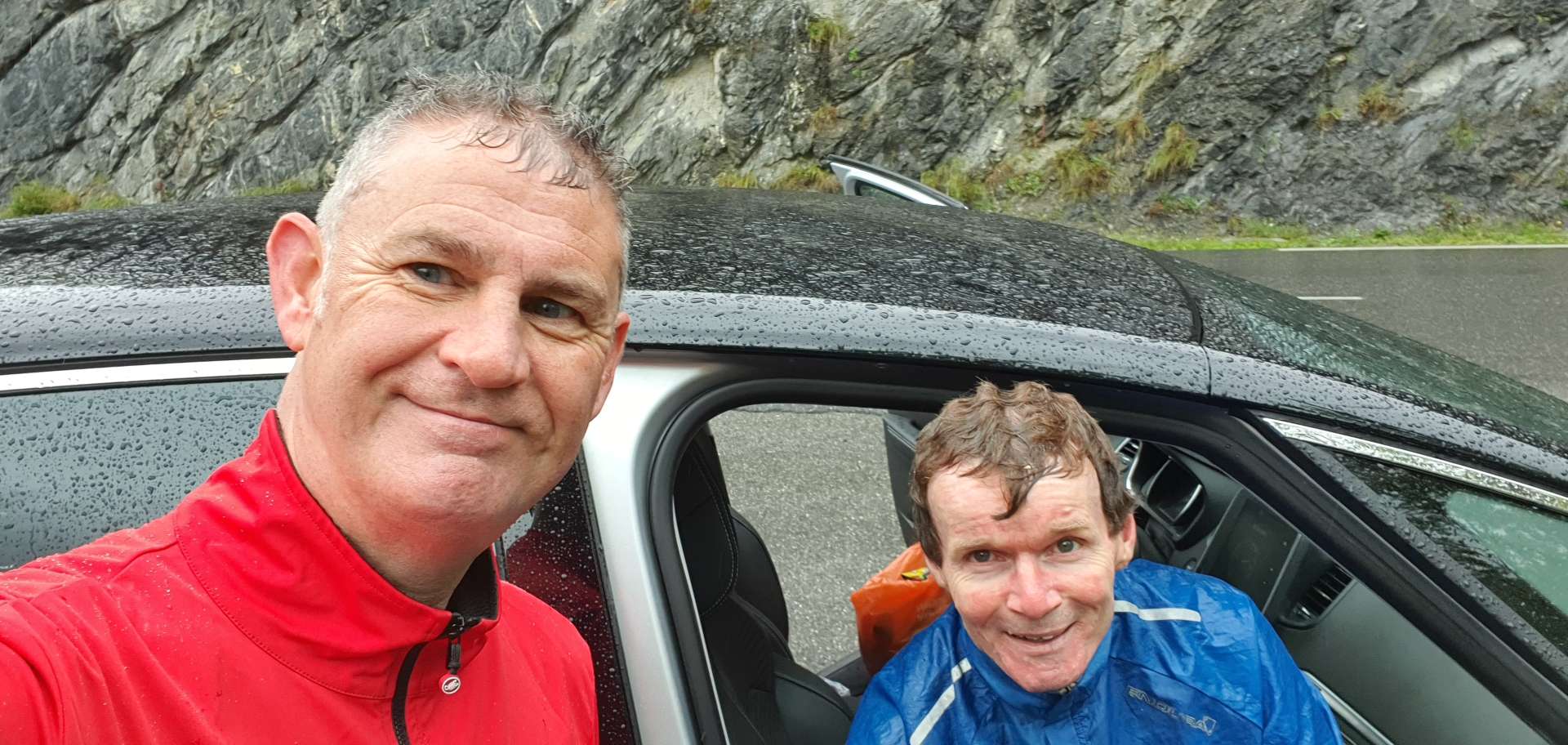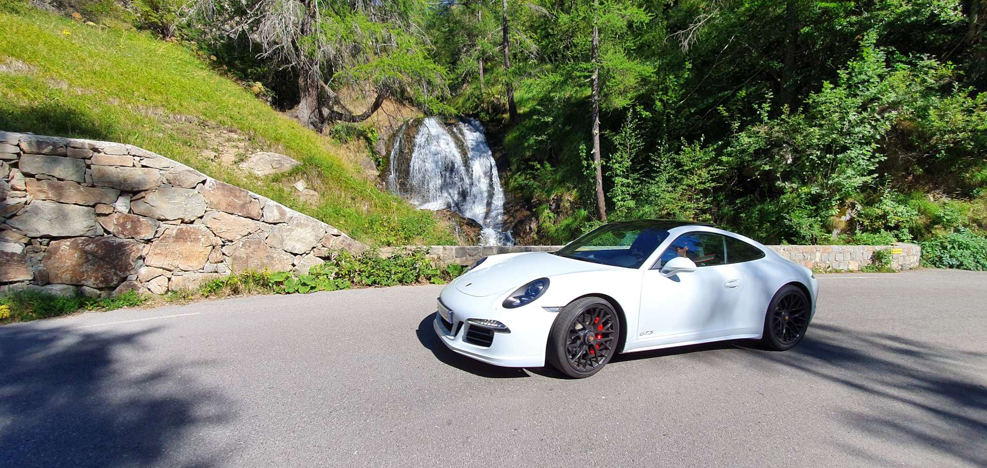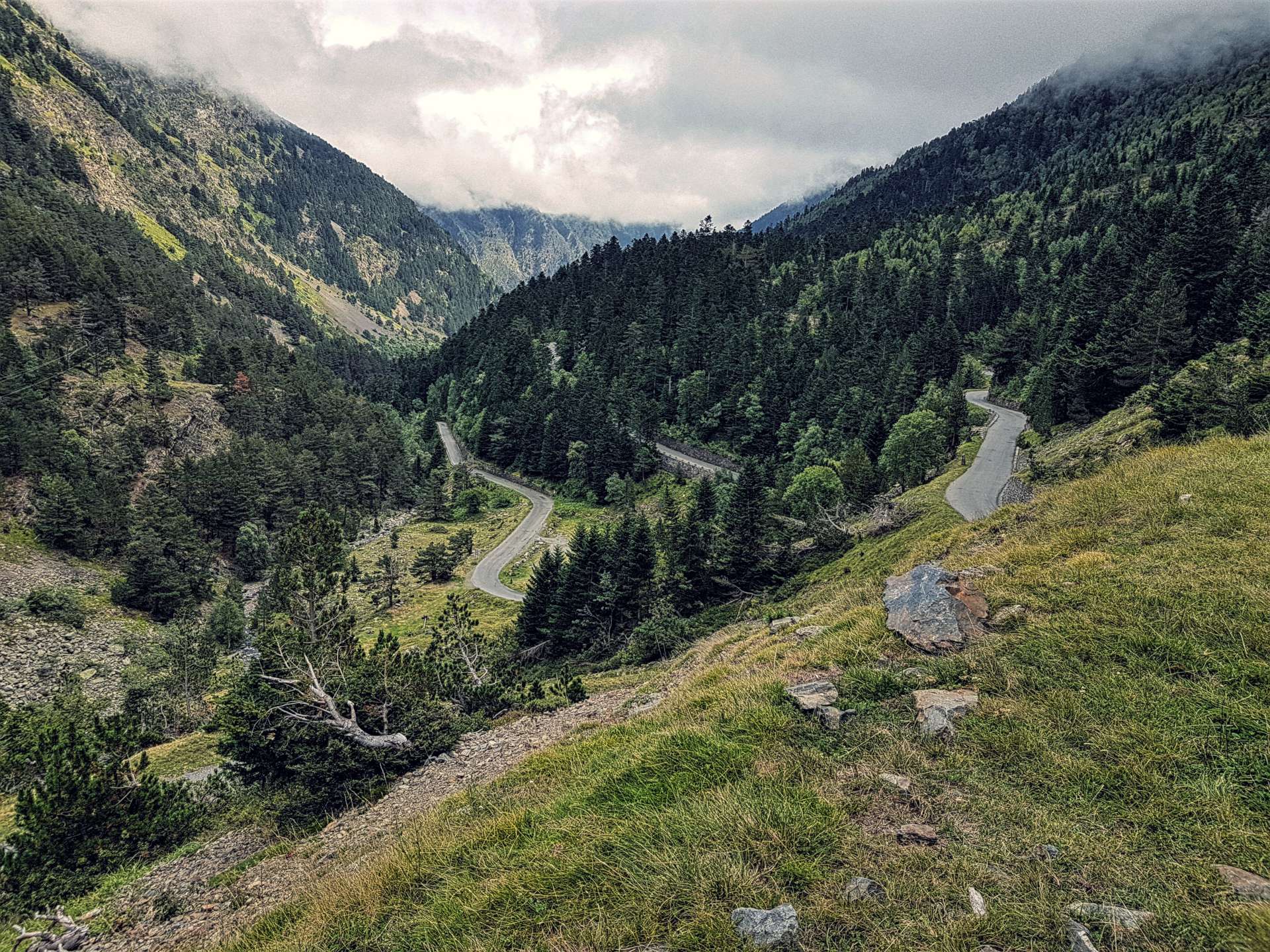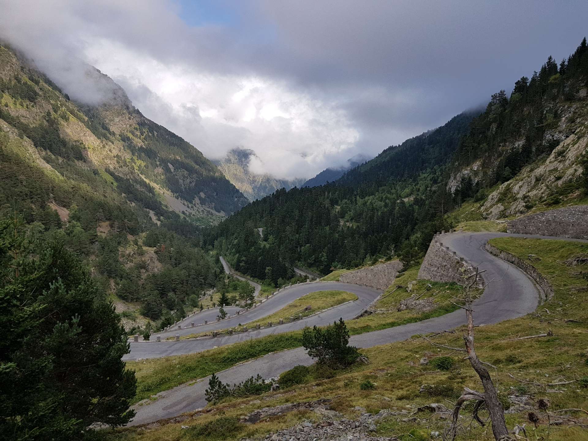 Turning round in town, we took to the path to avoid the new tarmac & then followed a babbling brook as it gently climbed for a couple of miles until we reached the start of the climb as we re-joined the M2205. Waterfalls lined the valley walls & it was at this point that a group of Porsches shattered the peace & quiet as they roared past us.