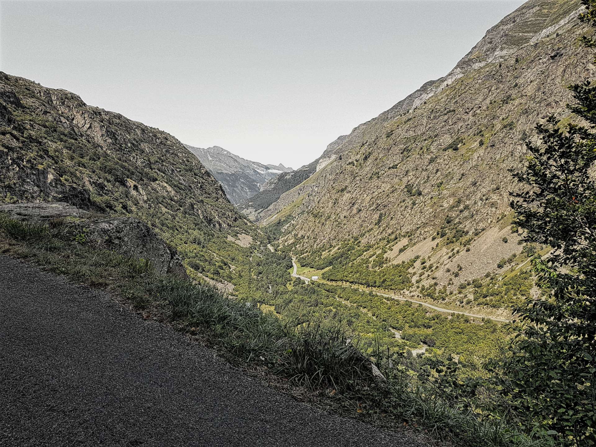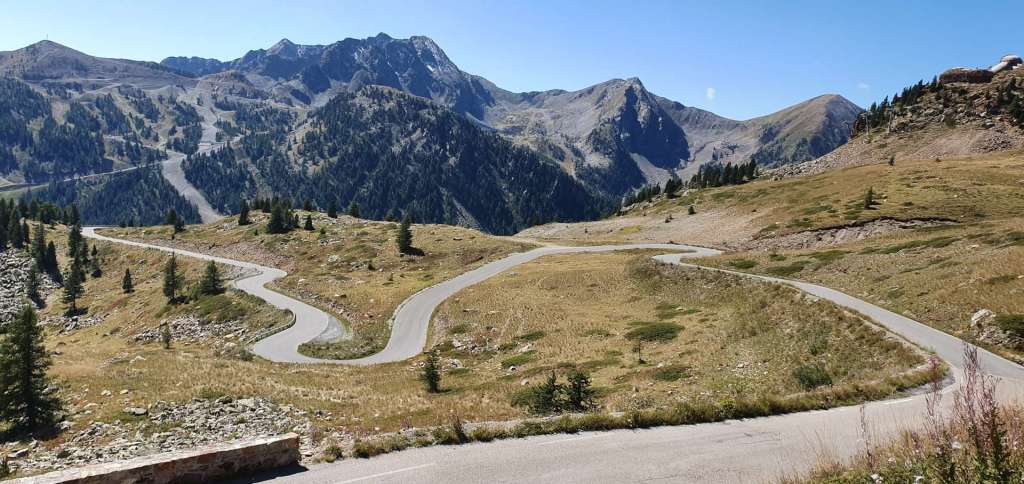At this point, the valley opened up in front of us & gave us a view all the way up to the pyramid shaped Cime de la Bonette some 12 miles away & 4,000 feet above us. The road twisted & turned its way up the mountain, passing through a couple of small villages before heading through Camp des Fourches, another military barracks built at the start of the 1900’s.