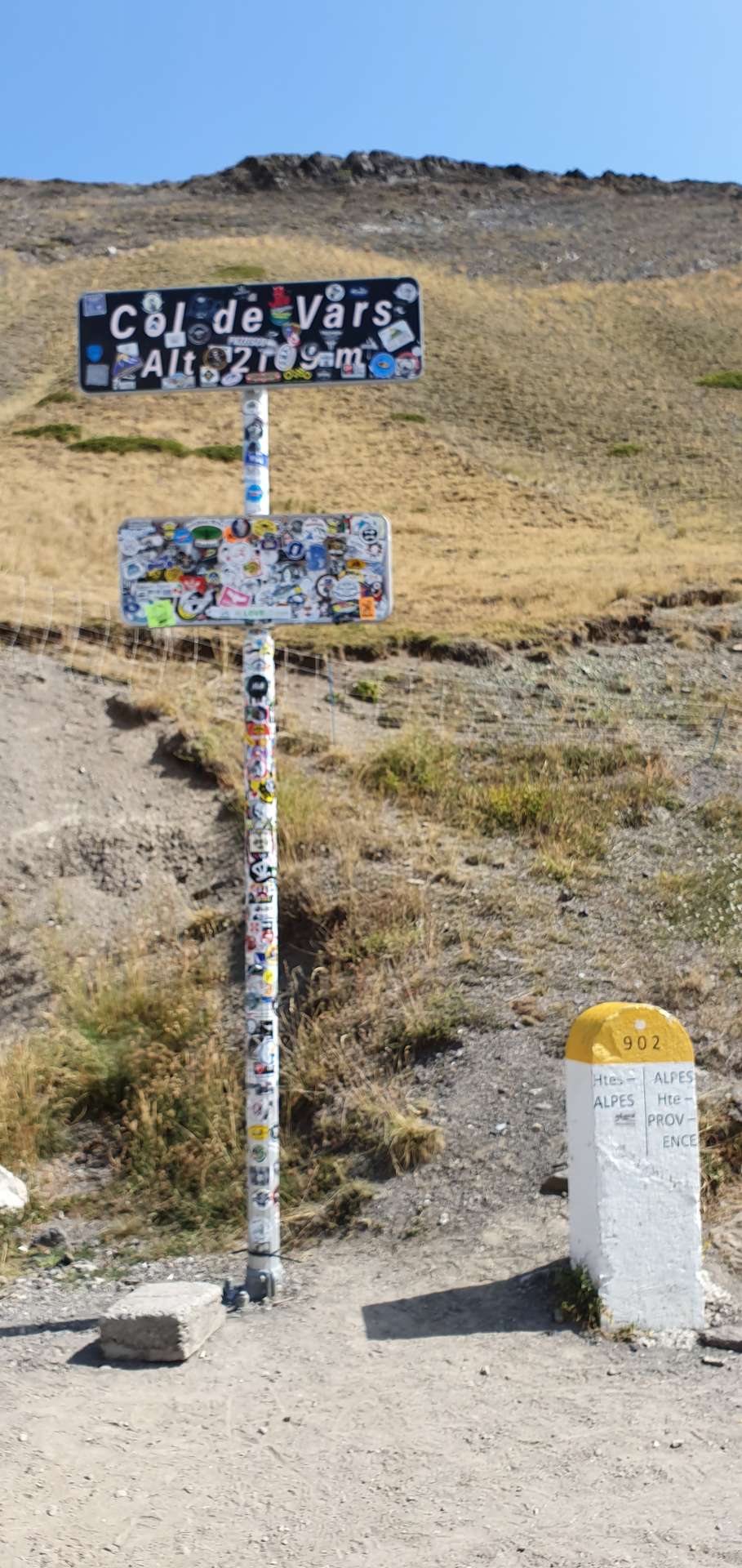 We’d climbed the Col de la Bonette from Jausiers on a previous visit, so knew that at about the halfway point of the ascent was a great little café & this was our first target & we weren’t disappointed when we reached Halte 2000 – we had a delicious slice of Blackcurrant plan & a cappuccino, as well as purchasing a Col de la Bonette fridge magnet for collection!