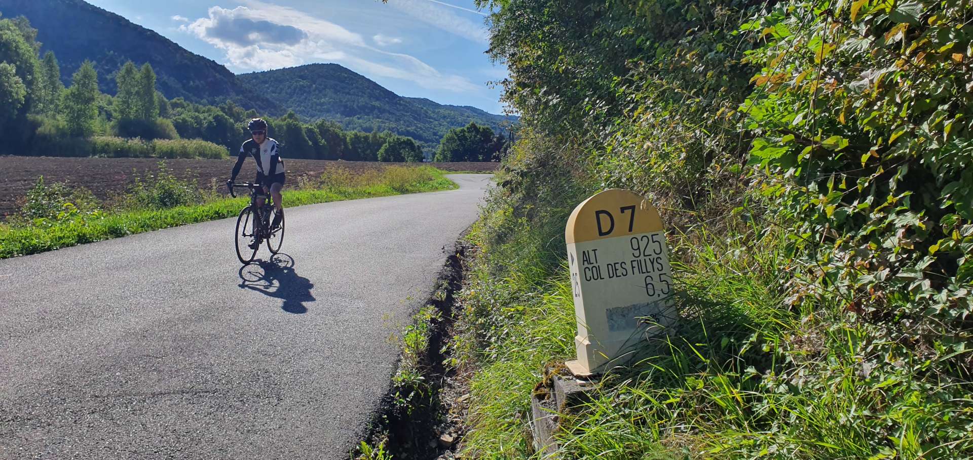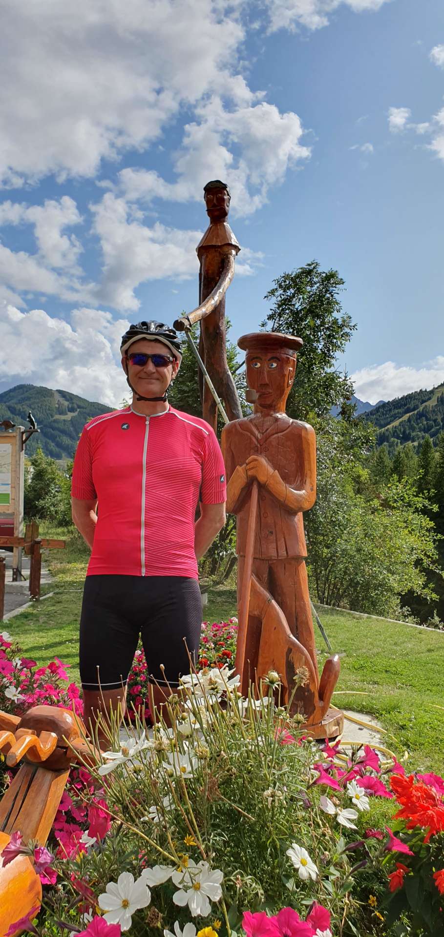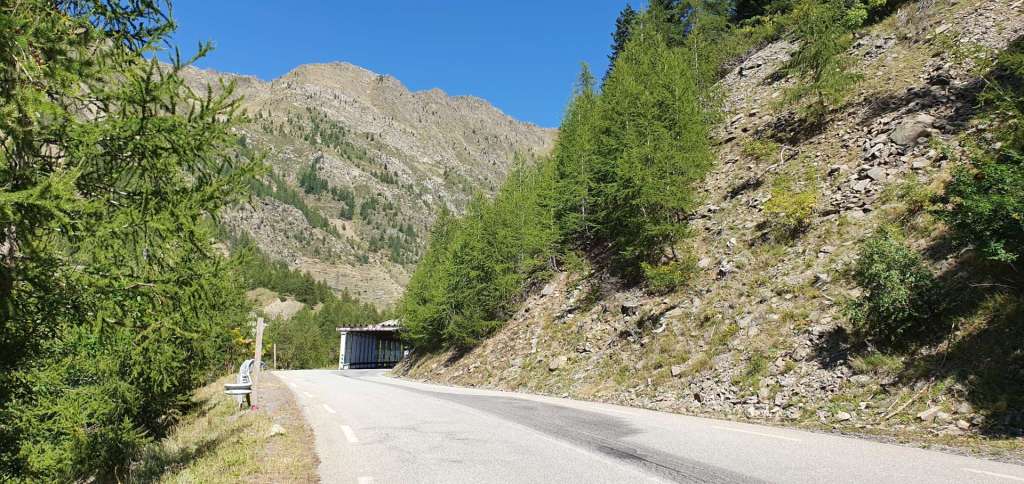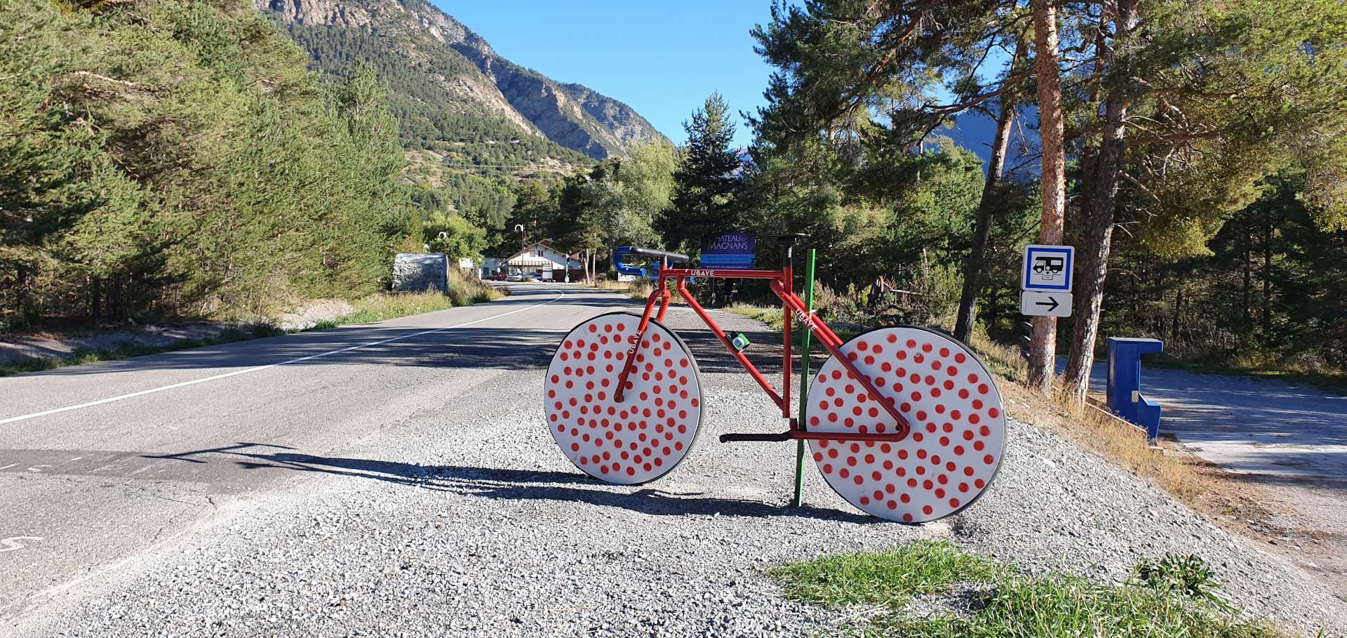 Once more we woke to clear blue skies overhead, & the first 6 miles of the ride replicated our route on Sunday as we headed to Jausiers. There was plenty of graffiti on this stretch of road, as the Tour de France passed through Barcelonnette & Jausiers this year, on the stage that took in Col de Vars, Col d’Izoard & Col du Galibier. We also passed a couple of pieces of cycling related memorabilia on the way.