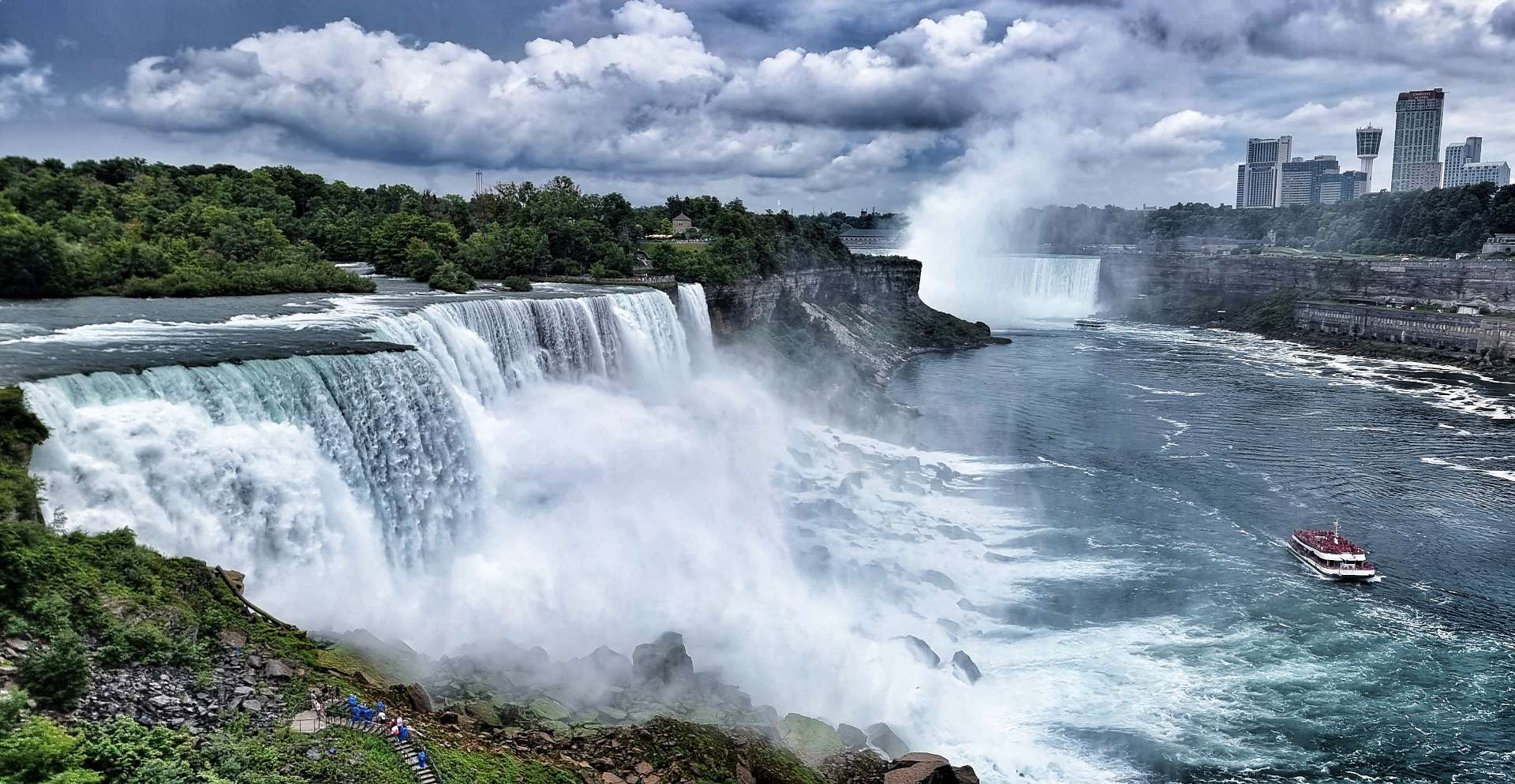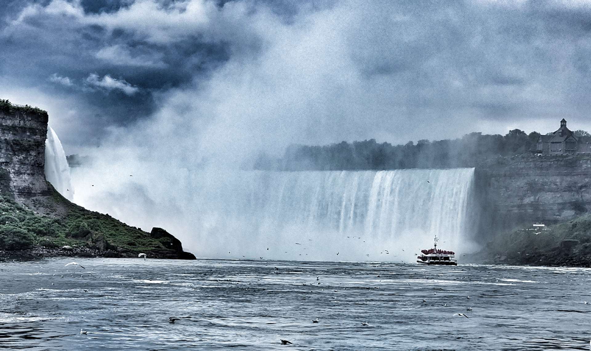 During periods of peak flow in summer & autumn, more than 700,000 gallons of water per second flow over Niagara Falls! This is because 4 of the 5 great lakes drain into the Niagara River, as the water makes its way to Lake Ontario – the Fifth Great Lake.