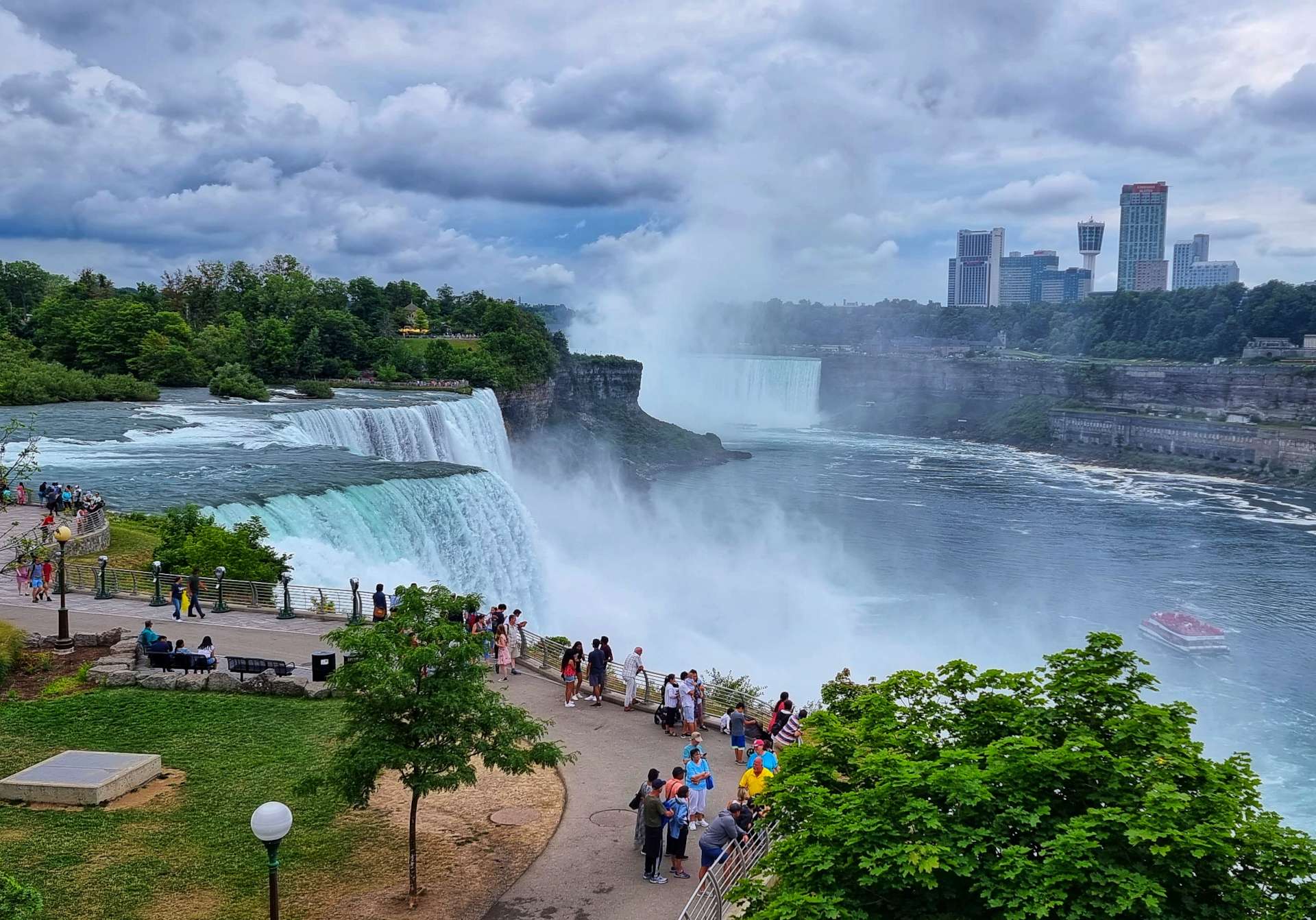 Our adventure began with a brief sortie into Niagara Falls State Park – we became two of over 8 million people who visit the Park every year. In less than half a mile the calm Niagara River becomes a raging torrent as it prepares to plummet over one of the three waterfalls. Niagara translates from the Indian language as Thundering Waters – it was time to find out why.