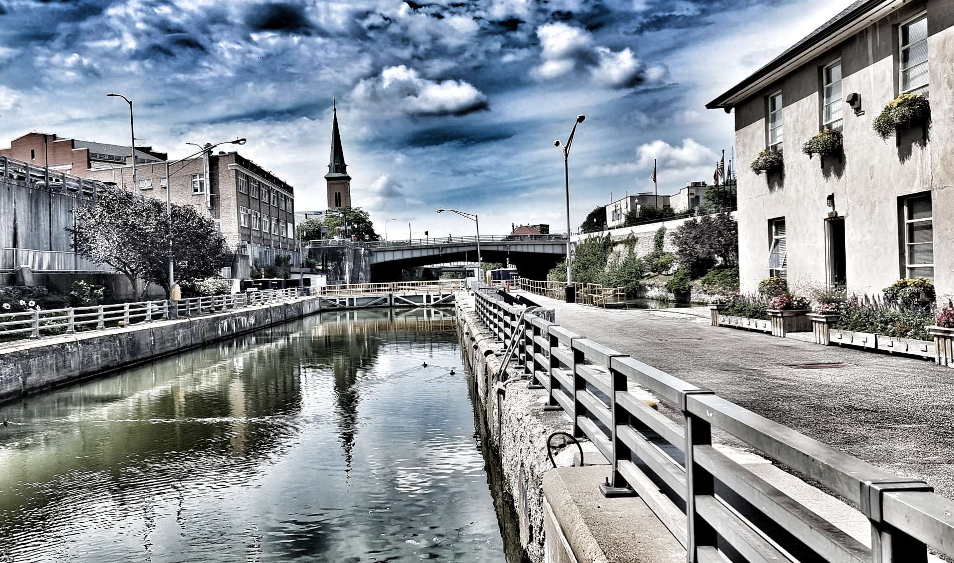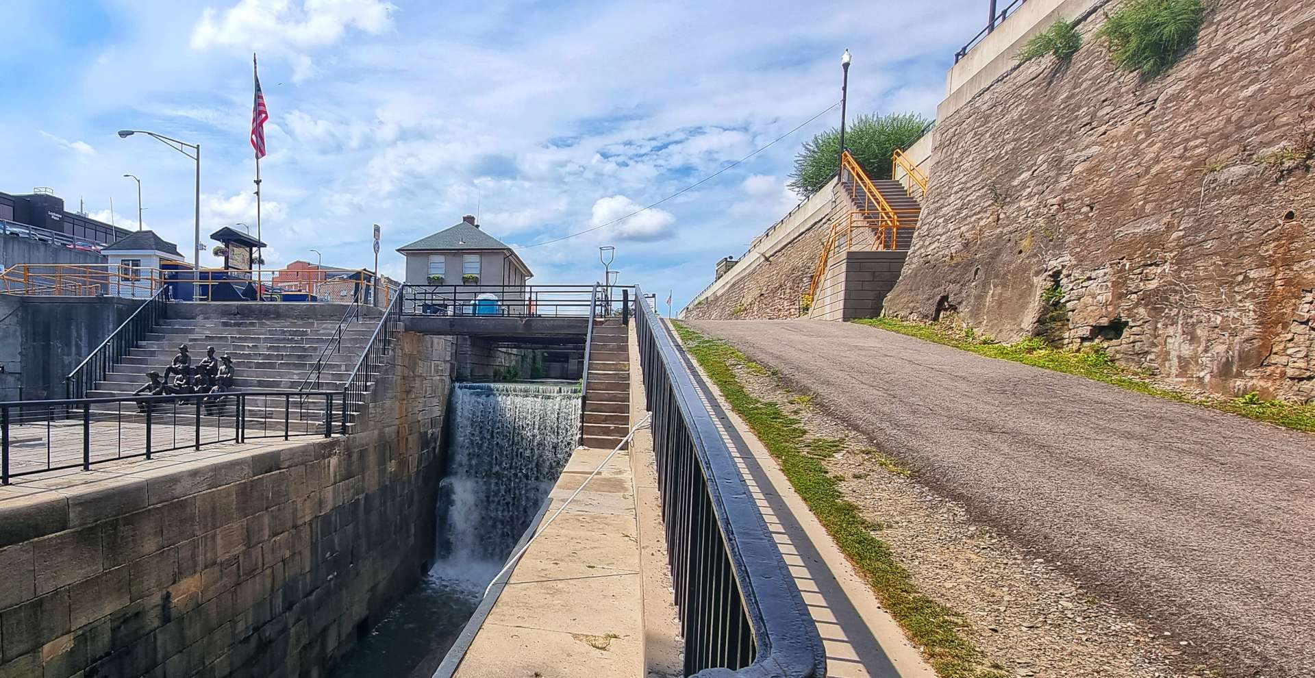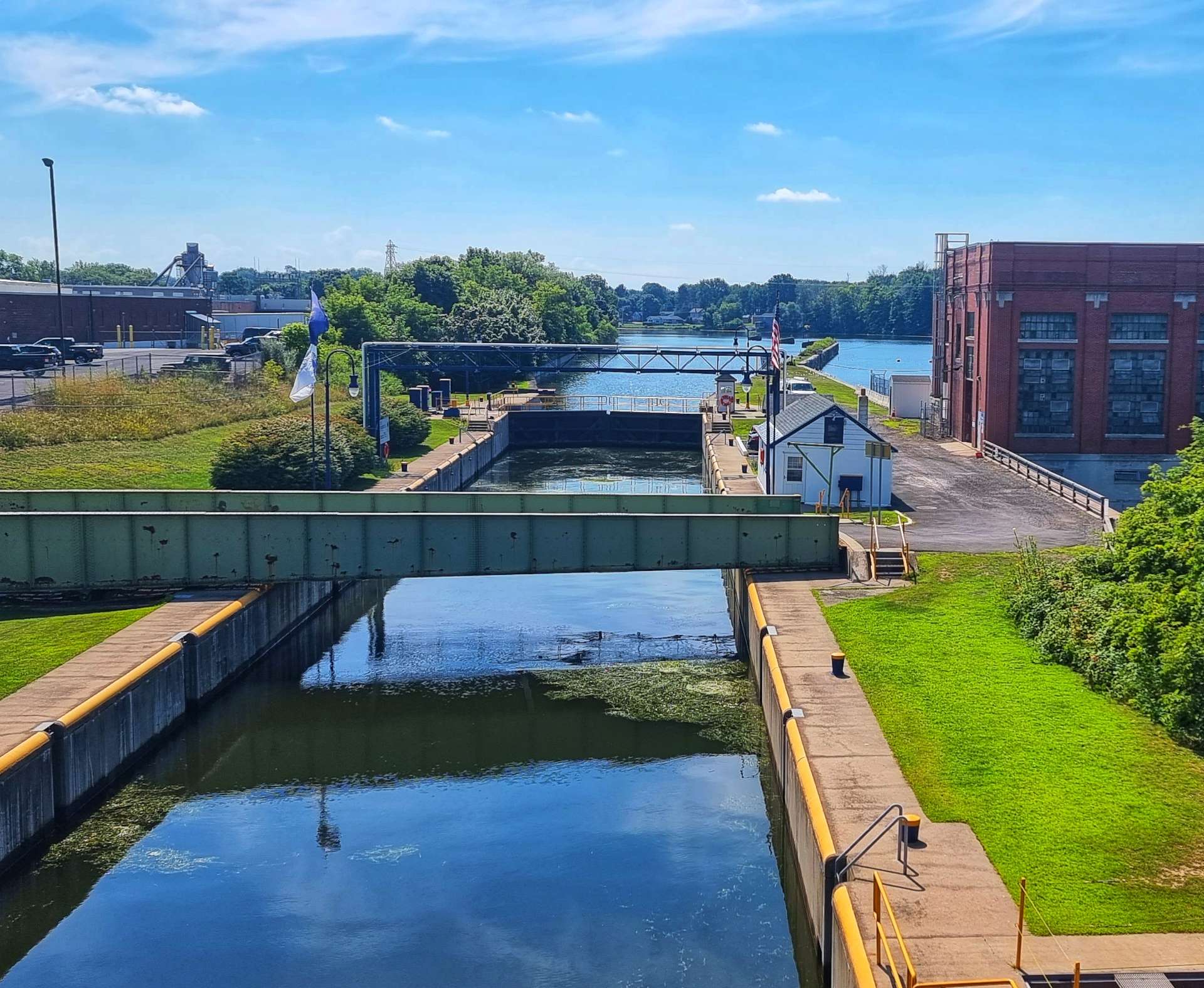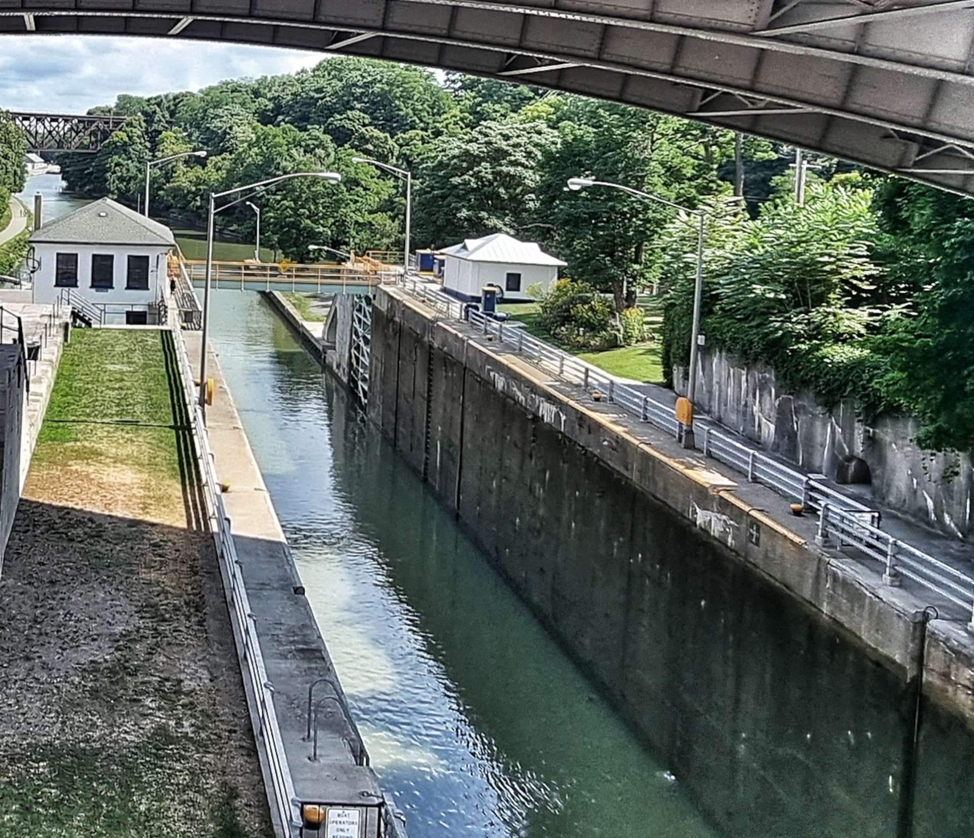 We continued through quiet parkland & then popped back out onto the bank of the Erie Canal, with the main freeway on the opposite bank. The trail was almost deserted at this point, as we made our way towards Brighton & Lock 33, which is still in use.