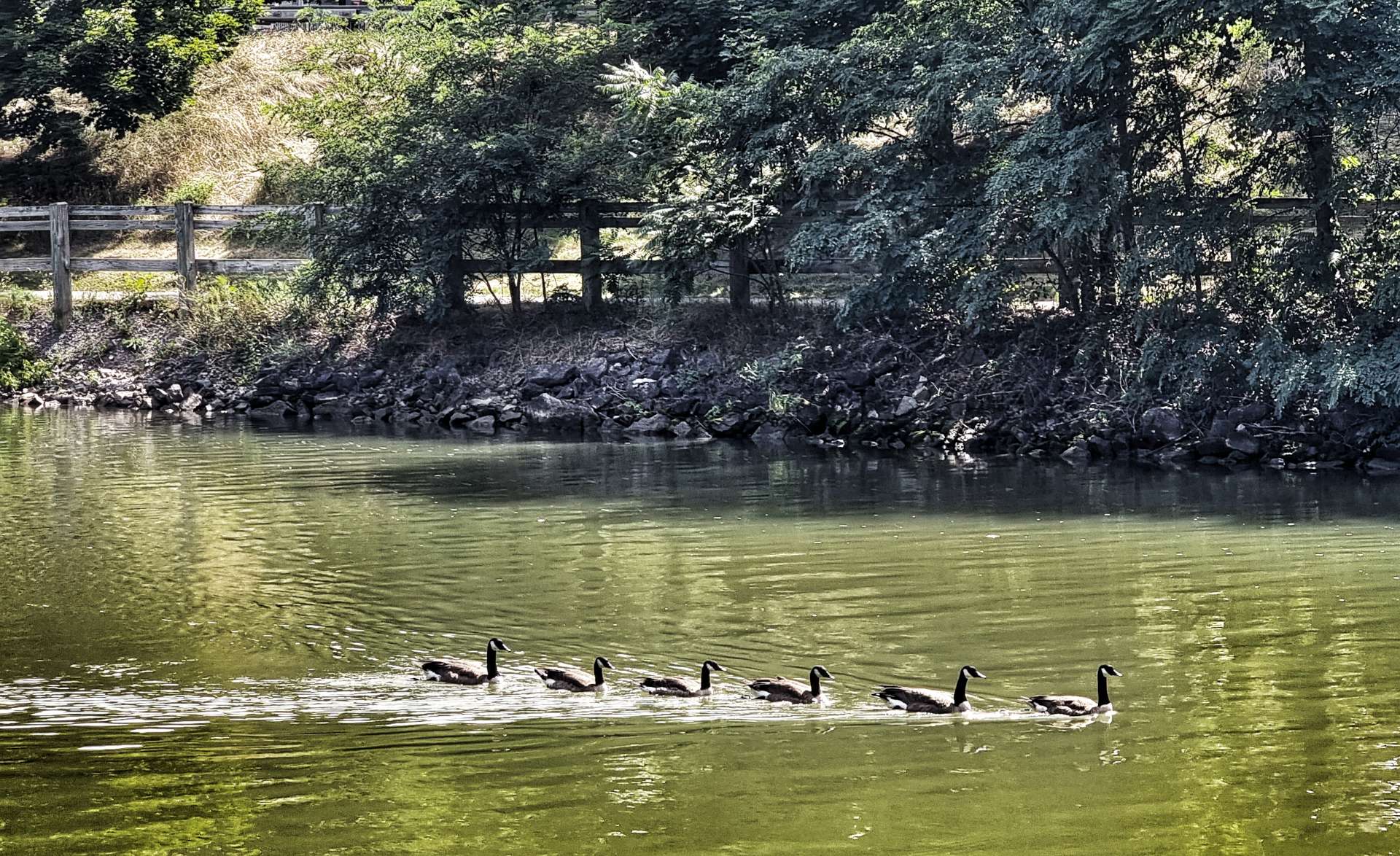 While we were on the trail we saw the canal being used by a large barge which was taking people on a cruise, a small boat with just a couple of people on board, a paddleboarder & a gaggle of geese who were practicing their synchronised swimming.