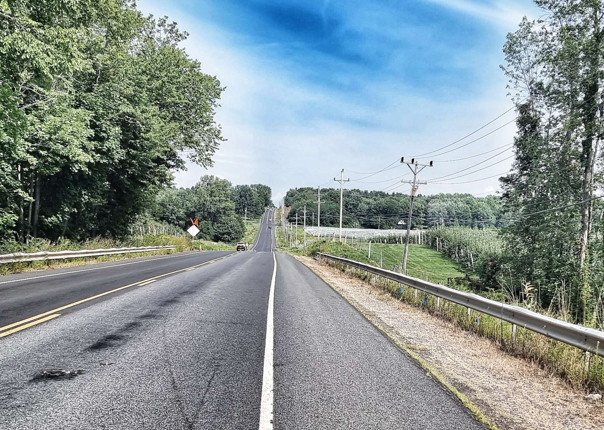 As we left Wolcott, we joined a small & quiet two-lane road that took us through woodland, then through a variety of different crops, from orchards, to maize & soya plants – it was like being back in Wisconsin or Indiana again!