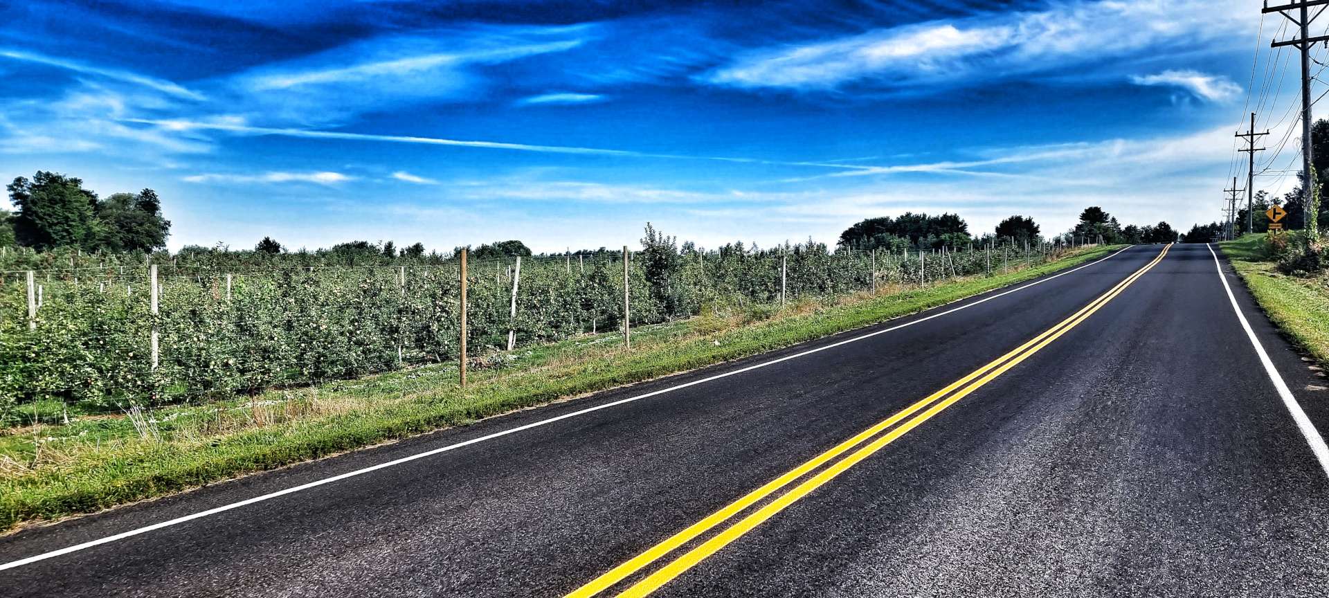 Soon after coffee we joined the road network again & there wasn’t much new scenery to see in the final 40 miles of the ride. We had a thoroughly enjoyable afternoon riding on quiet roads, it’s just that they were all the same as each other! We had a few minutes of respite when we passed between orchards of apples.