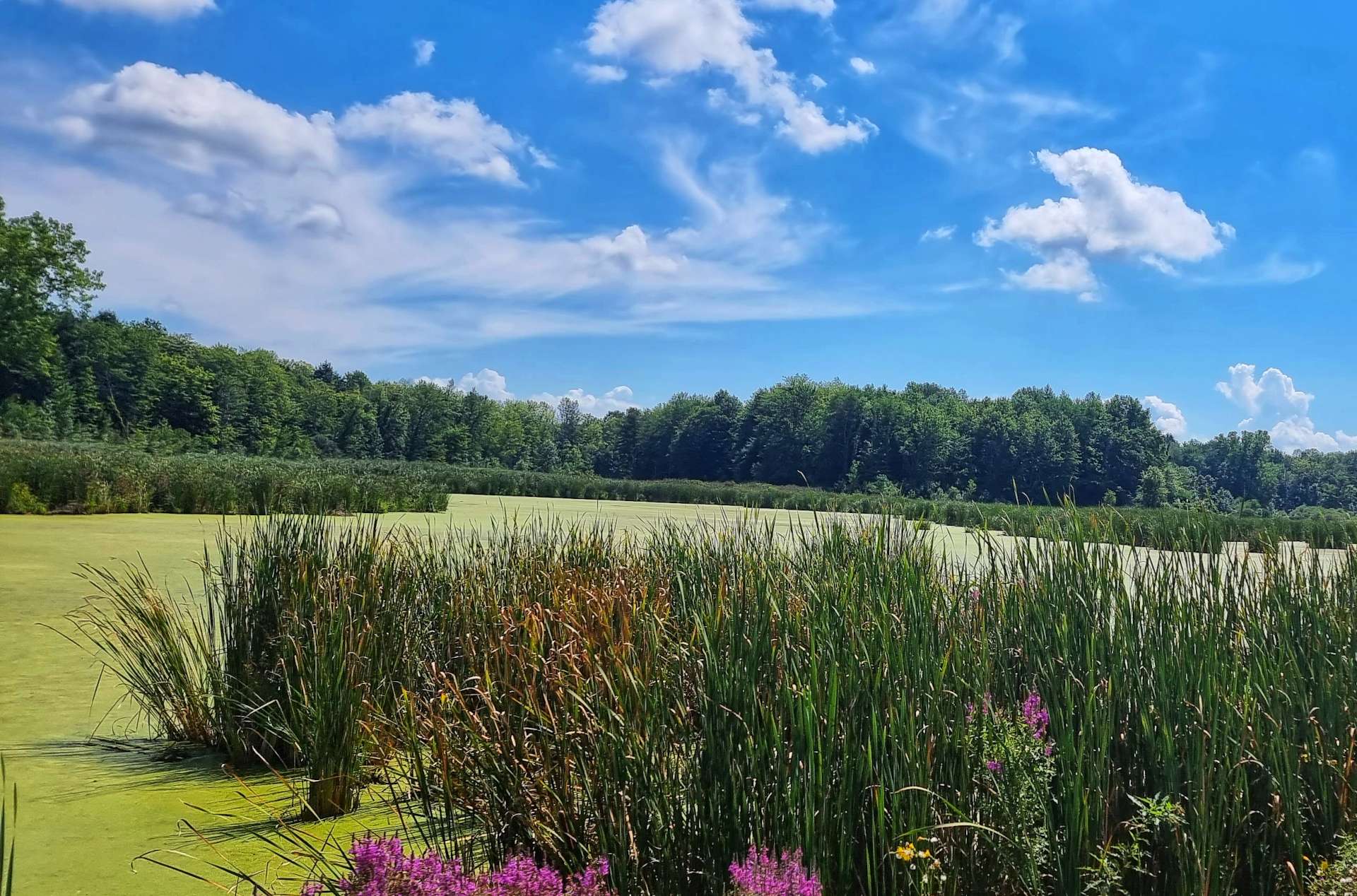 We had one final & unexpected treat before reaching Kathy’s Cakes & Big Dipper Ice Creams for our coffee stop in Volney. Neatahwanta translates from Iroquois as “The little lake by the big lake” & is a favoured hunting ground for osprey, although they were elsewhere today. The “imperfection” in the bottom left of the first photo is a toxic blue-green algae that can cause liver damage in humans & kill pets, although many fish thrive in the lake.