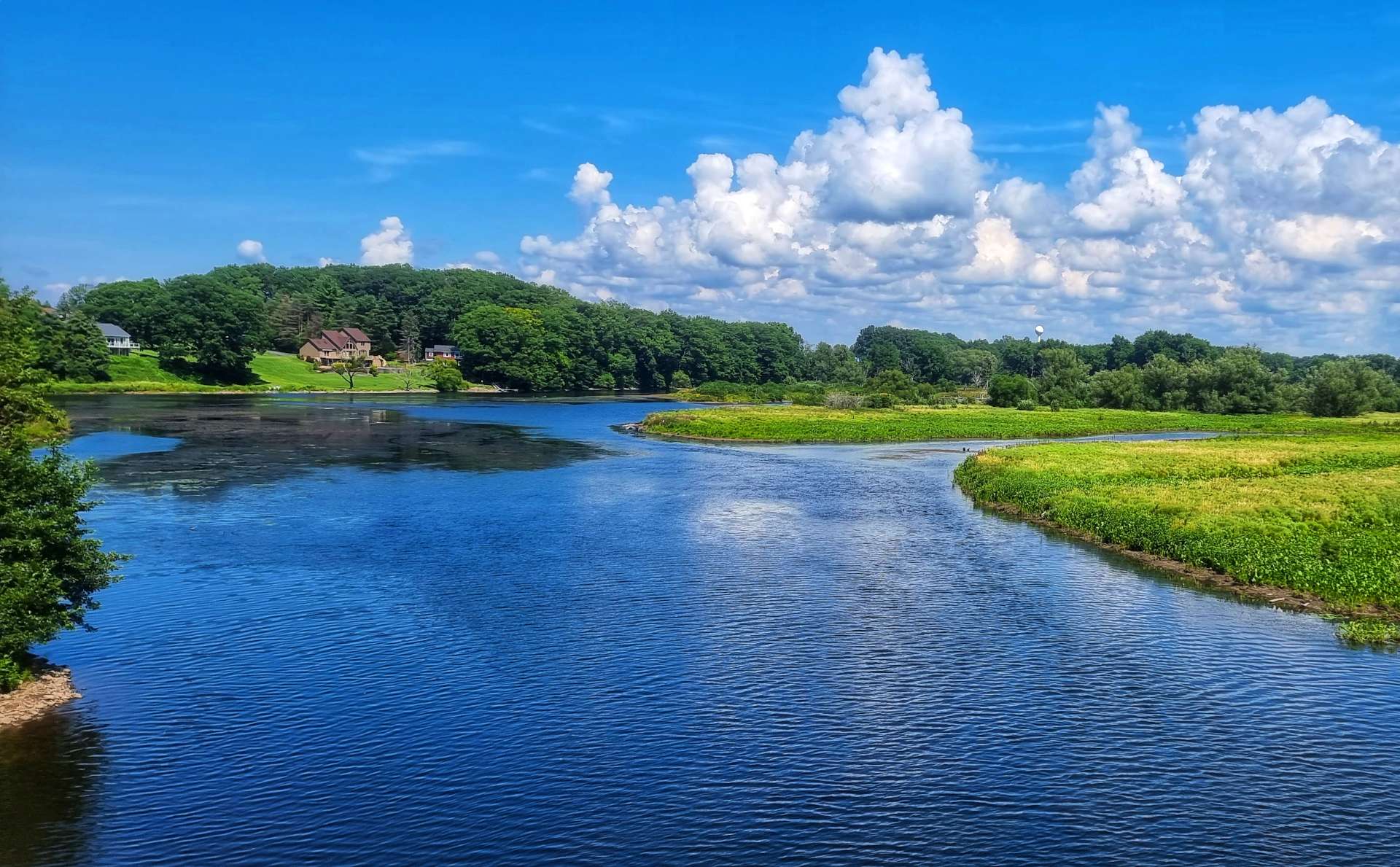 As we reached the town of Fulton, we entered a National Heritage Corridor for the Erie Canalway. Our route took us over the canal itself, where I spotted some herons looking for an early lunch. Just beyond the drainage basin we passed over the lock that enables boats to navigate past the shallows of the Oswego River.