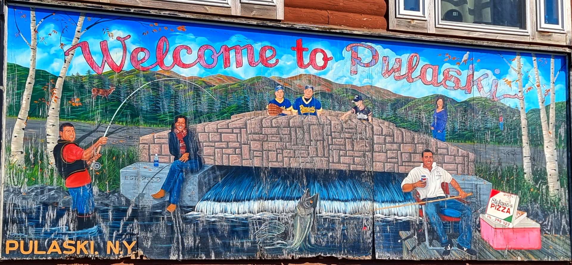 As we reached the village of Port Ontario we stopped to take our last look at Lake Ontario & say goodbye to the Great Lakes for the final time on this adventure. We were only a couple of miles from Pulaski, where we’re staying for the next couple of nights – someone had even painted a big Welcome to Pulaski sign to make us feel at home!!!