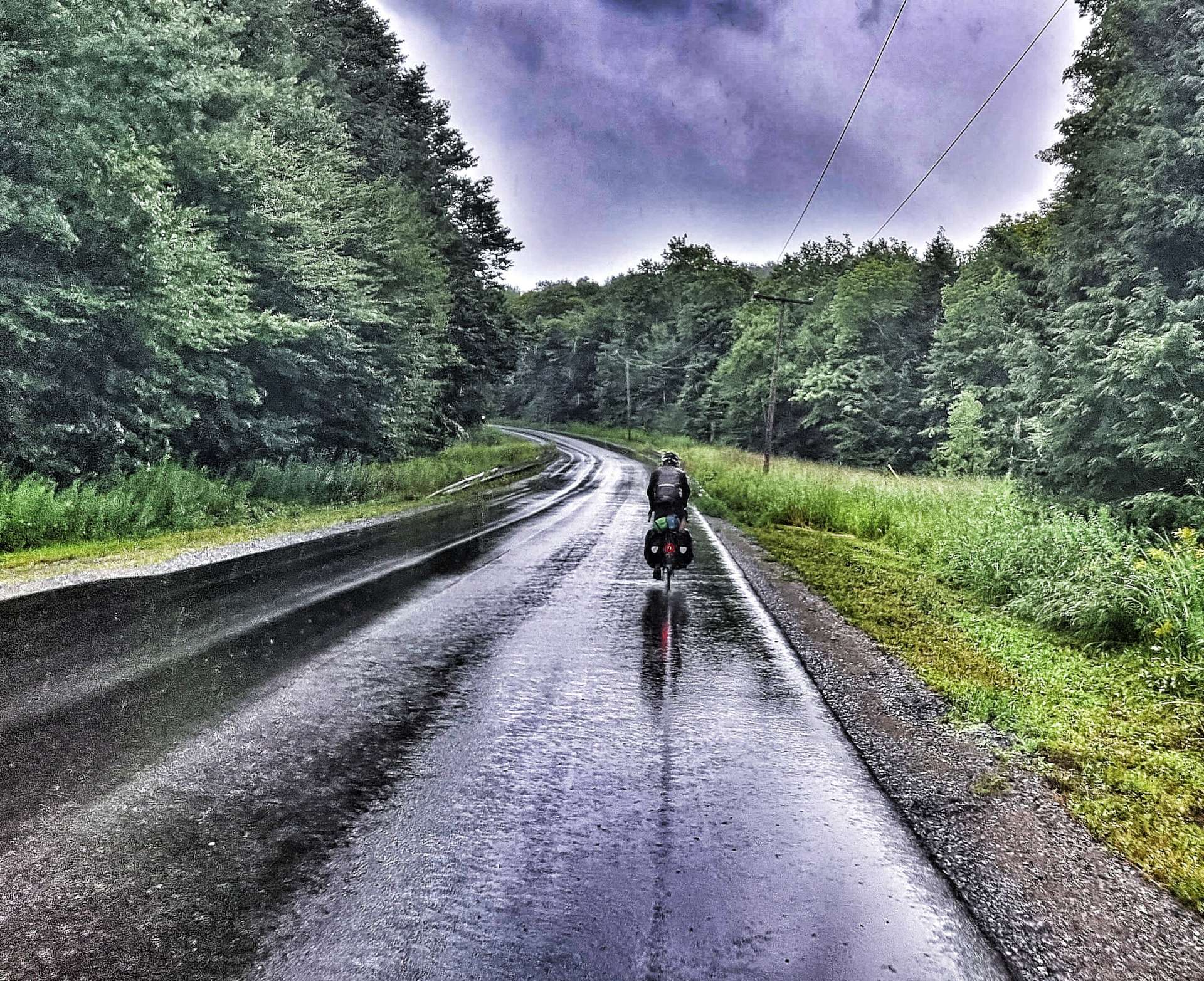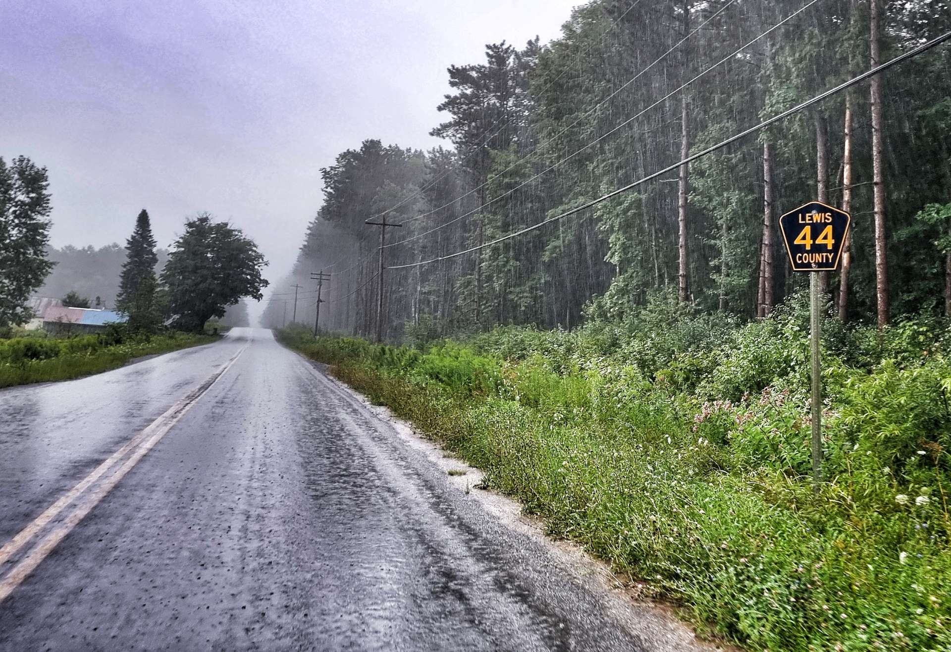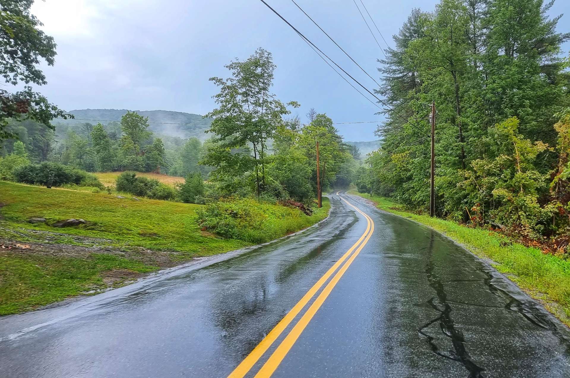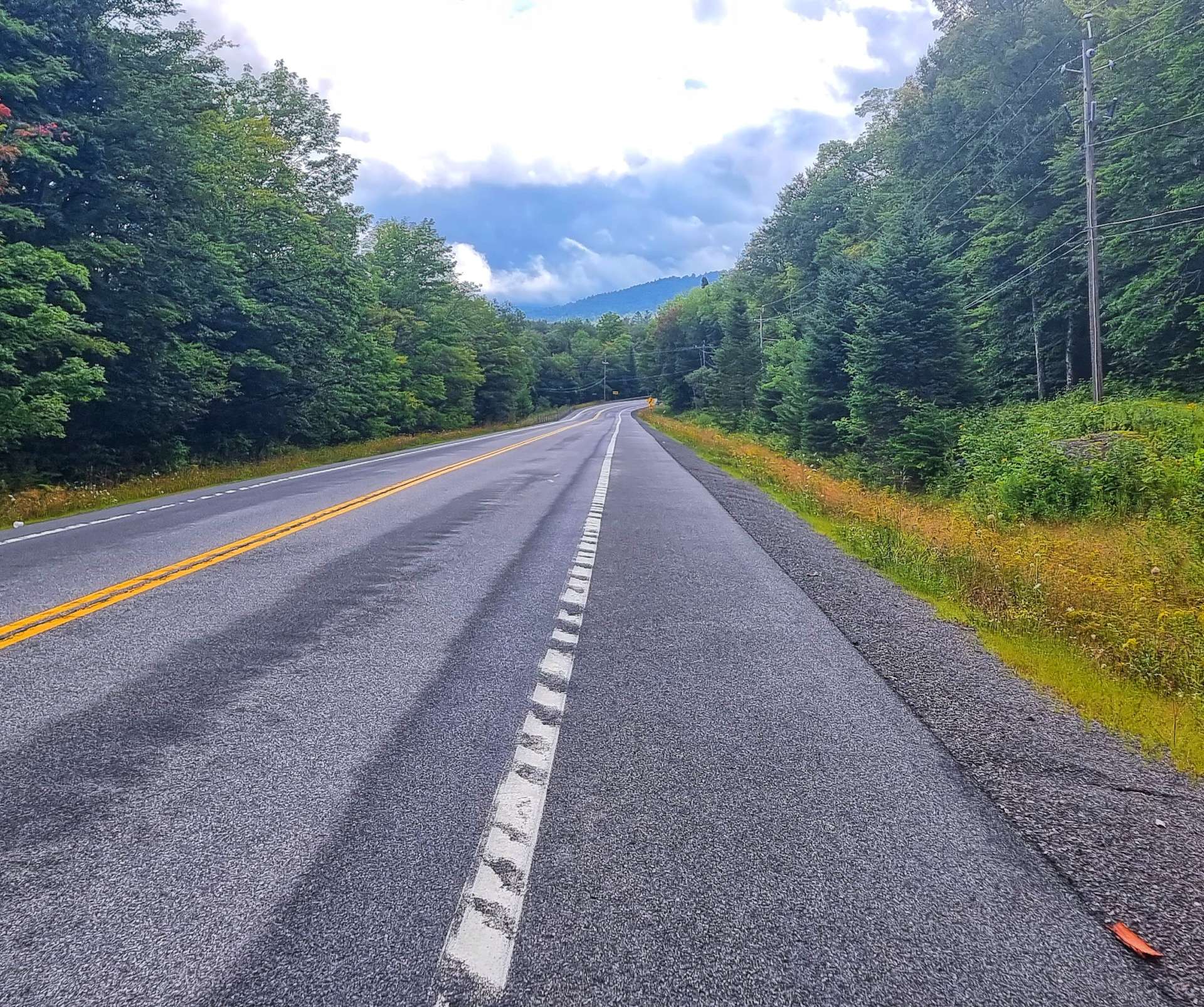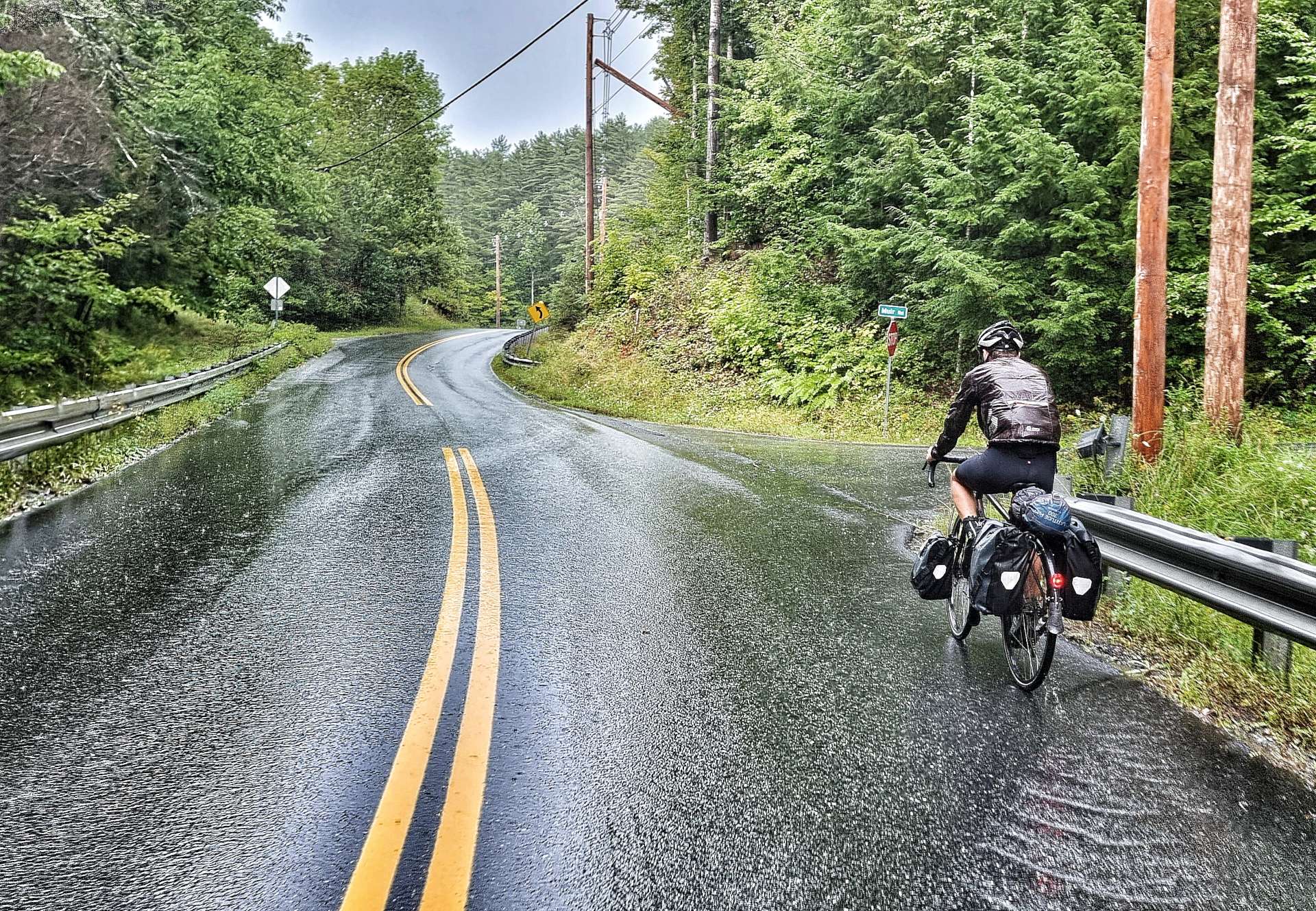 We had a tailwind along this stretch of road as we bounced along the ridge, so although there was heavy rain ahead, it was being blown away from us. We had a fun descent into North Hudson