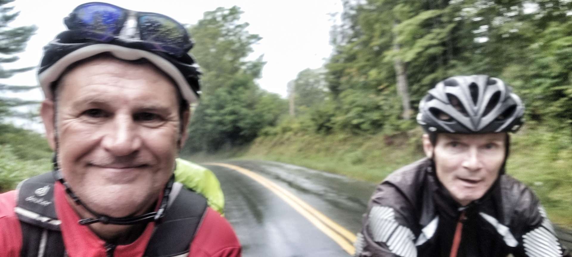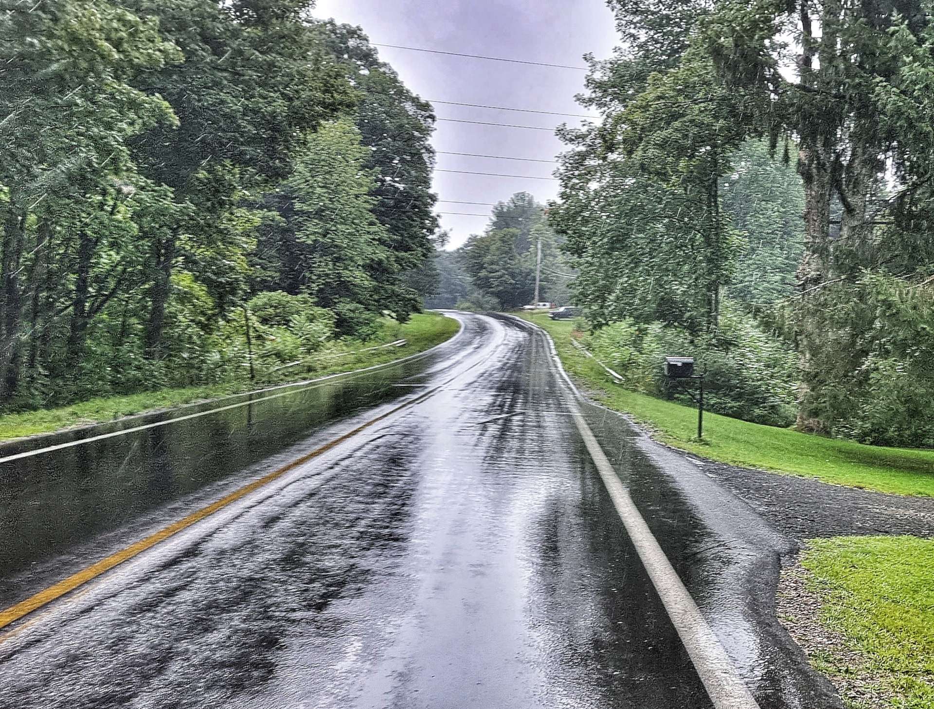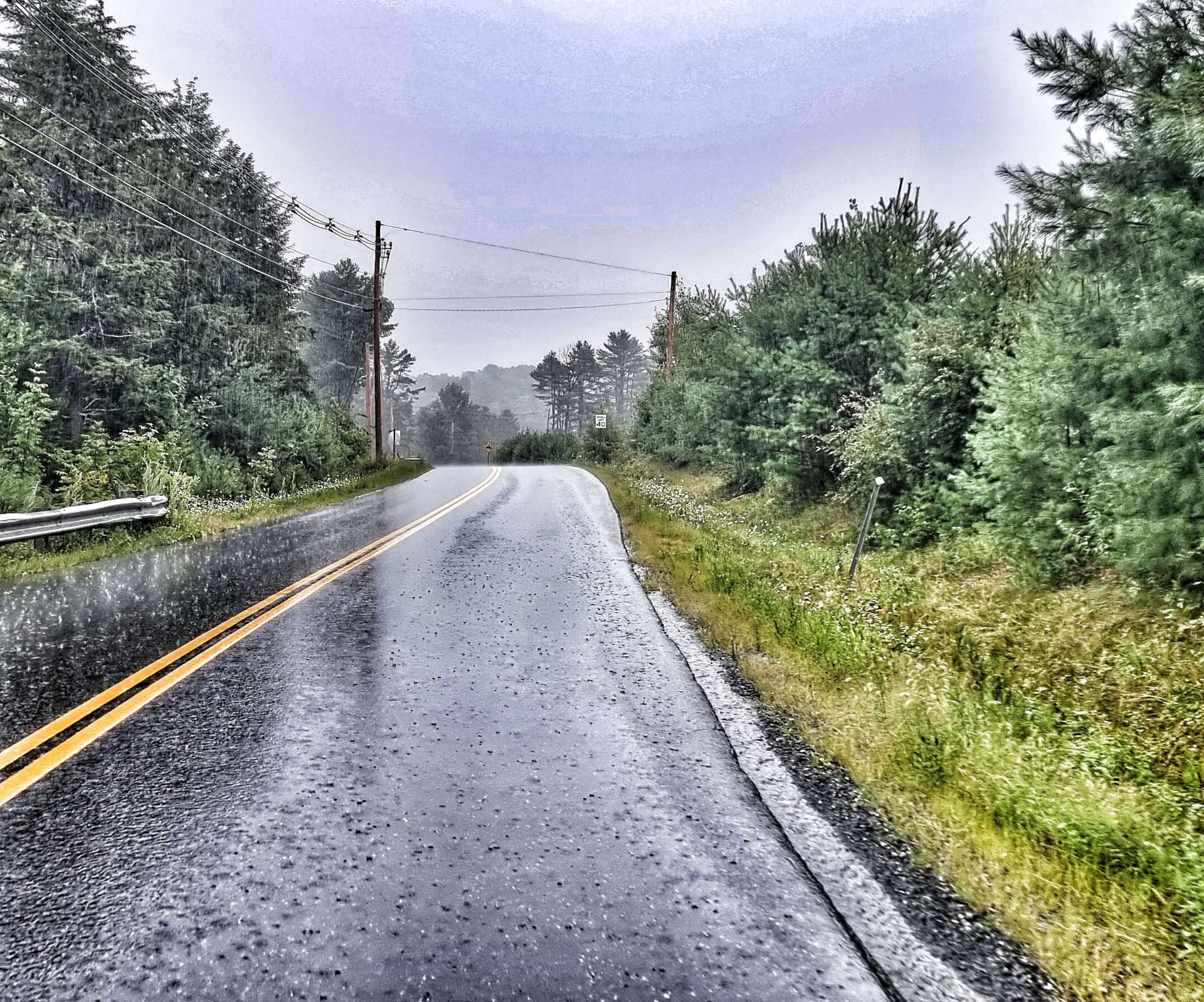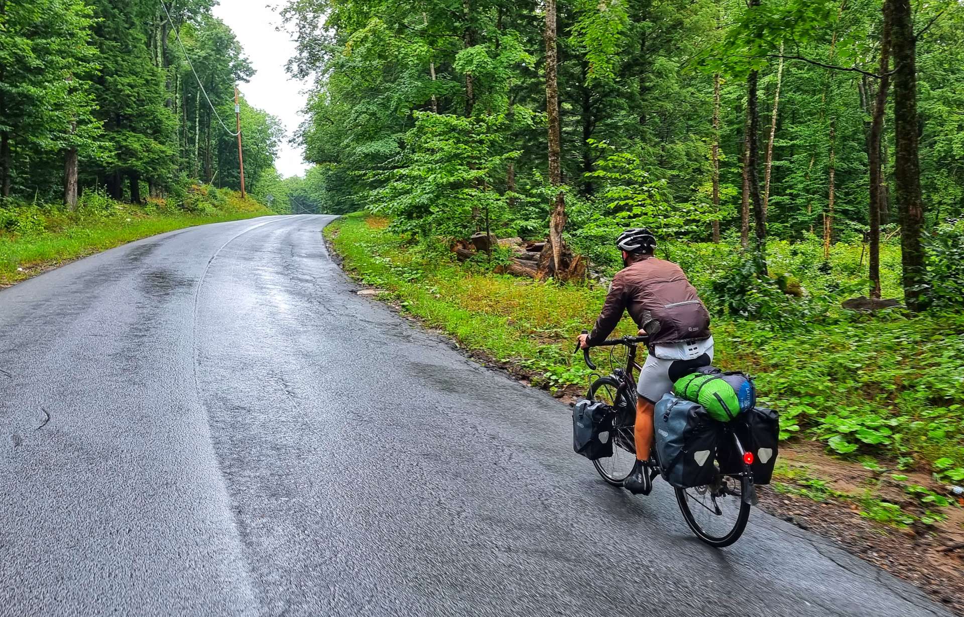 We had a tailwind along this stretch of road as we bounced along the ridge, so although there was heavy rain ahead, it was being blown away from us. We had a fun descent into North Hudson