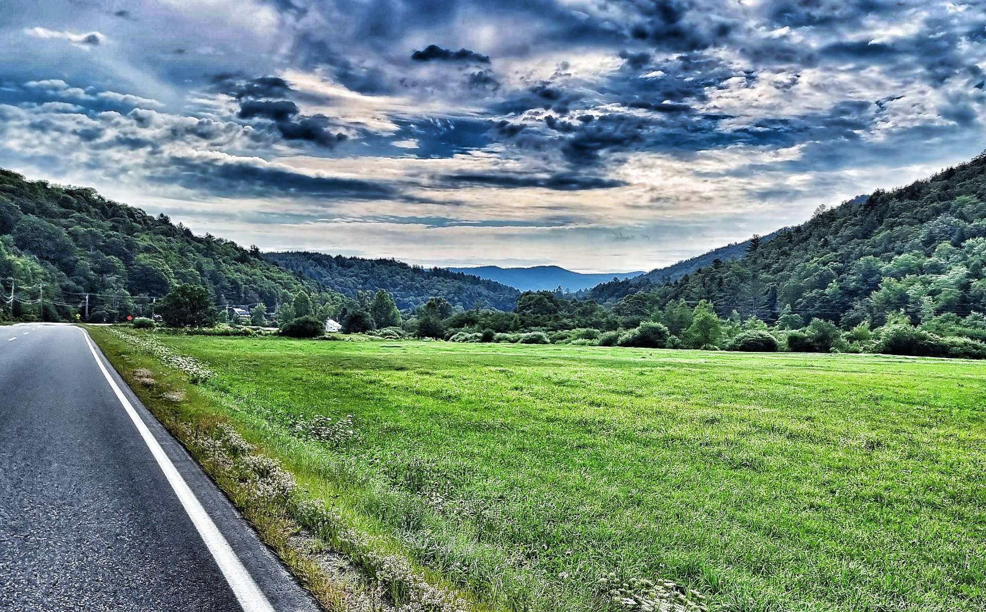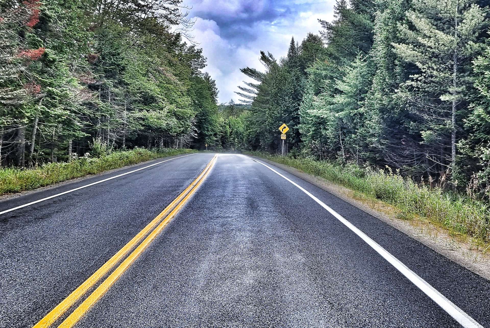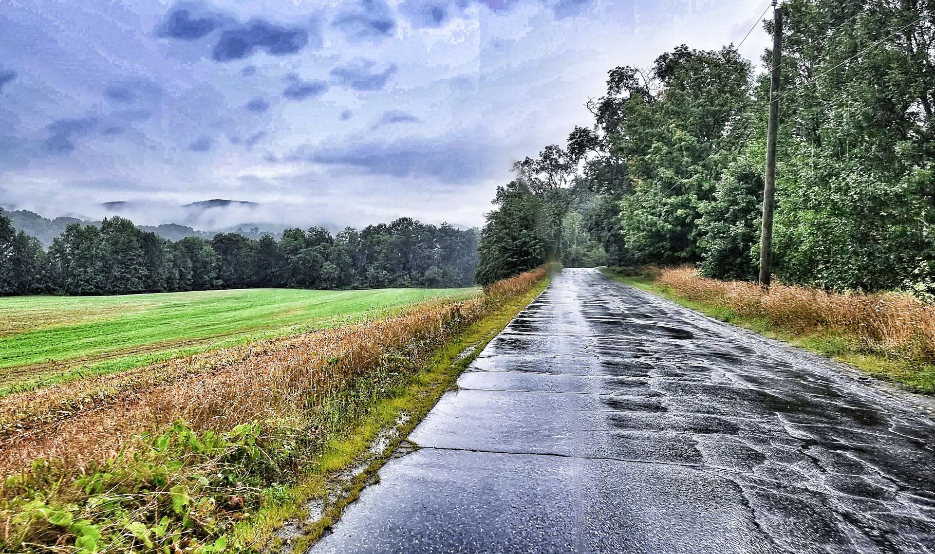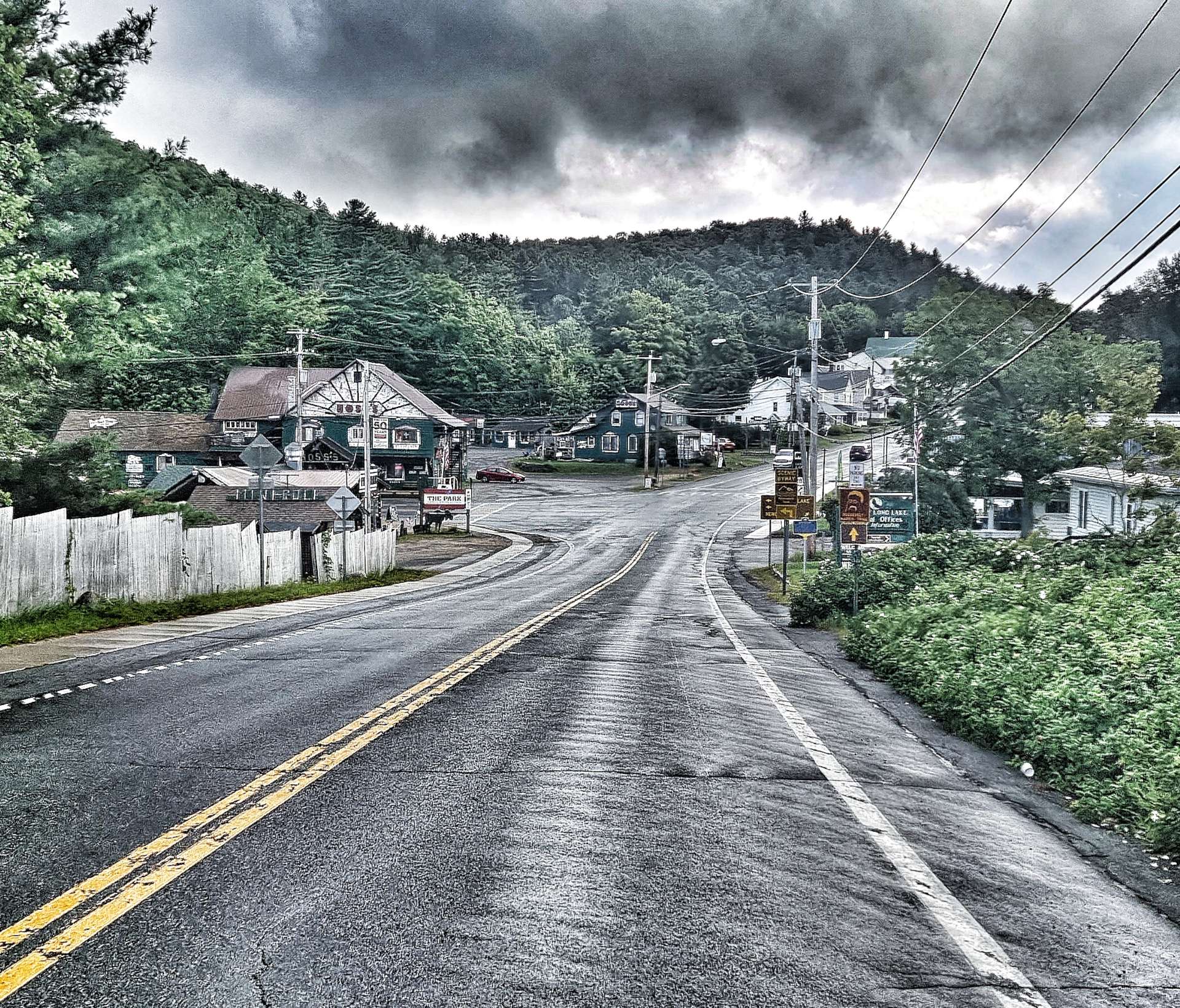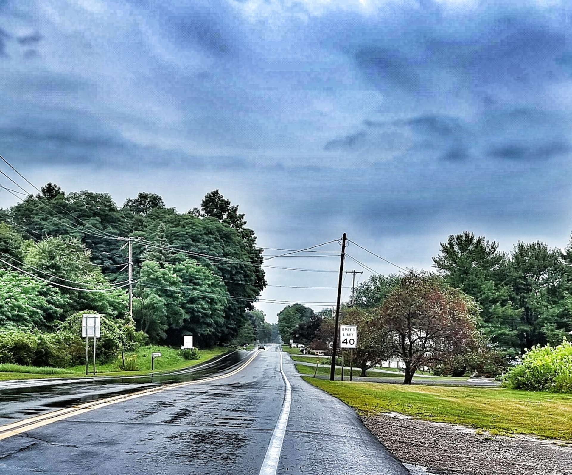 We had a tailwind along this stretch of road as we bounced along the ridge, so although there was heavy rain ahead, it was being blown away from us. We had a fun descent into North Hudson