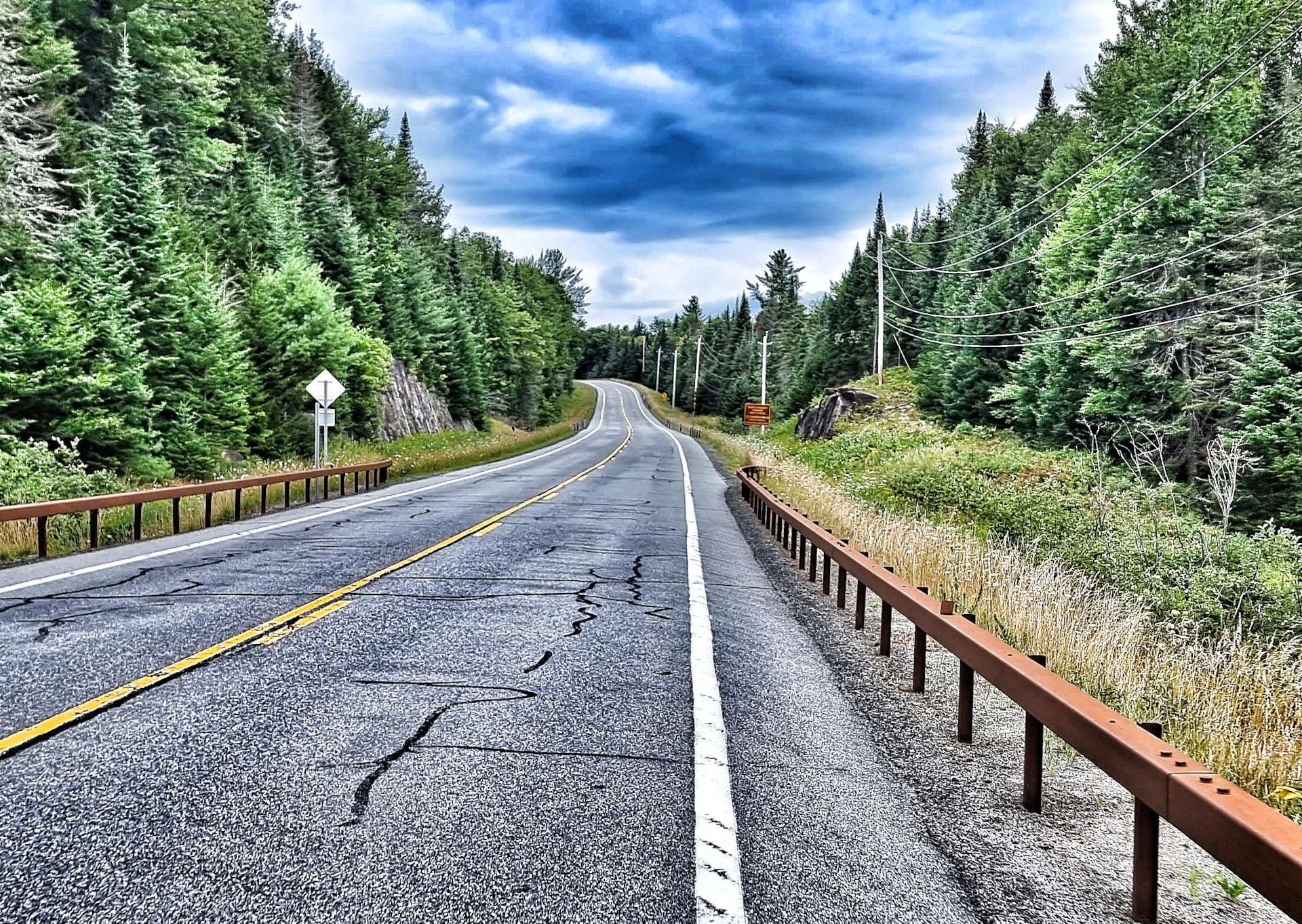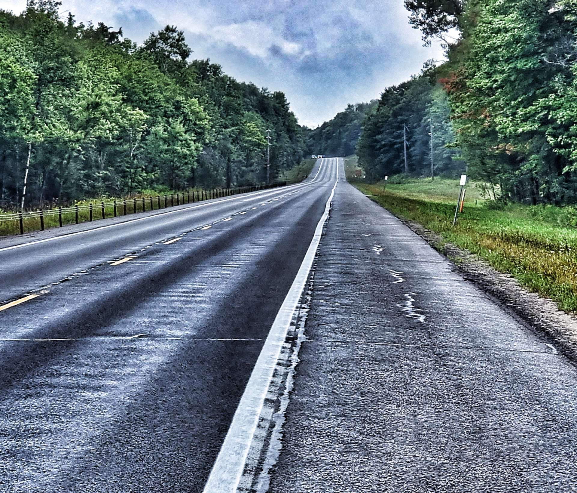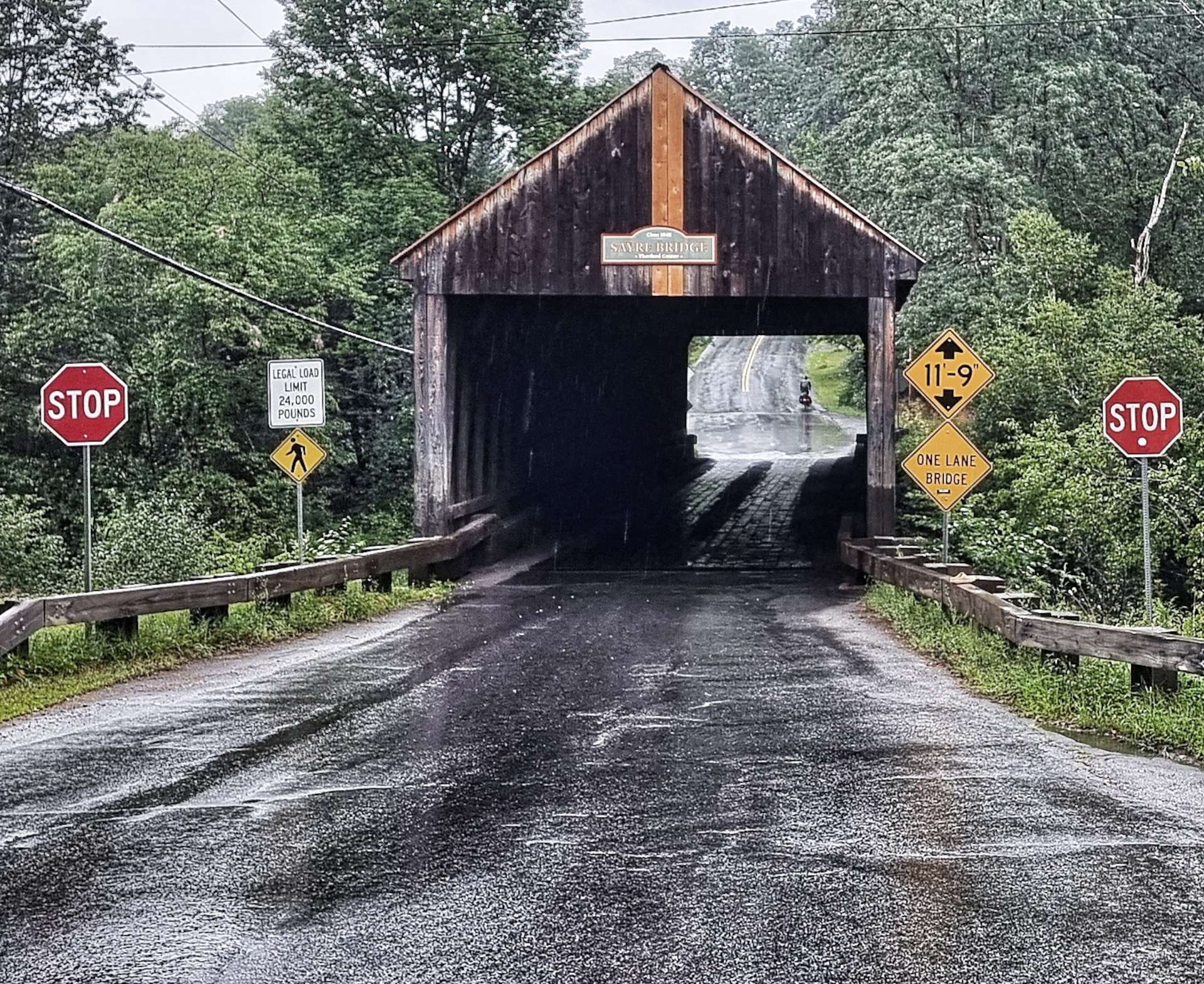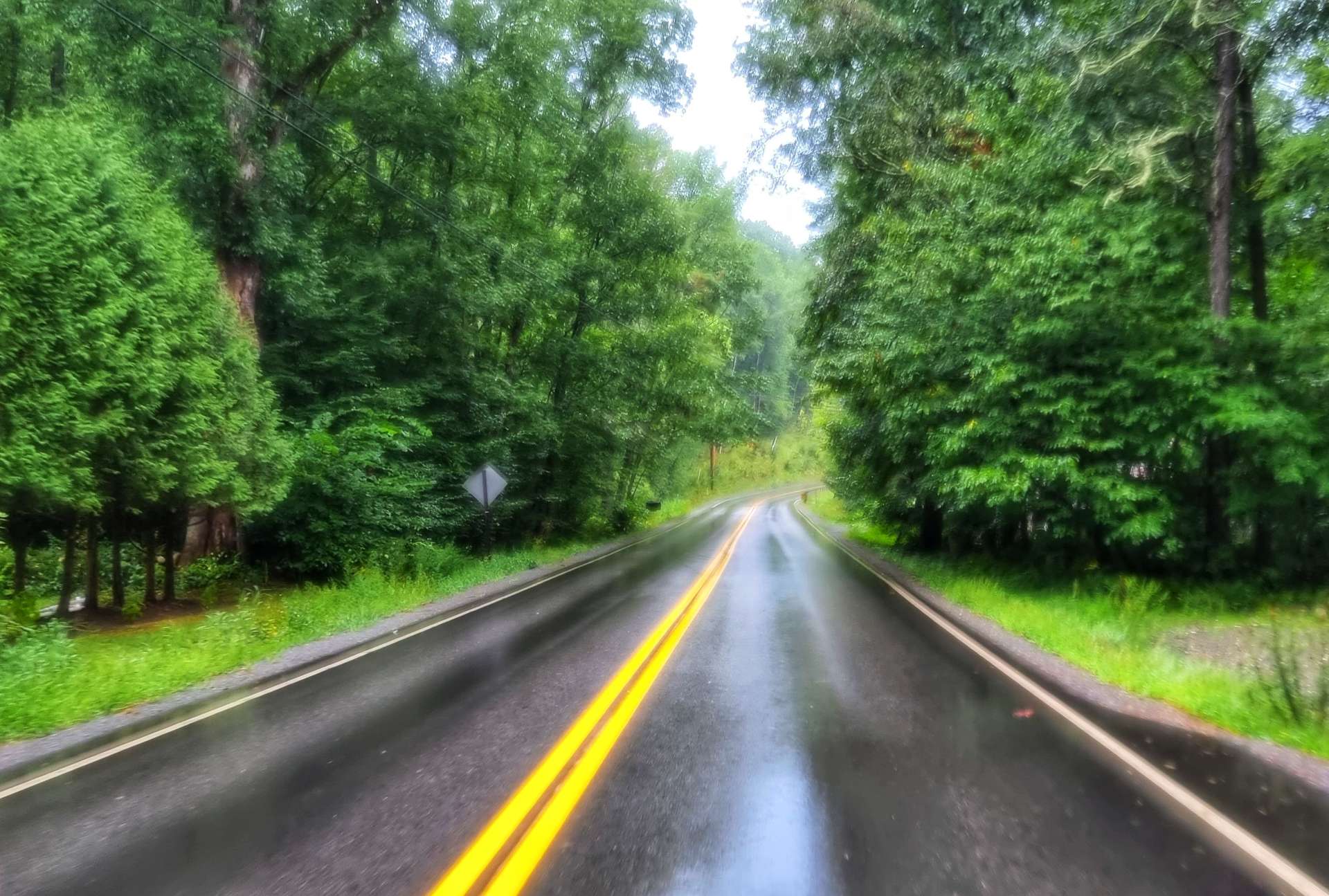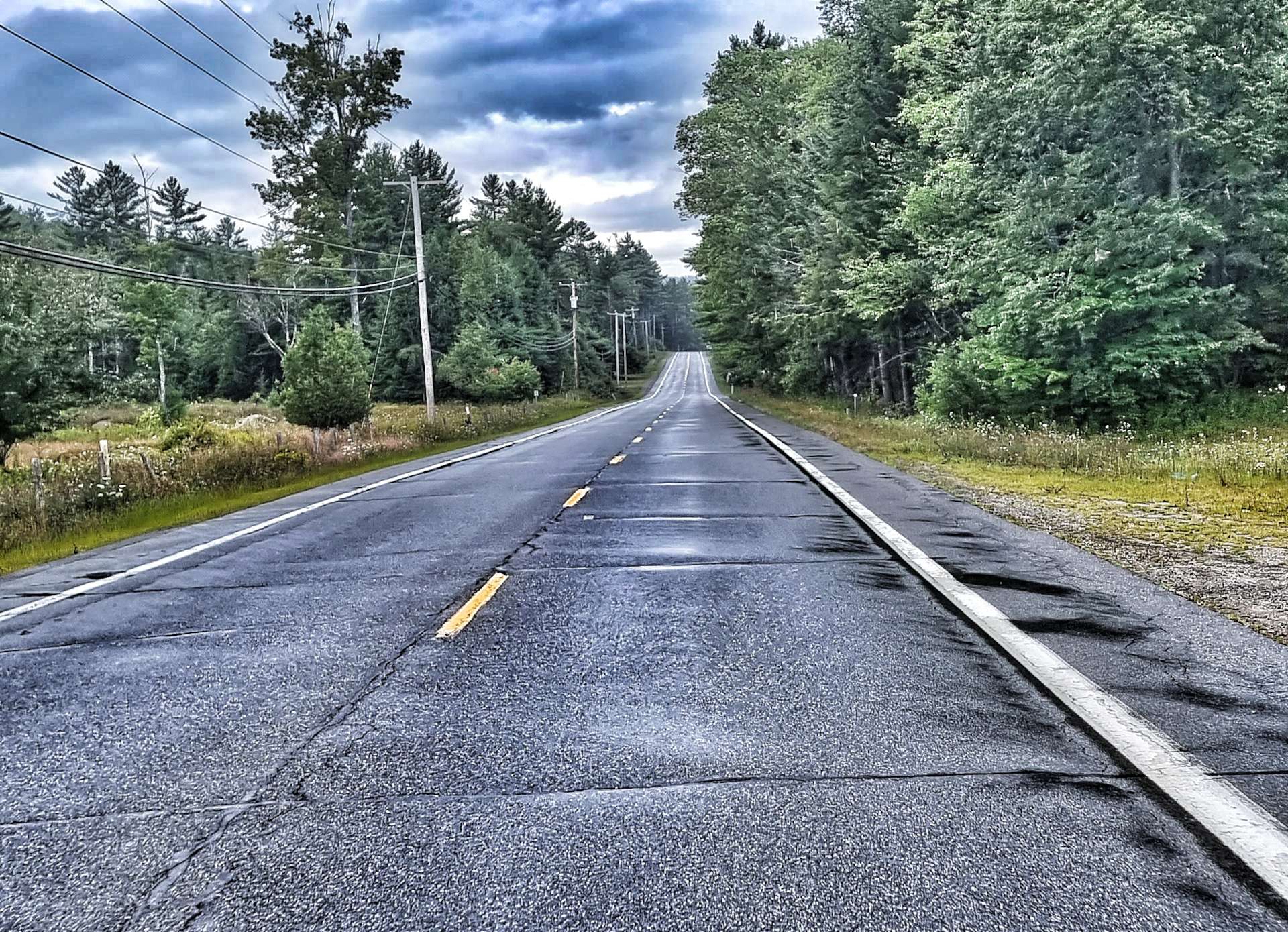 We had a tailwind along this stretch of road as we bounced along the ridge, so although there was heavy rain ahead, it was being blown away from us. We had a fun descent into North Hudson