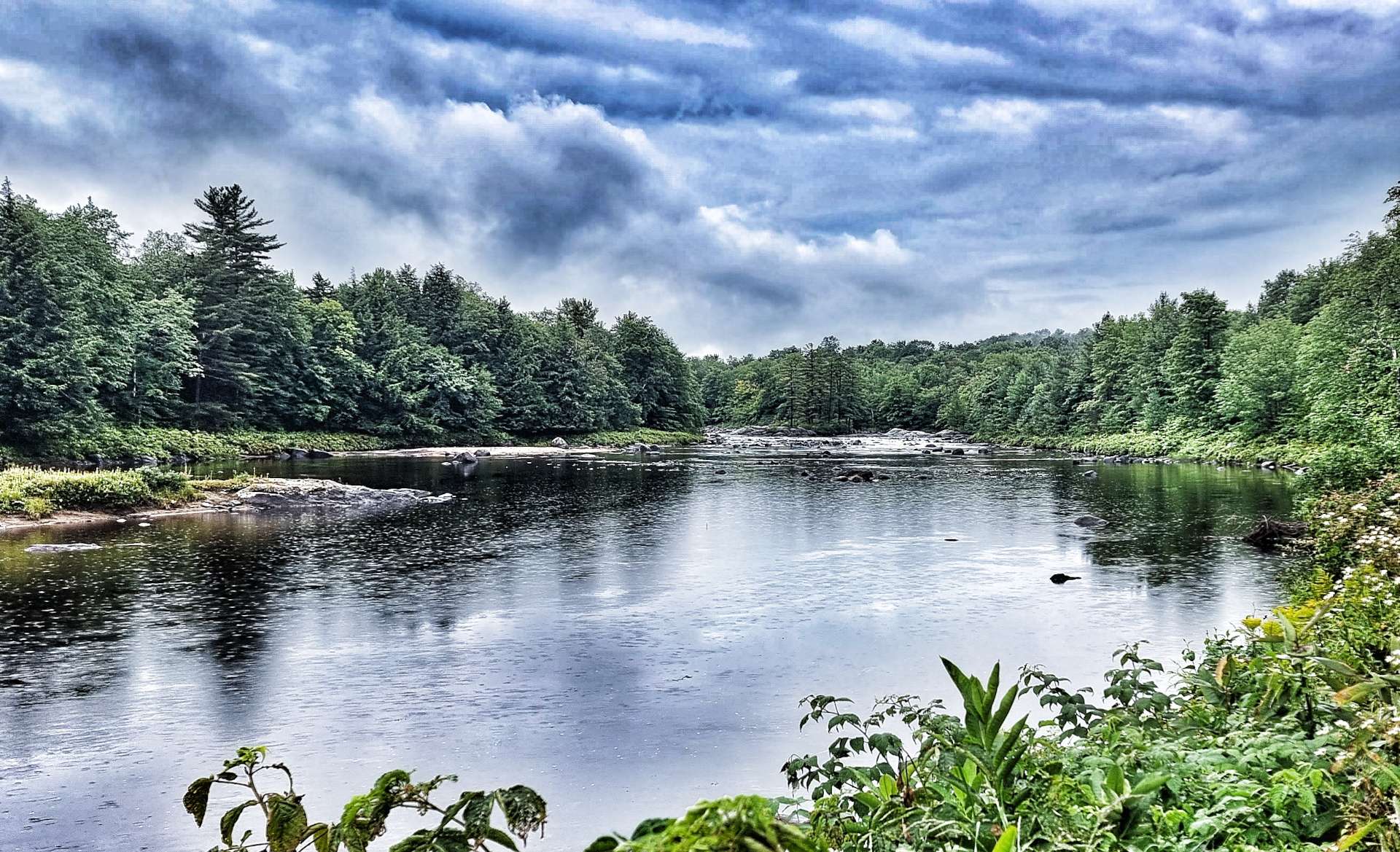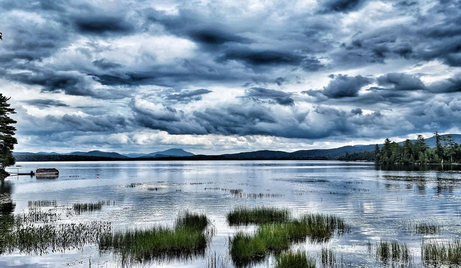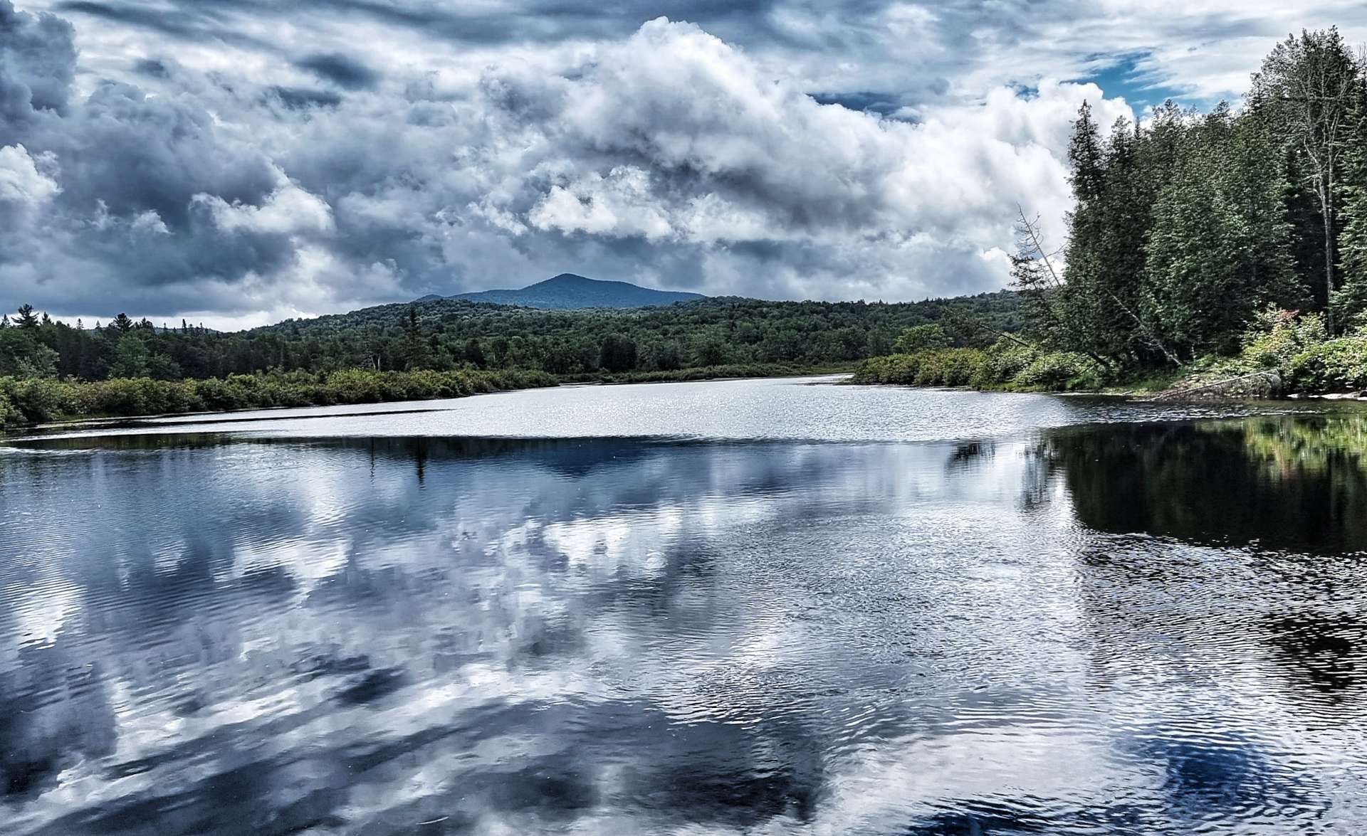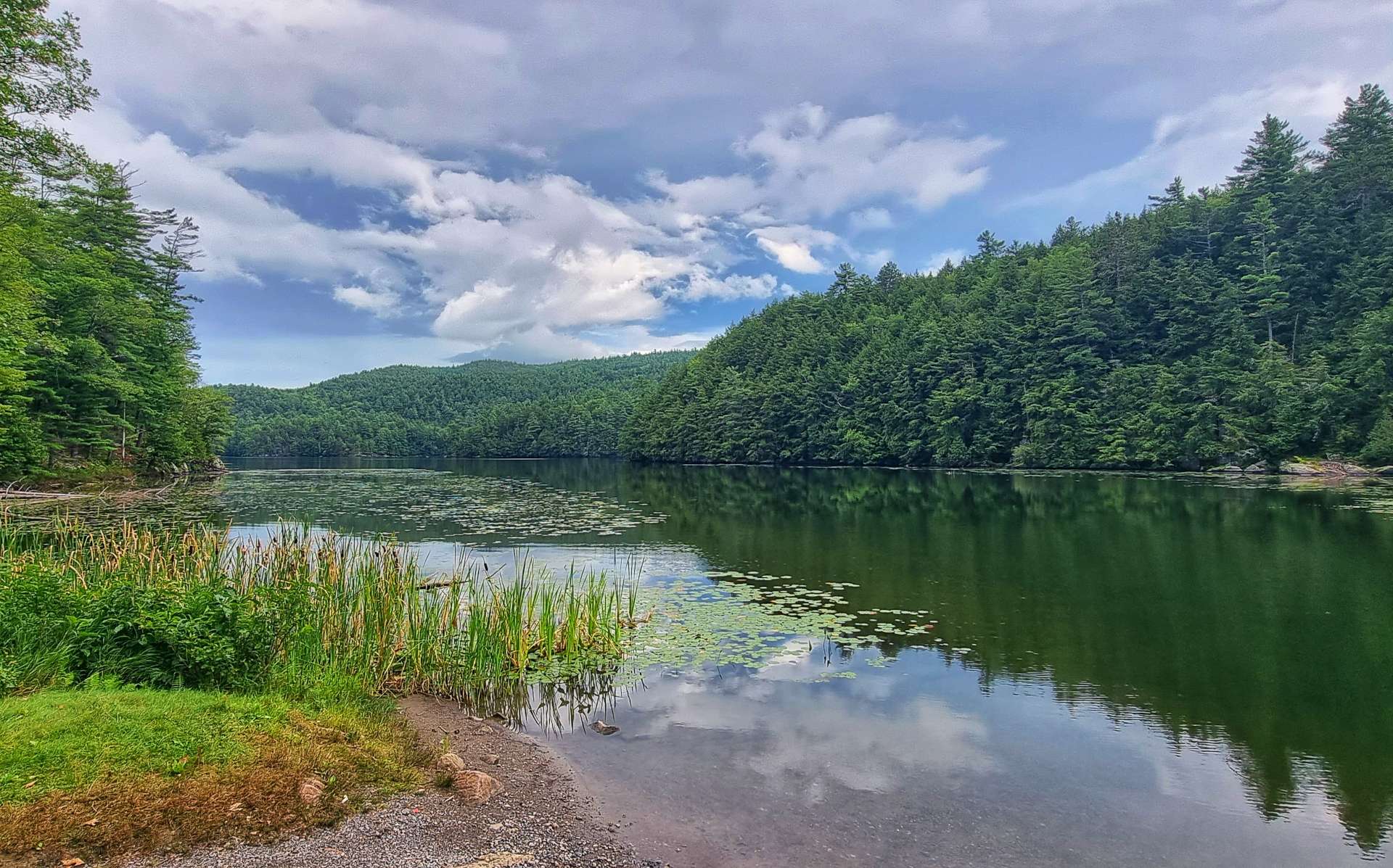 We left Long Lake under brooding, grey skies & a gap in the early morning rain. However, within 10 minutes the skies had opened again, just as we summitted a small climb with a view over Shaw Pond. A lone heron was fishing for its breakfast, but it looked a very sorry figure with the rain falling like stair-rods.