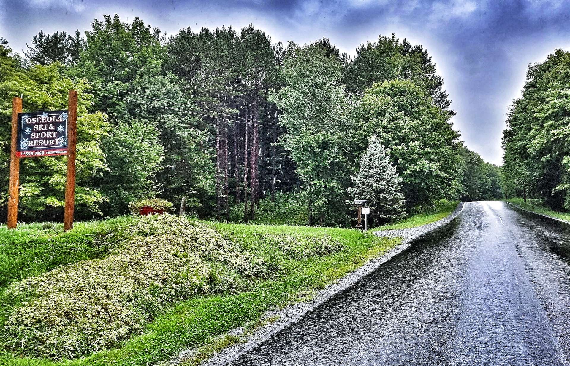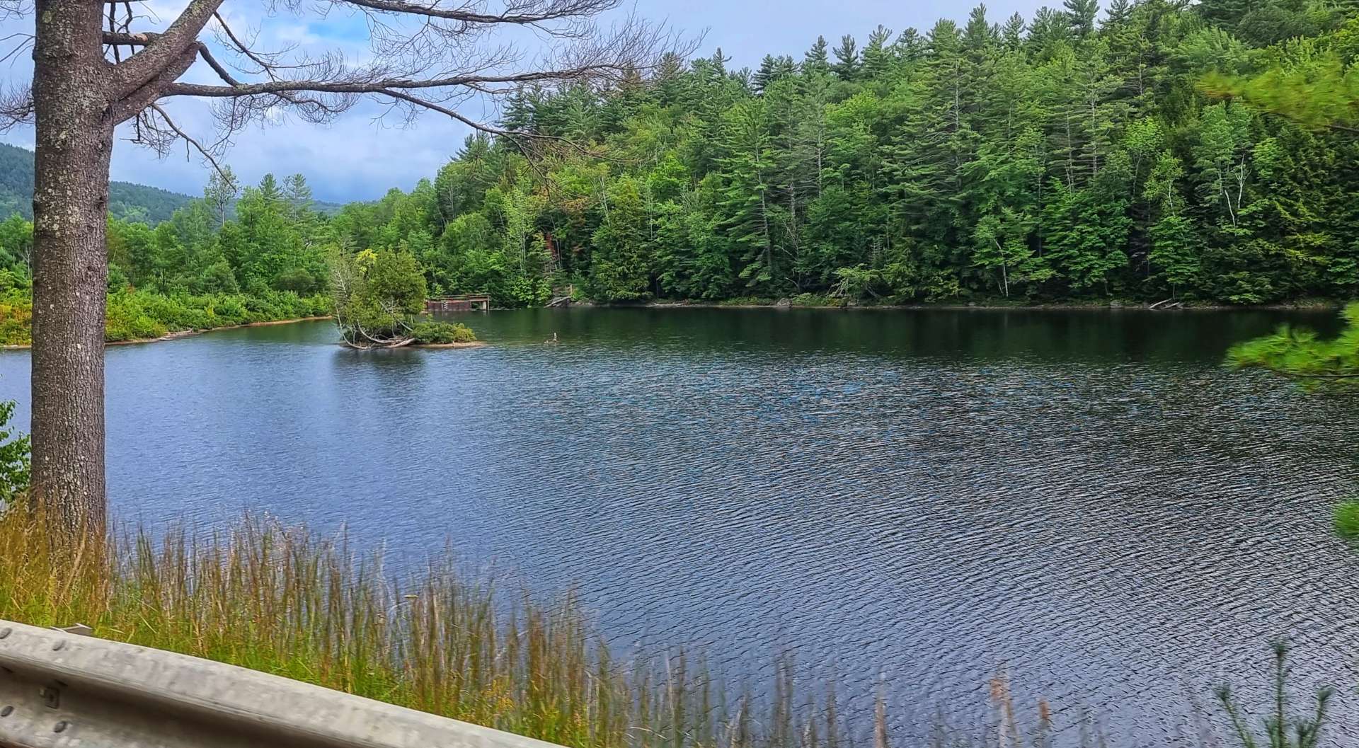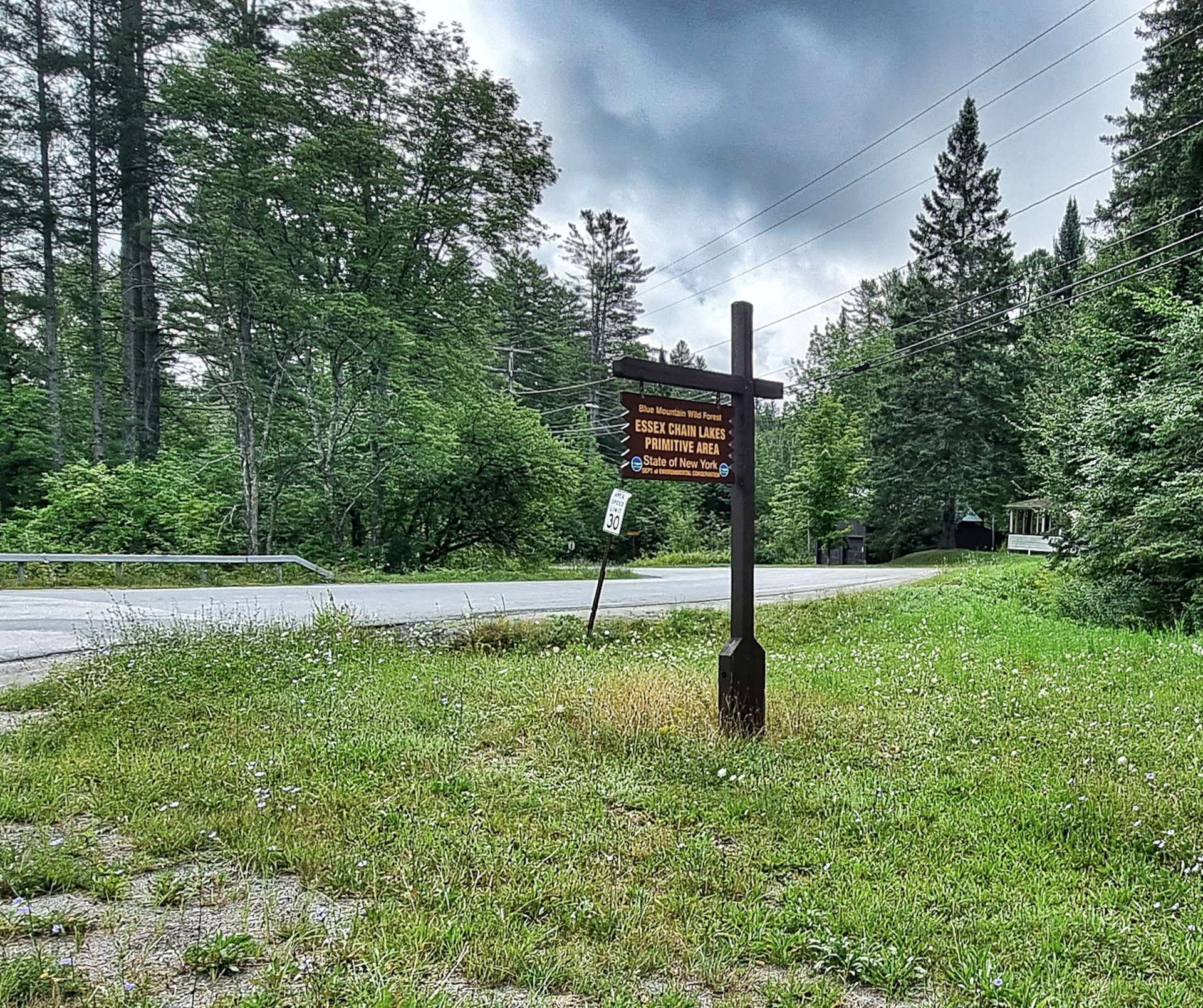 We continued on drying roads that rolled up & down between small ponds & rivers. All seemed to be going swimmingly as we passed a sign that identified the primitive area of Essex Chain Lakes.