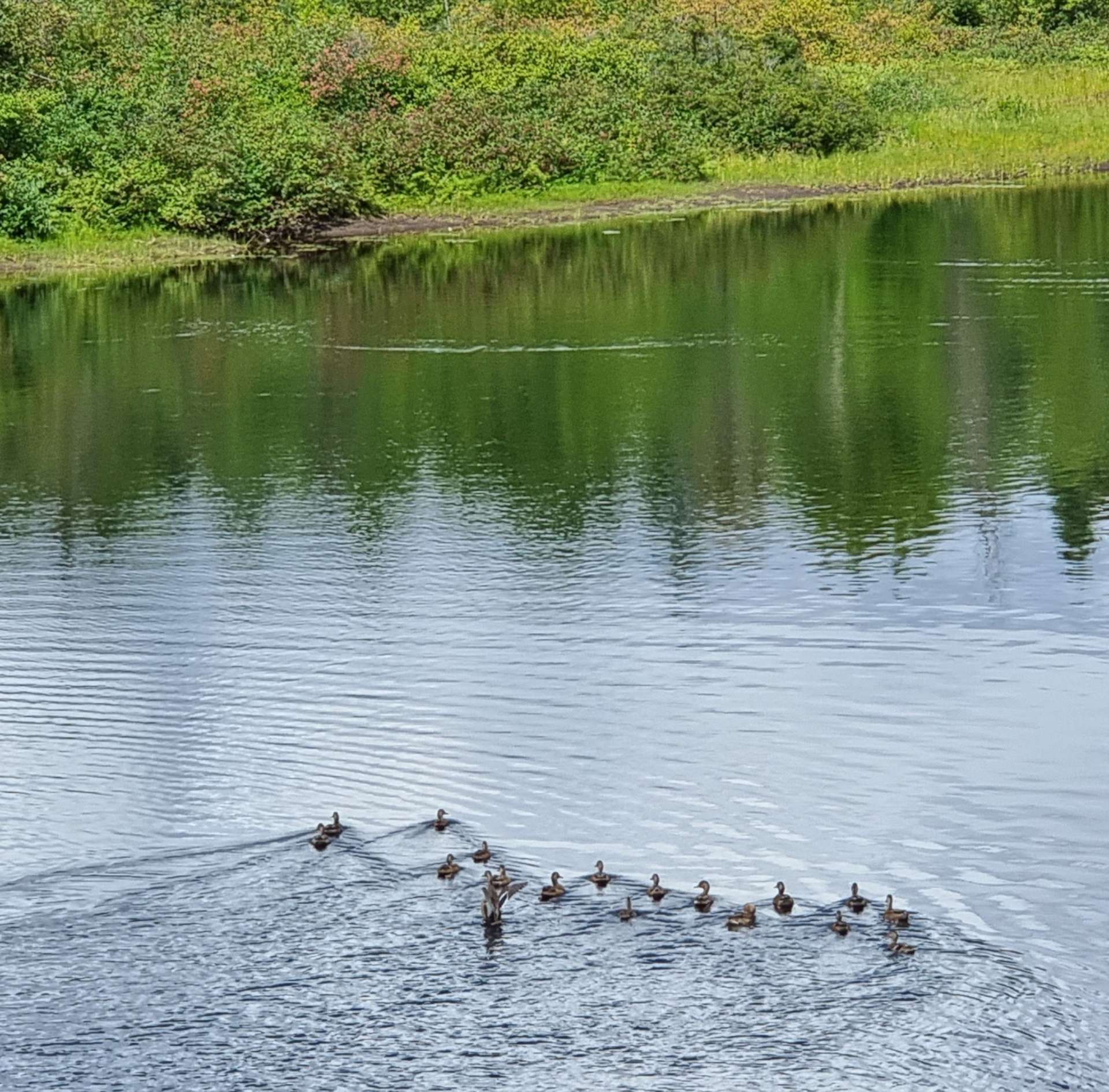 We saw a couple of boats out this morning & the geese were again perfecting their synchronised swimming – they left their offspring in the shallows while the adults were on manoeuvres!