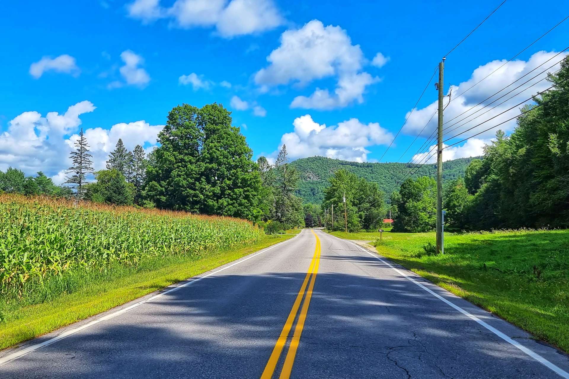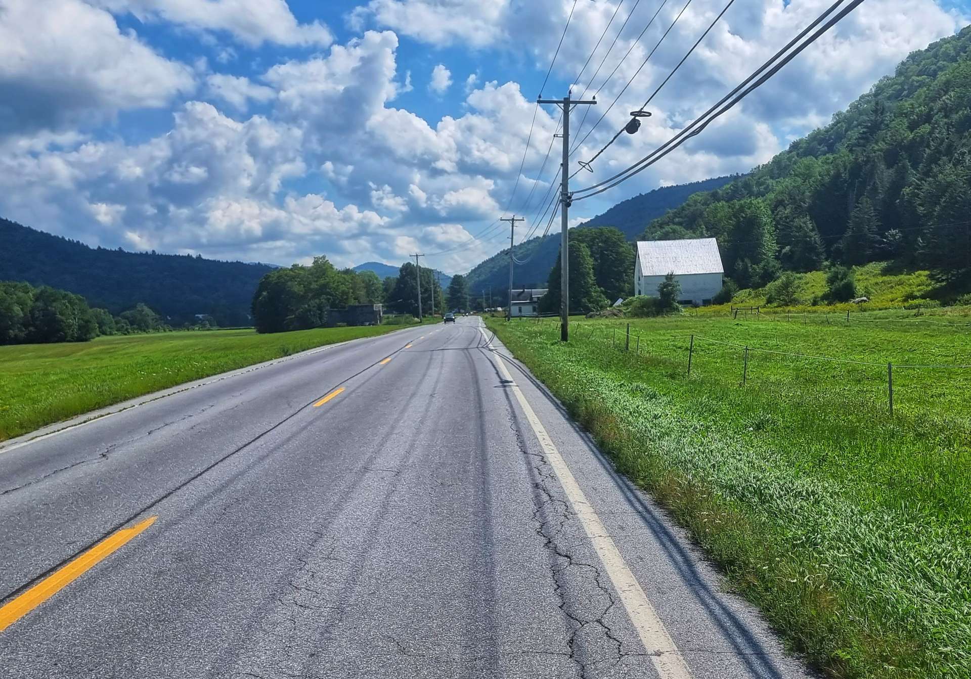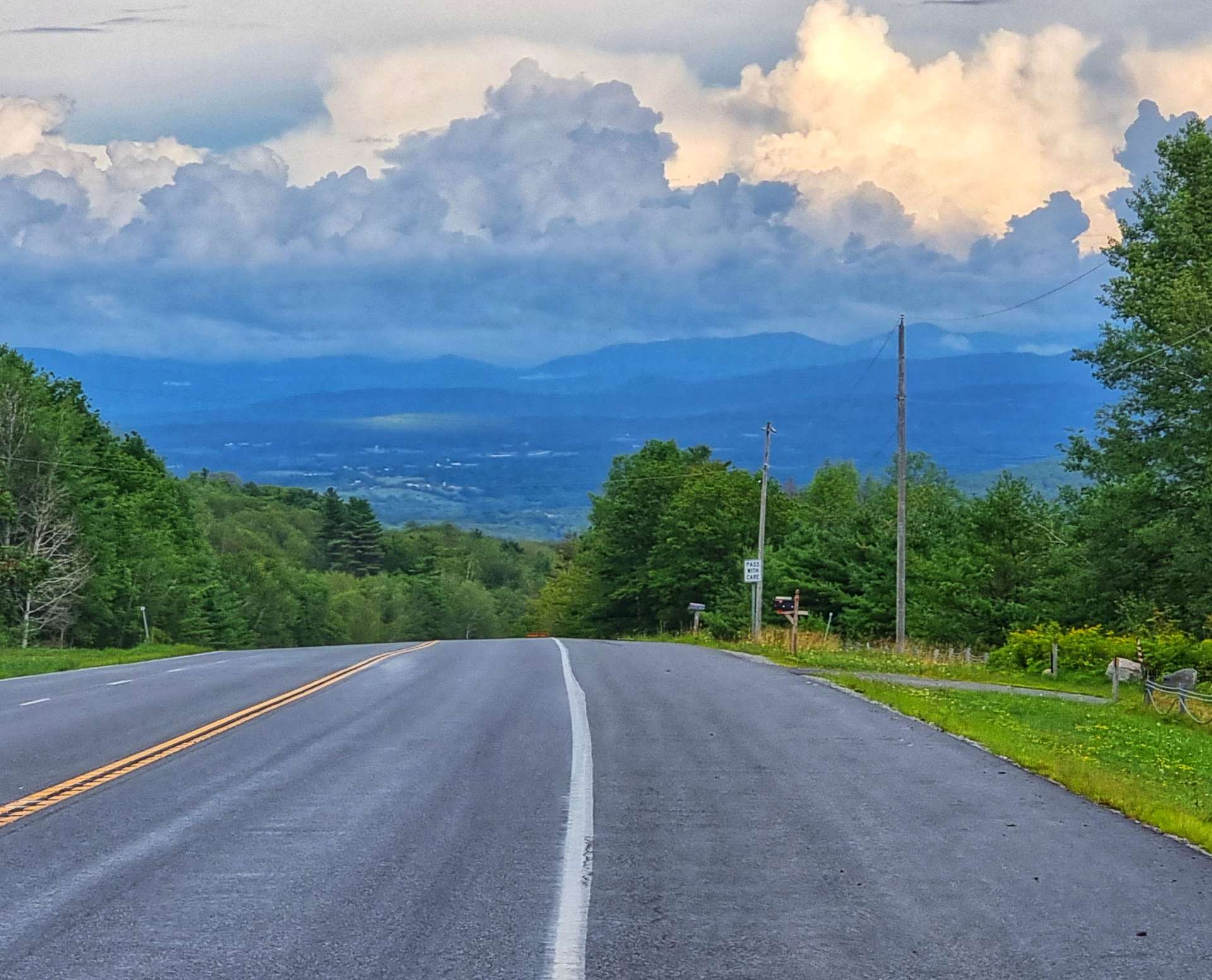We had a 3 mile descent into Ticonderoga, where we’re staying for the next couple of nights! There were huge views all the way across to Lake Champlain in the distance.