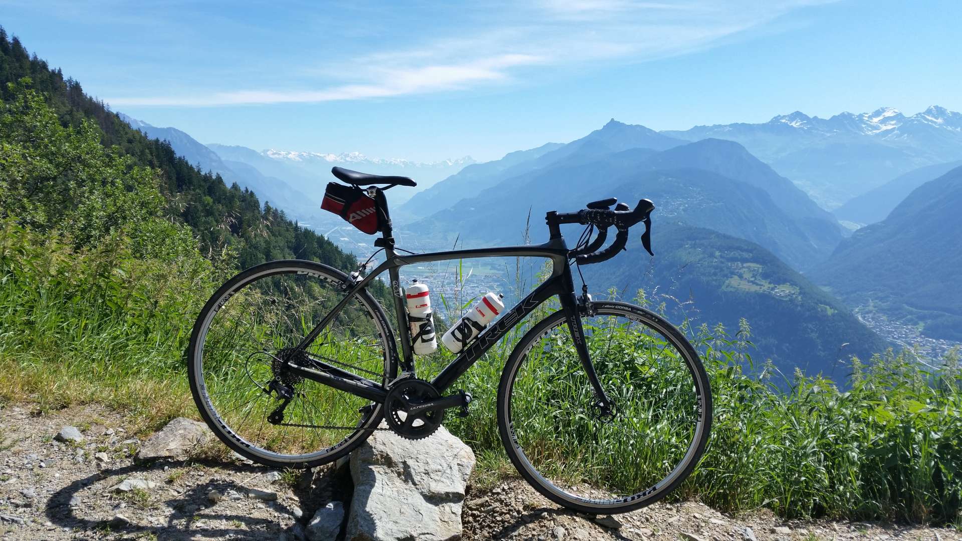 The final climb of the day was the reverse side of the Col de la Forclaz, a tiddler at 4.5 miles that was by far the kindest climb of the day. After a quick espresso to sharpen the senses, it was time to descend the new tarmac back to Martigny – this felt like a fast road on the way up (very few bends & huge views down the mountain) & so it proved to be. I was so busy concentrating that I didn’t check my speeds until I uploaded the ride this evening – I hit a top speed of 48.6mph, but it never felt like I was travelling that quickly.