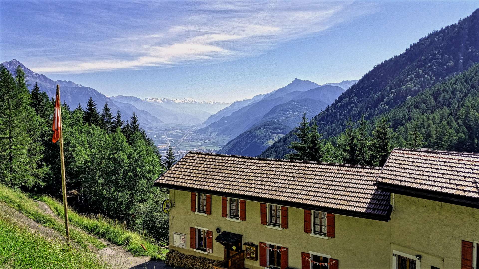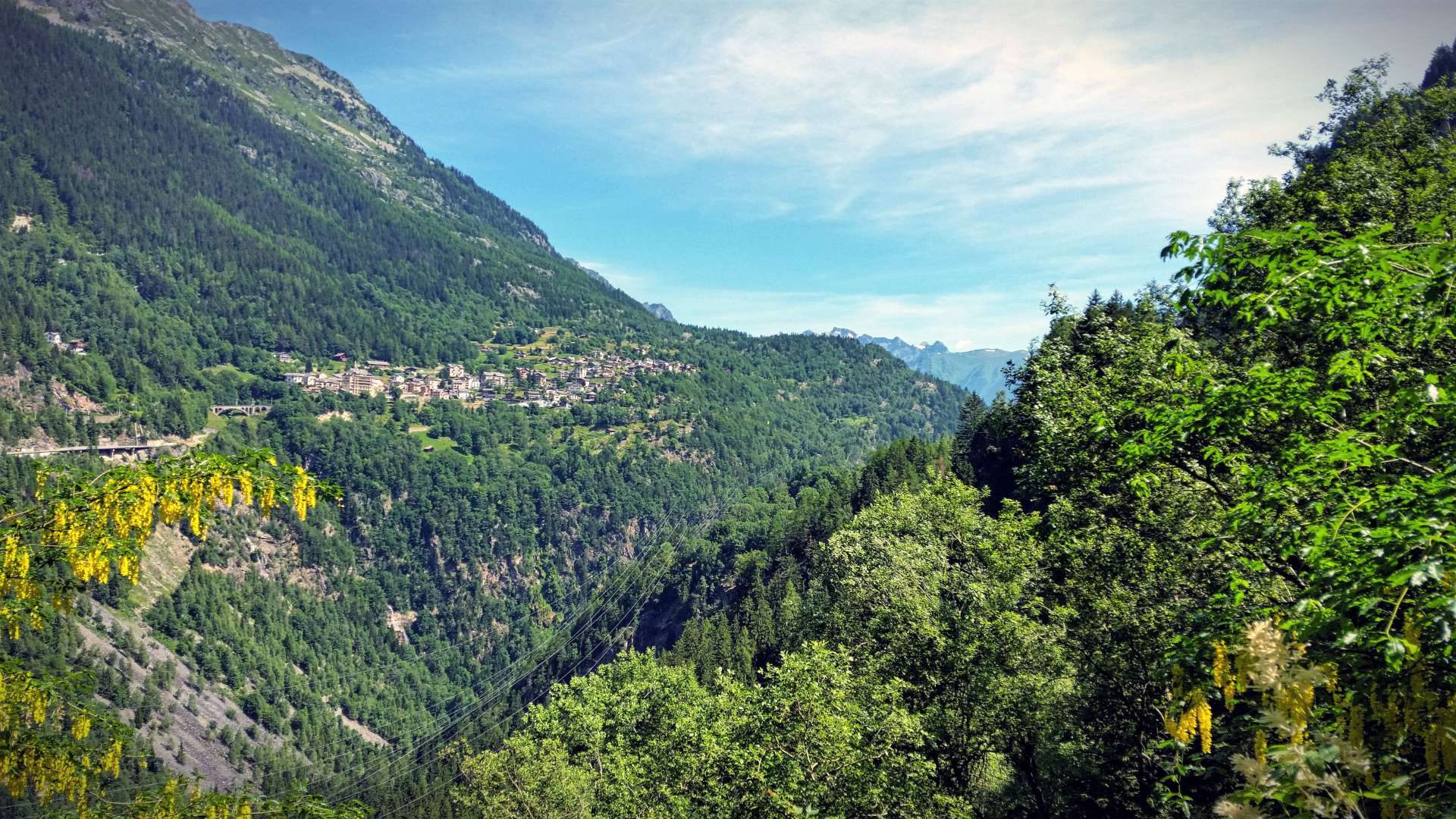 Le Tour will be heading up the St Bernard Pass for about a mile, before taking a right turn up the old road to Col de la Forclaz. We followed this route too & the early slopes took us past vineyards & through small villages – the first surprise was that the gradient was significantly steeper than we expected, as it regularly popped over 12%. The views over Martigny & the Rhone valley below became more spectacular & by the time we joined the new road we’d climbed over 1,000 feet in just under 25 minutes.
