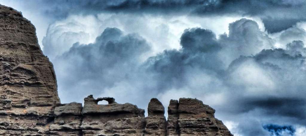 We crossed the Powder River almost as soon as we re-joined I-90. The only potential cloud on the horizon was the real cloud on the horizon – rain looked imminent! We chose to ignore it & enjoy the downhill parts of the ride instead.