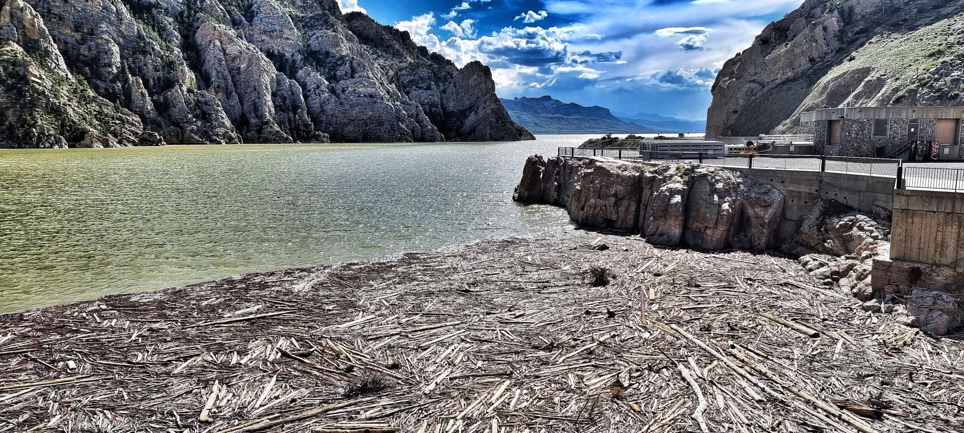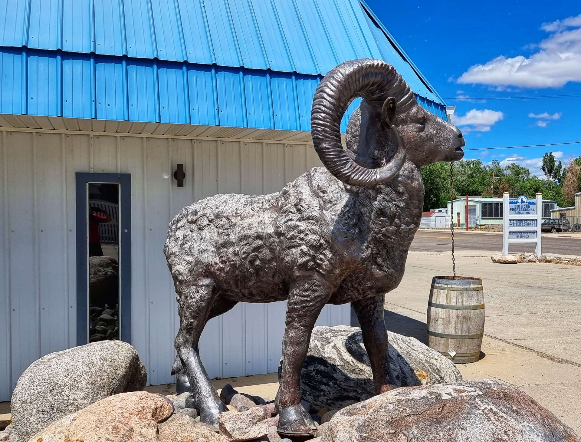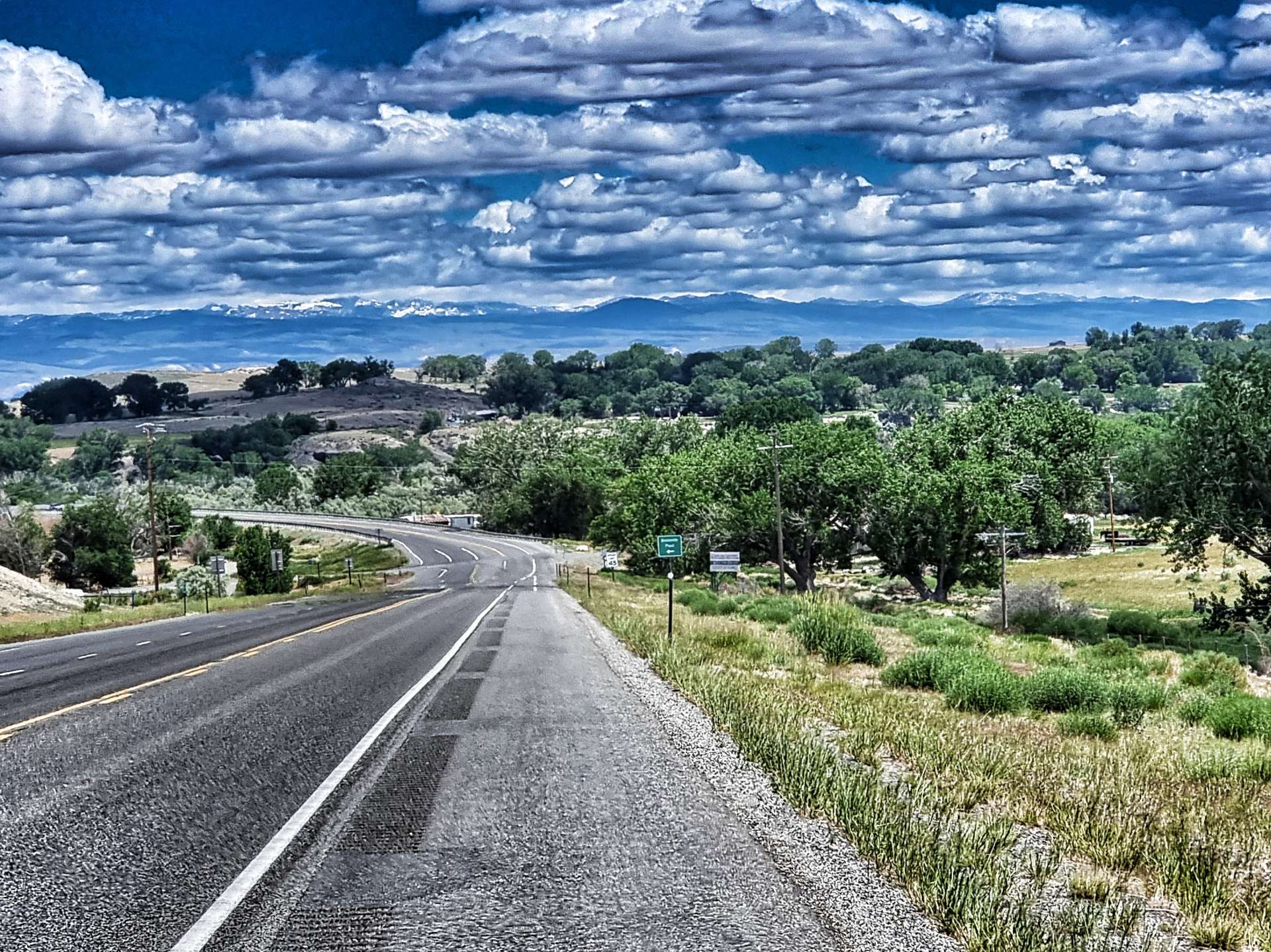 After a continental style breakfast at the motel, we were on the road by just after 9.30 – this was the first morning it felt hot from the moment we set off. Right outside our motel some top quality murals had been painted on the Elevator Buildings. Leaving town on Highway 20, we crossed the Greybull river before heading in the direction of Basin. The surrounding landscape was fairly barren, with the snowy peaks of the high mountains just visible in the far distance.